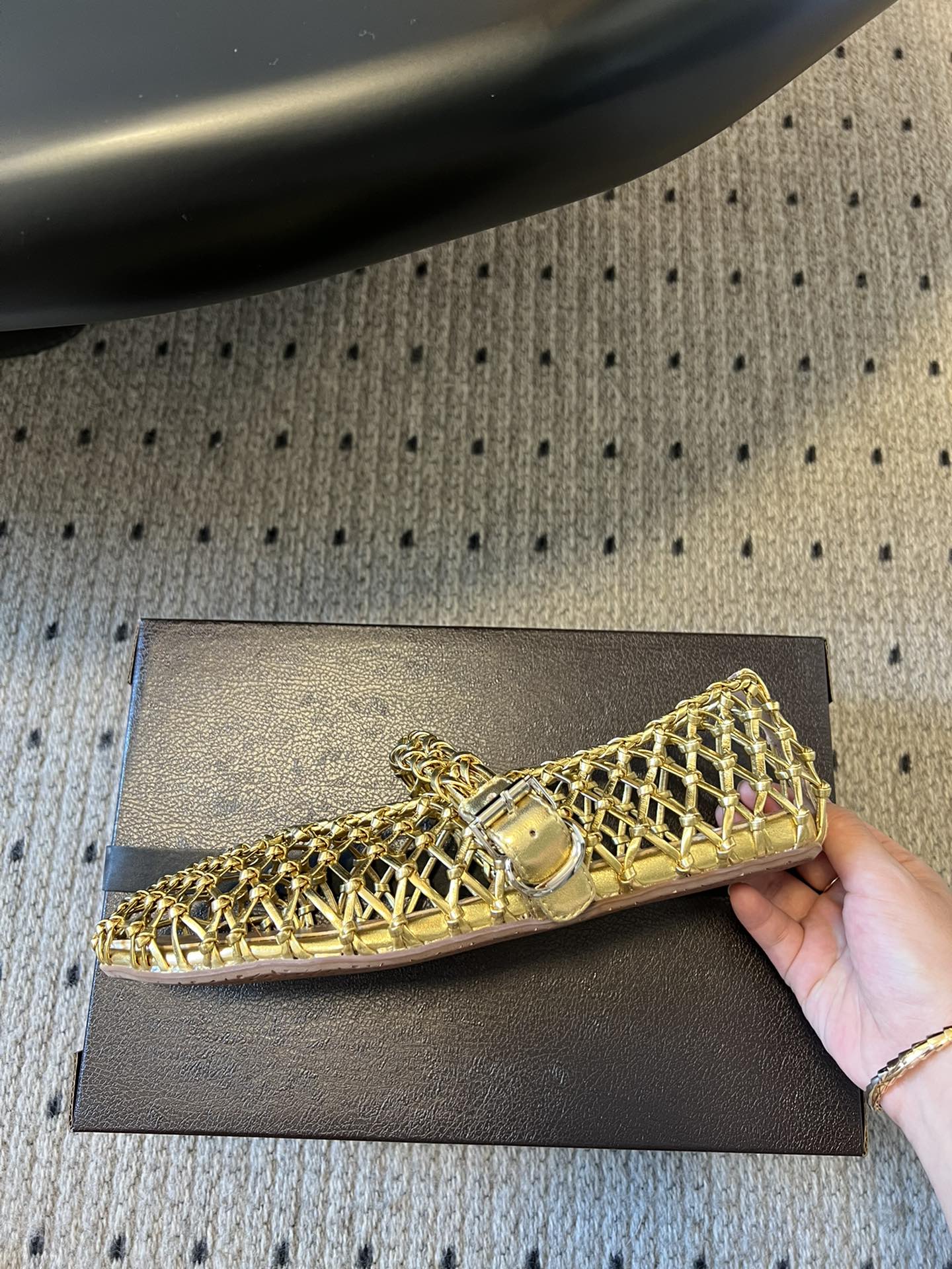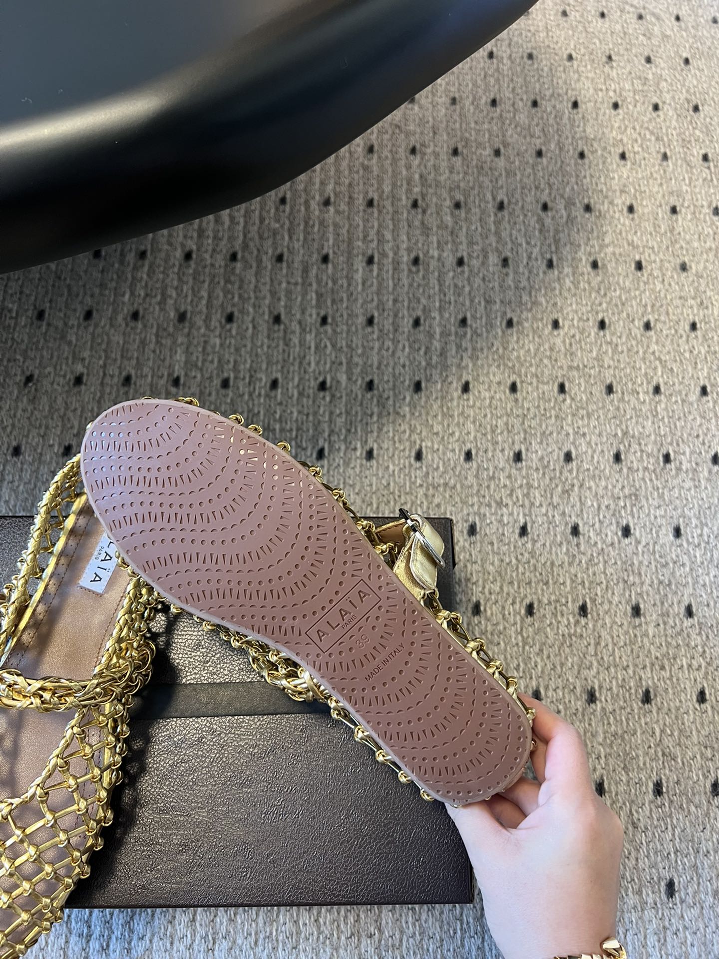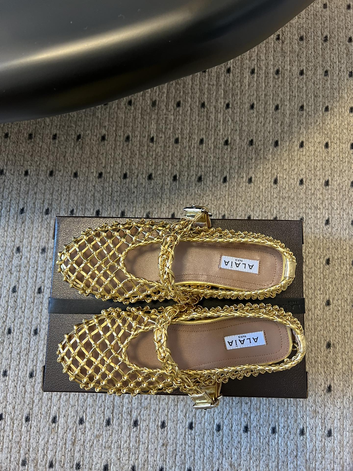 Alaia 25 Woven Ballet Flats Gold Metallic Leather 303675