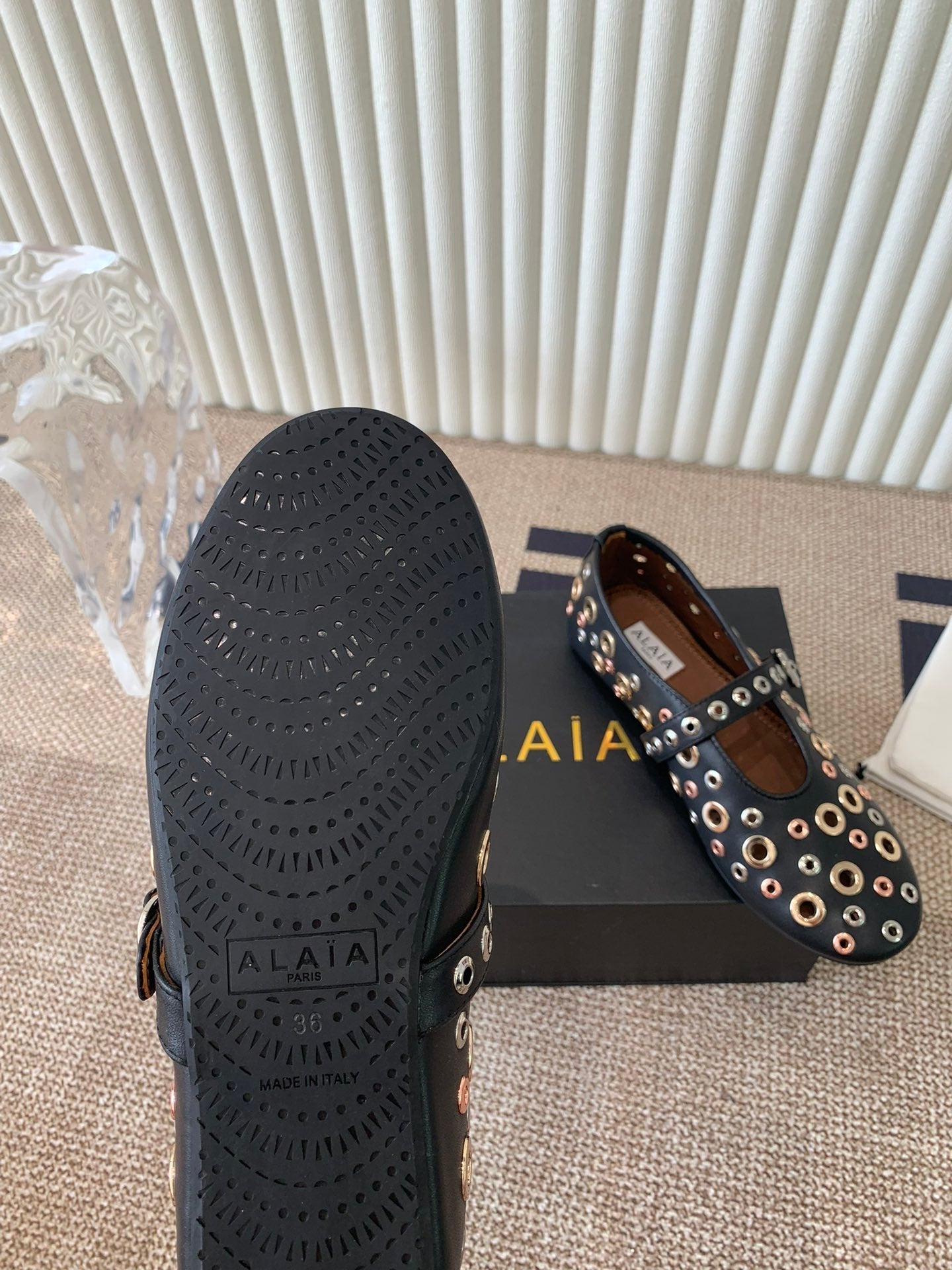 ballet flat in eyelet black lambskin