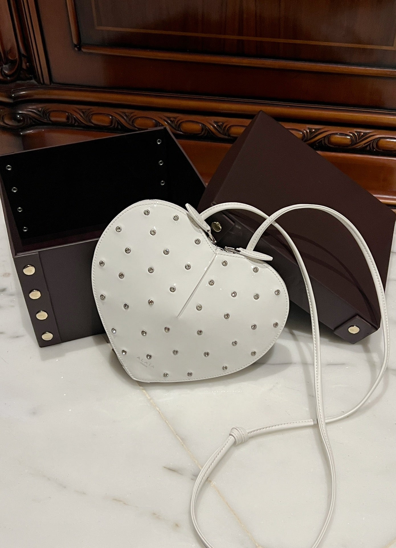 LE COEUR BAG 21 IN WHITE PATENT CALFSKIN ATTACHED STRASS