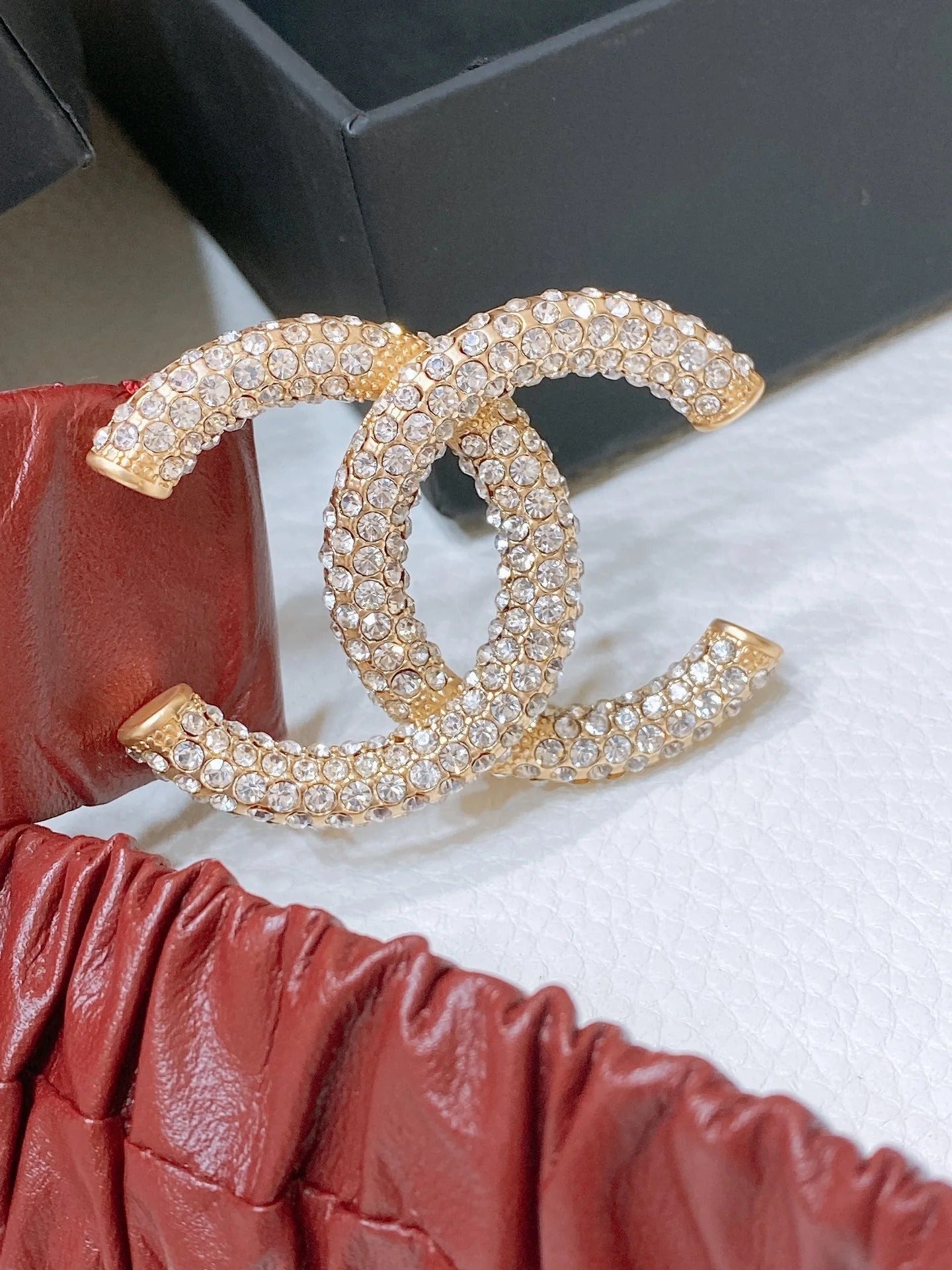 CC ELASTIC BELT 30MM IN WINE RED CALFSKIN GOLD HARDWARE WITH RHINSTONES