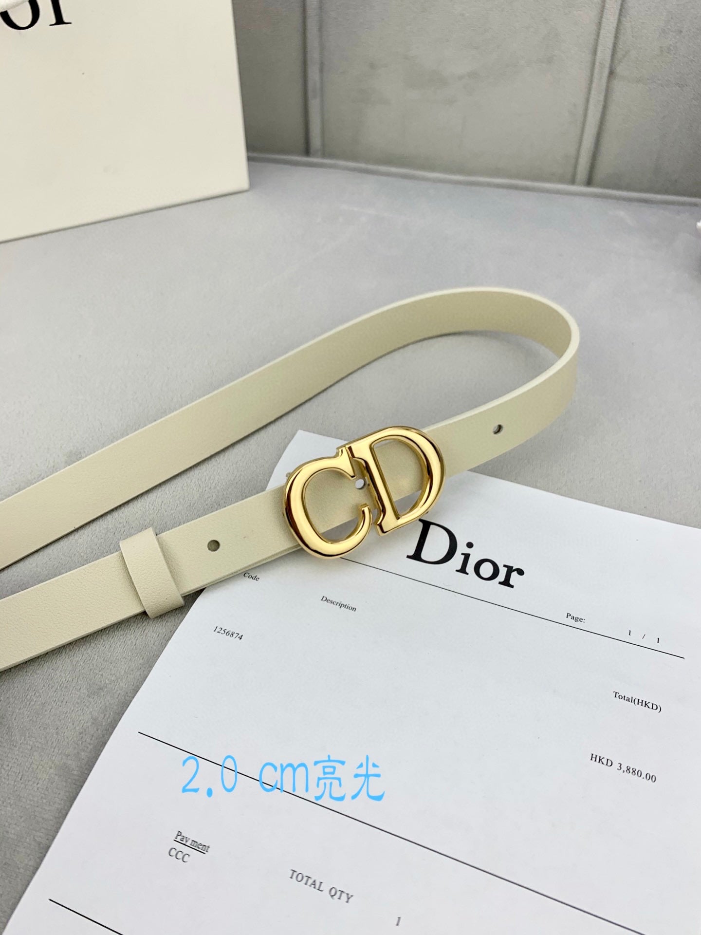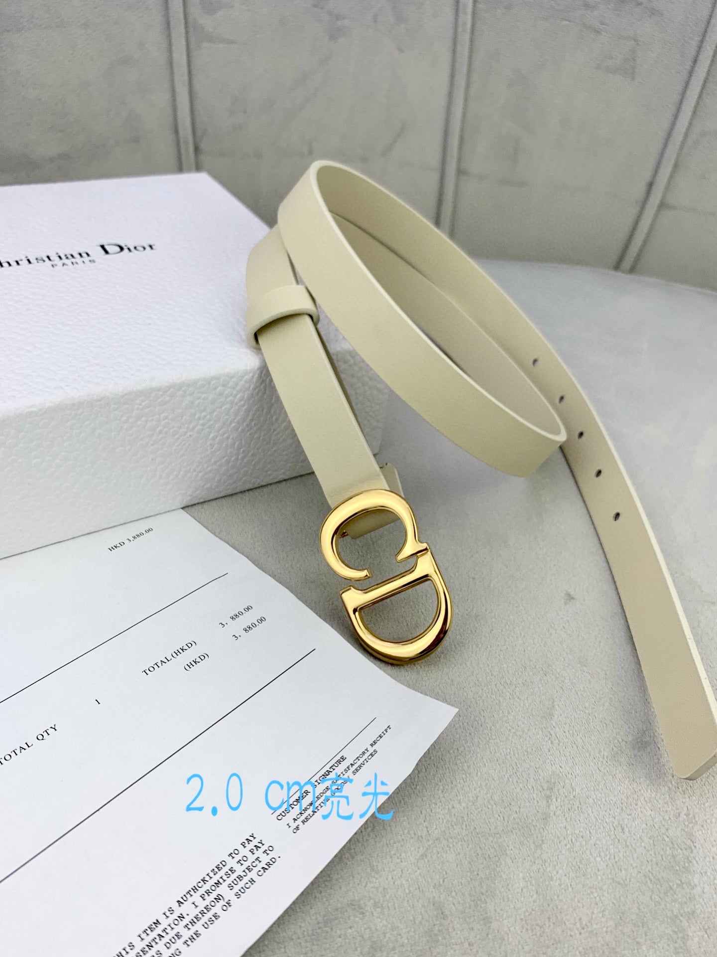 CD Saddle Belt 20mm Cream Calfskin Metal Buckle
