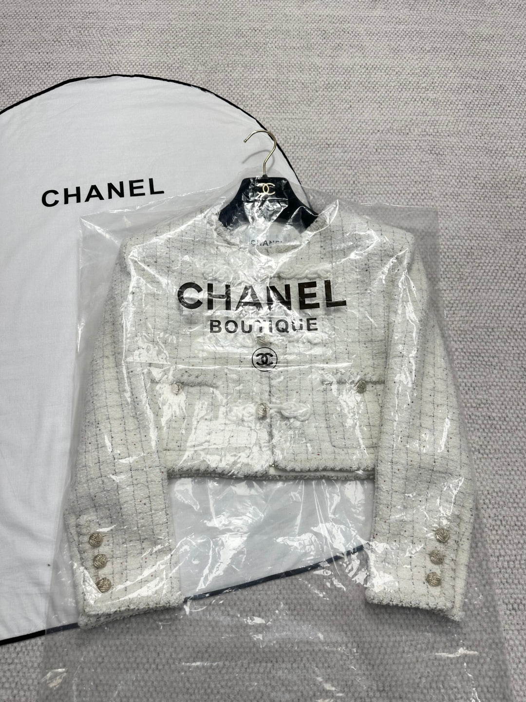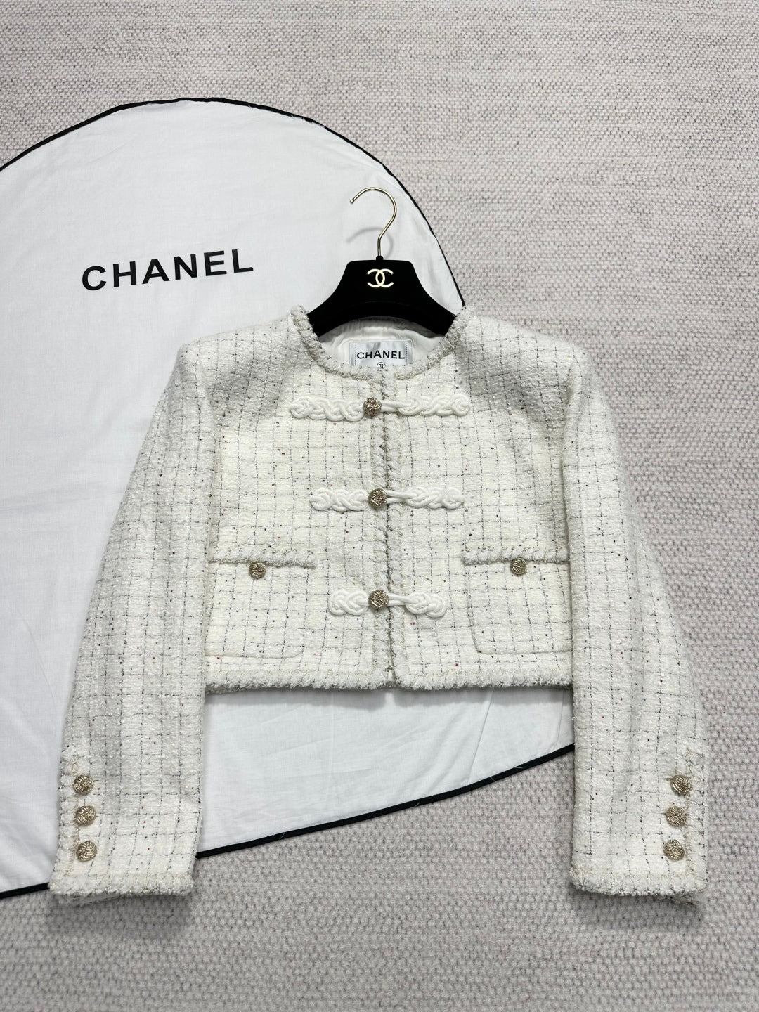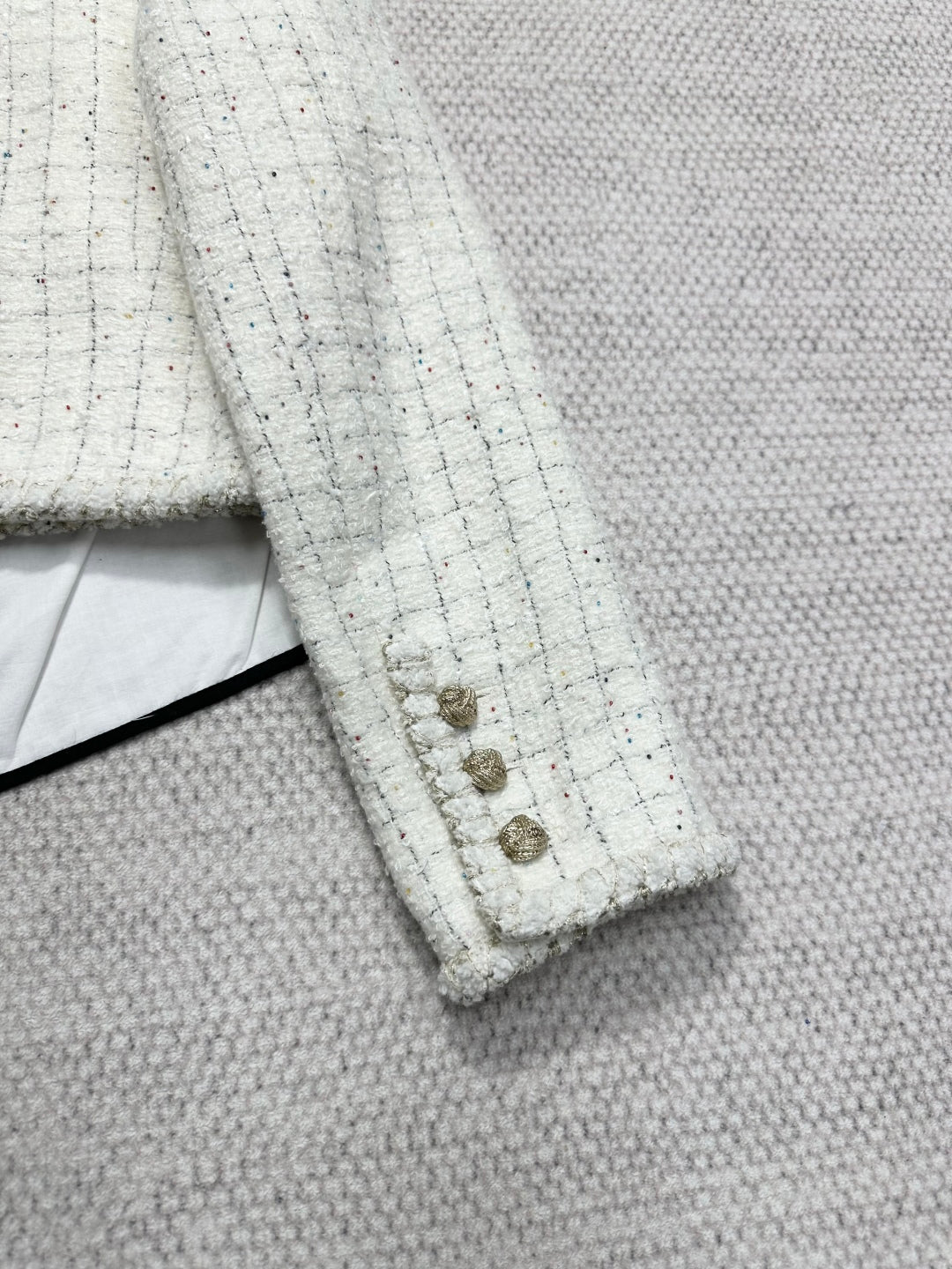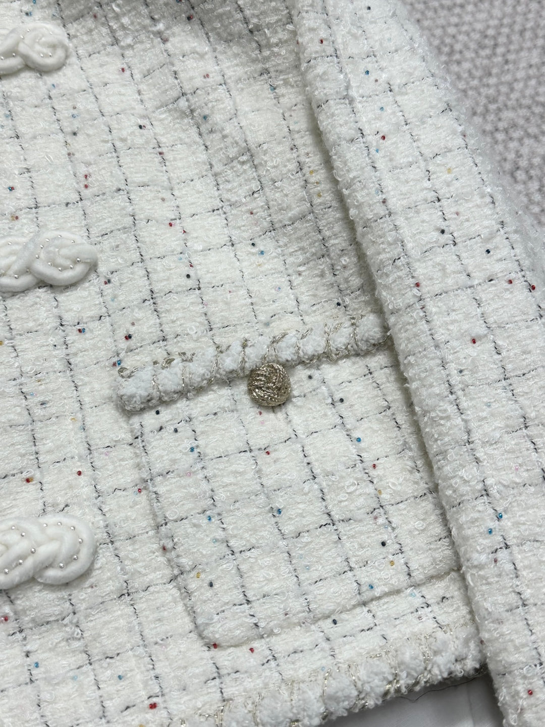 CC 25A Beaded Plaid Crop Tweed Jacket