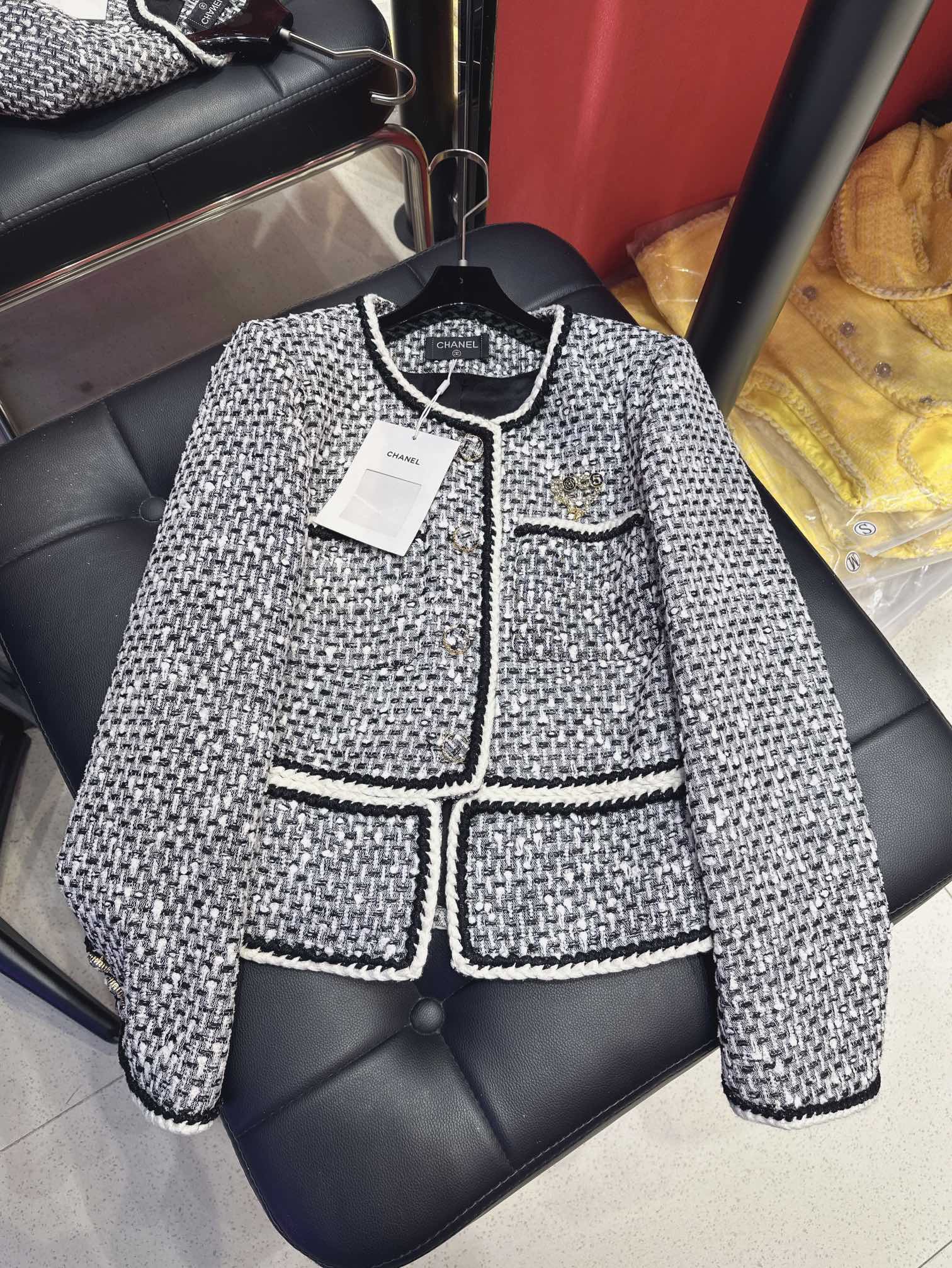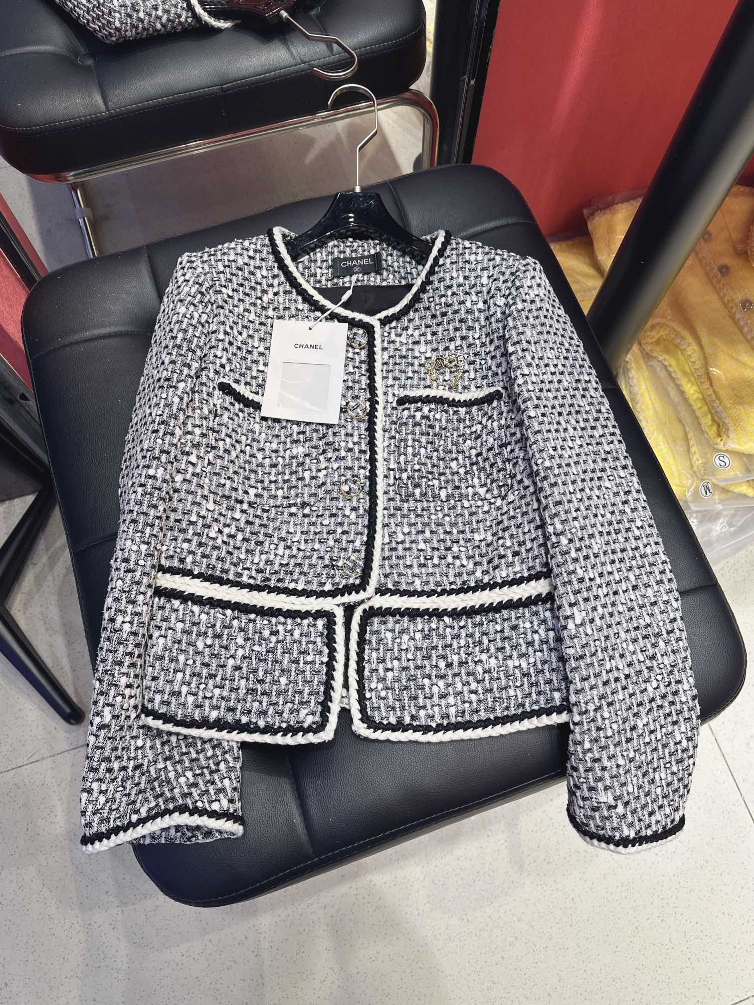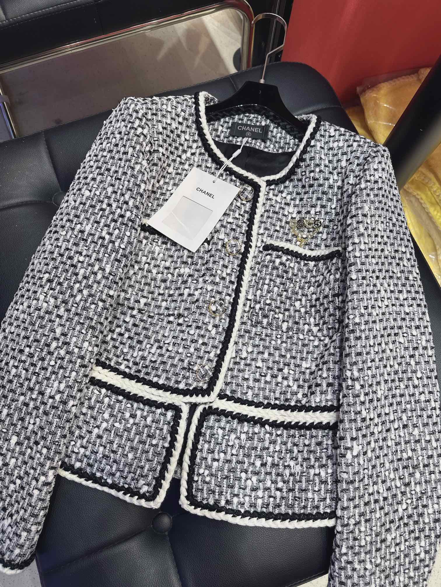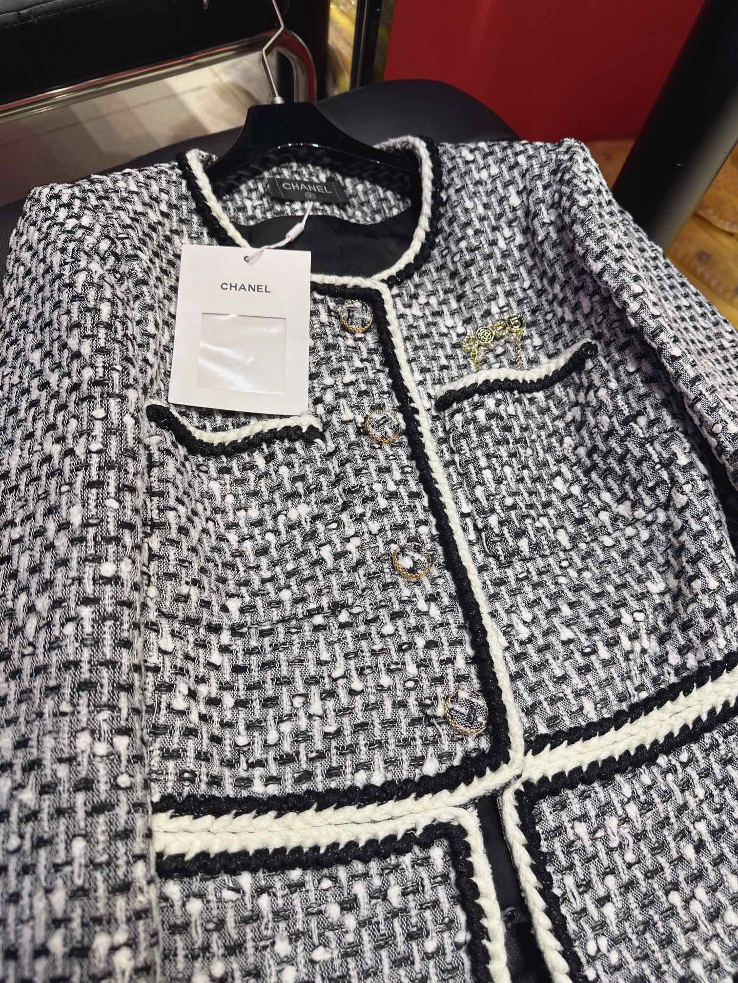 CC 25Ss Piece Style Jacket Black and White Tweed