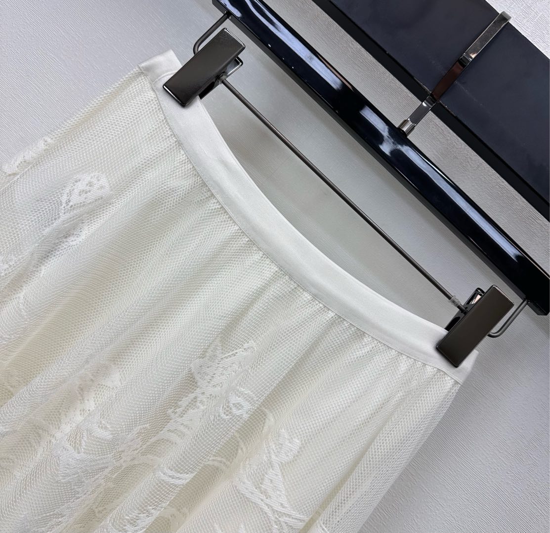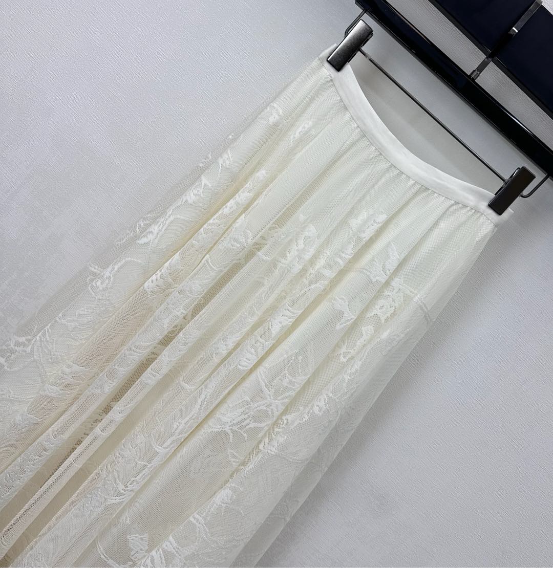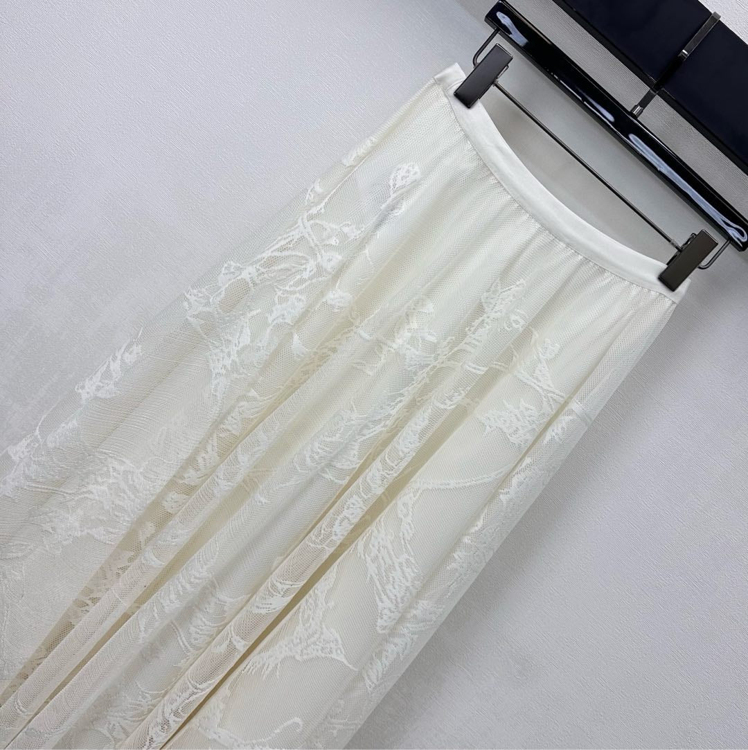 CD Lace Mesh Midi Skirt Ivory Polyester 350177