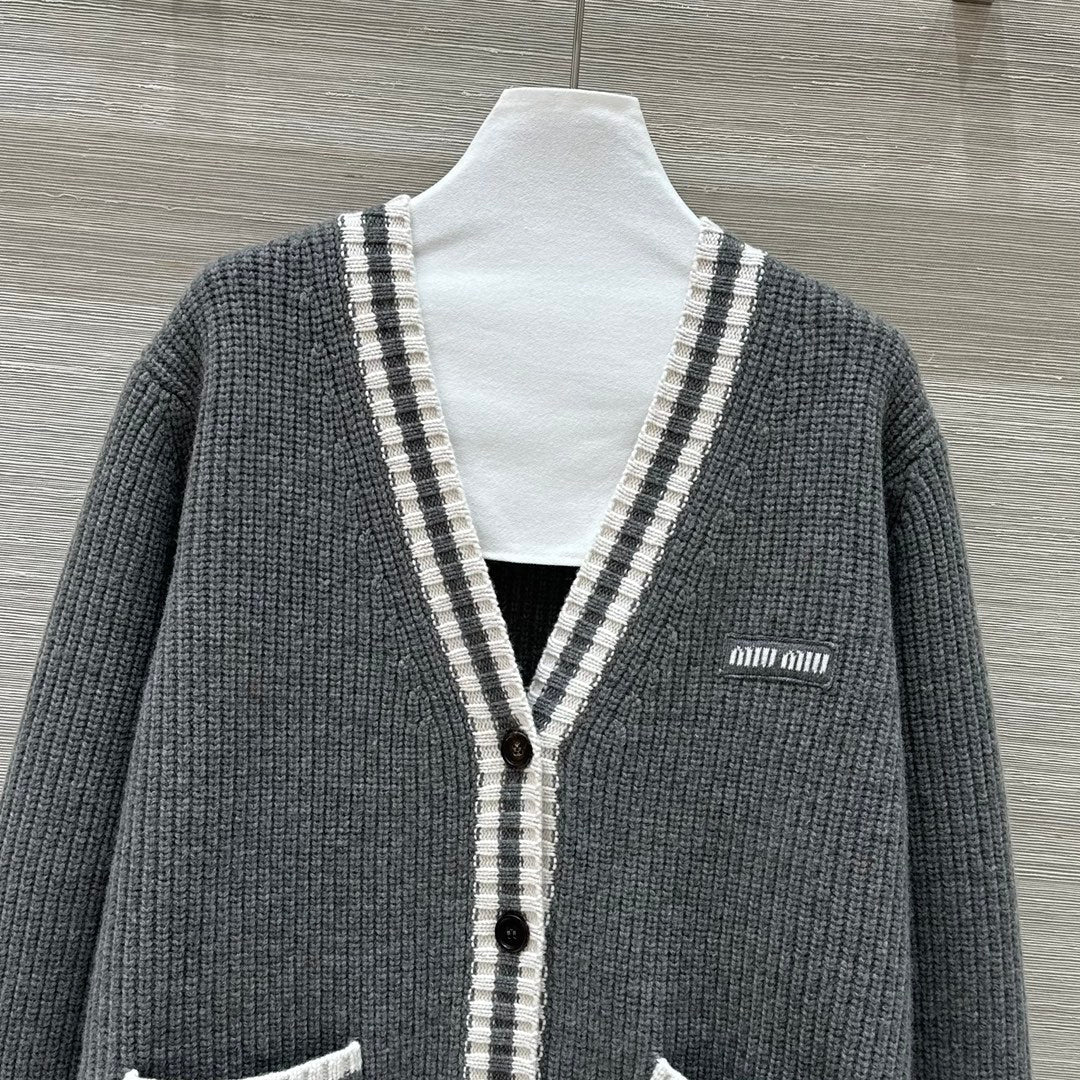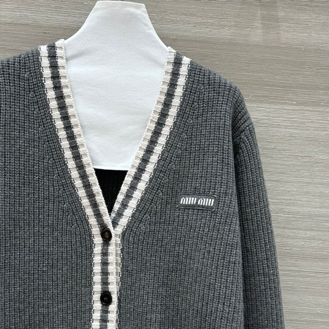 Miumiu V-neck knitted Cardigan Gray Cashmere