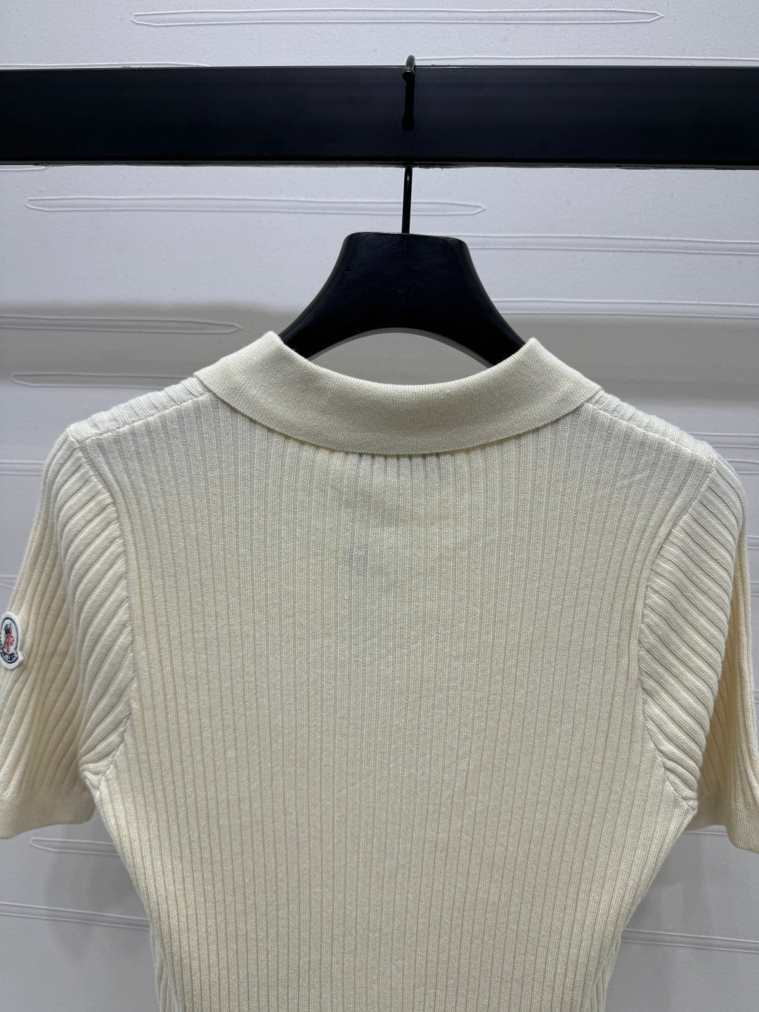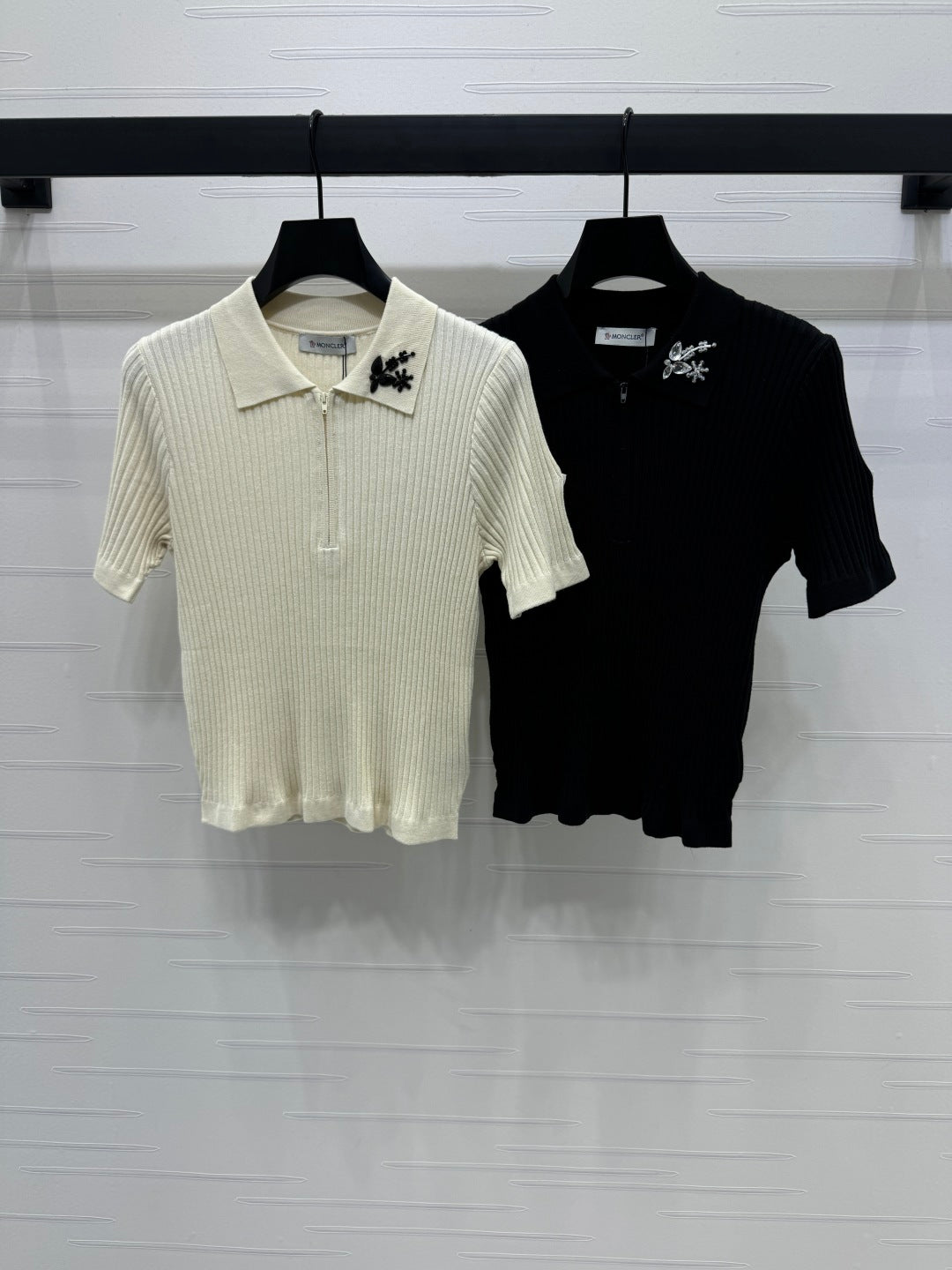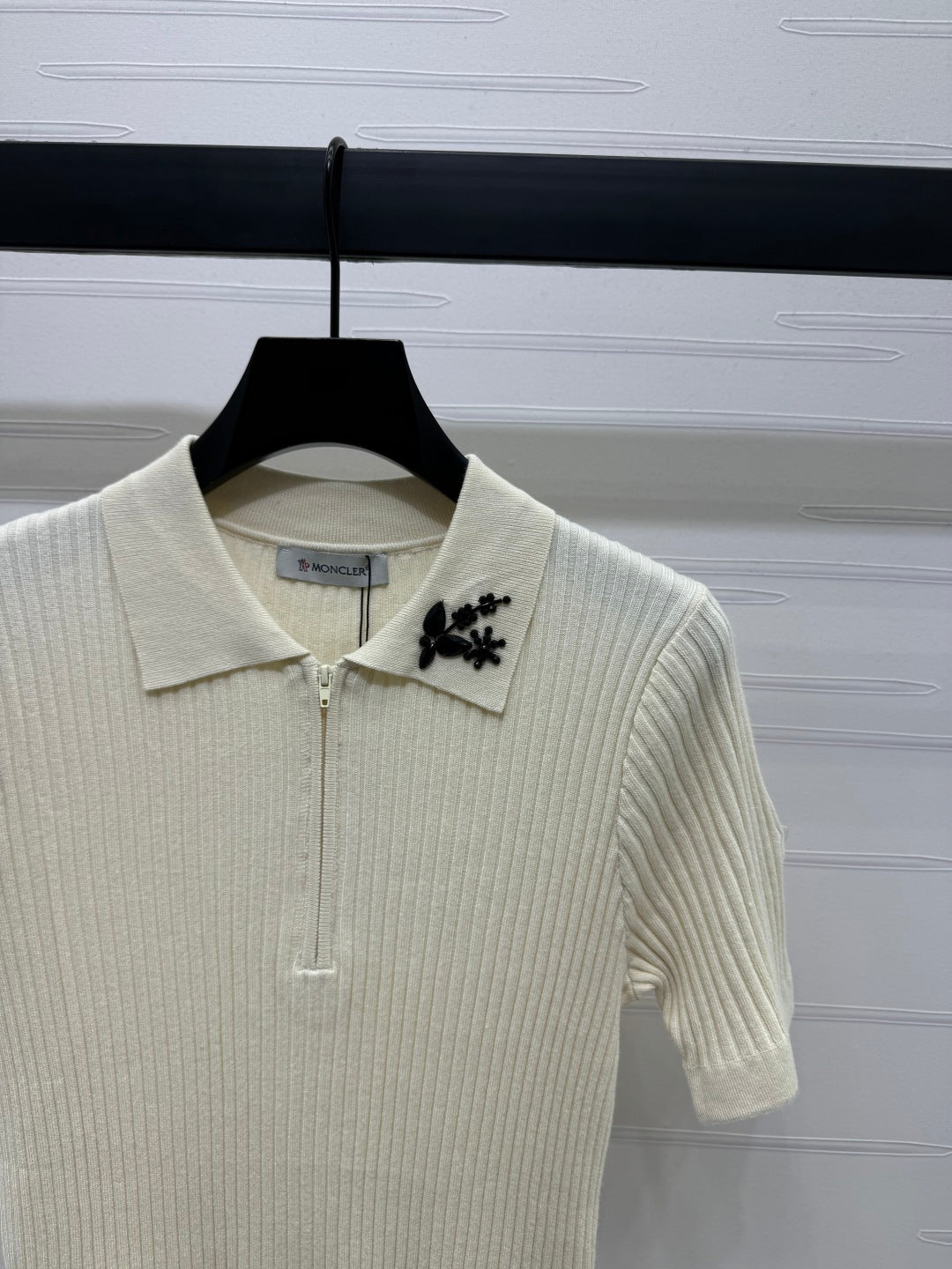 Moncle Beaded Lapel Knit Short-Sleeve Top Cream Tencel Cotton 255895