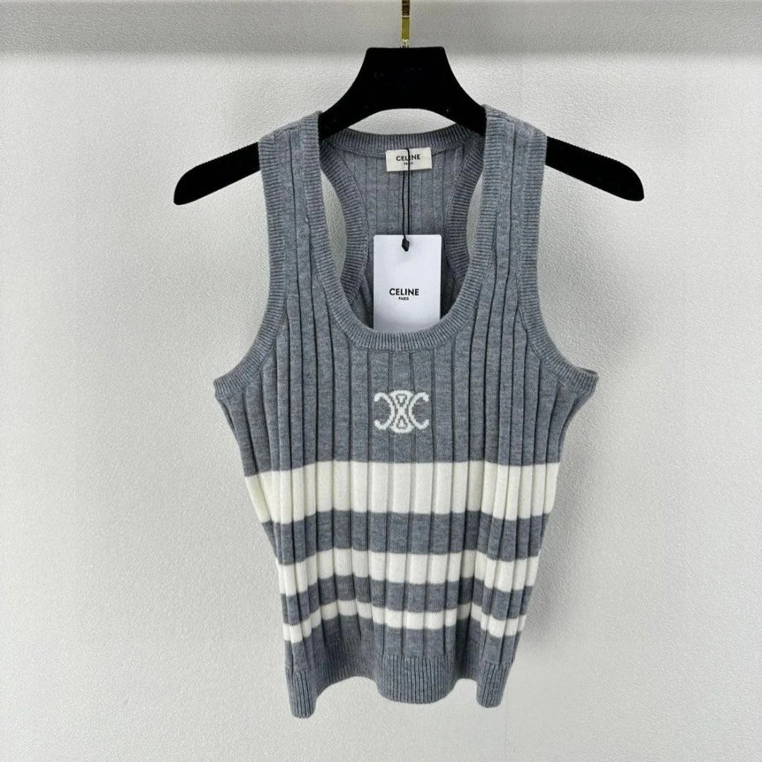 STRIPED TANK TOP 625958 IN GRAY AND WHITE COTTON RIBBED