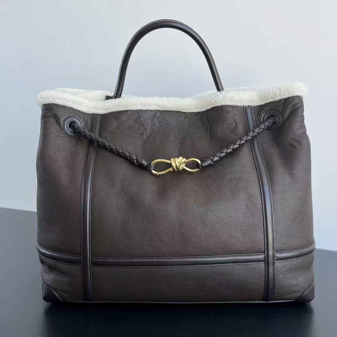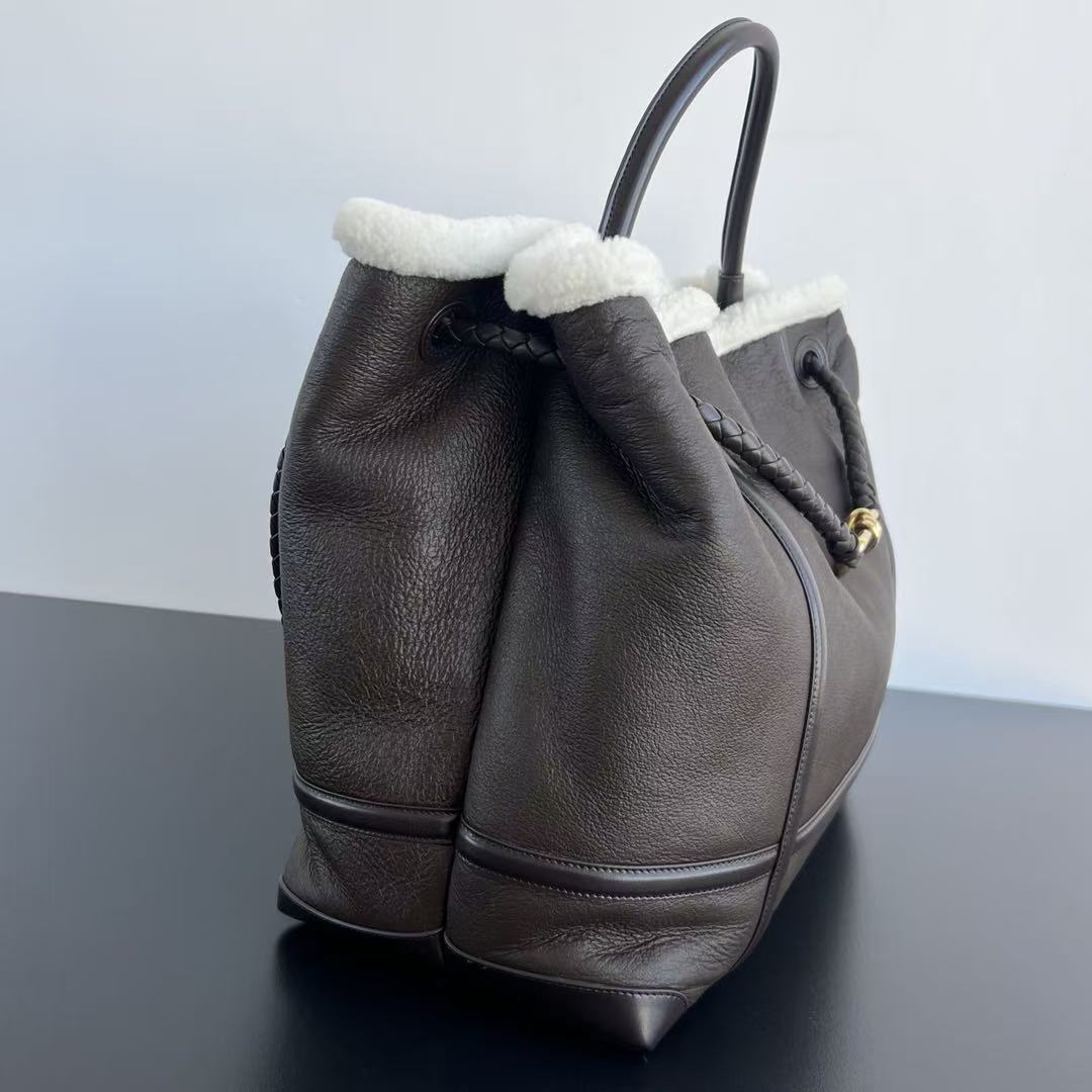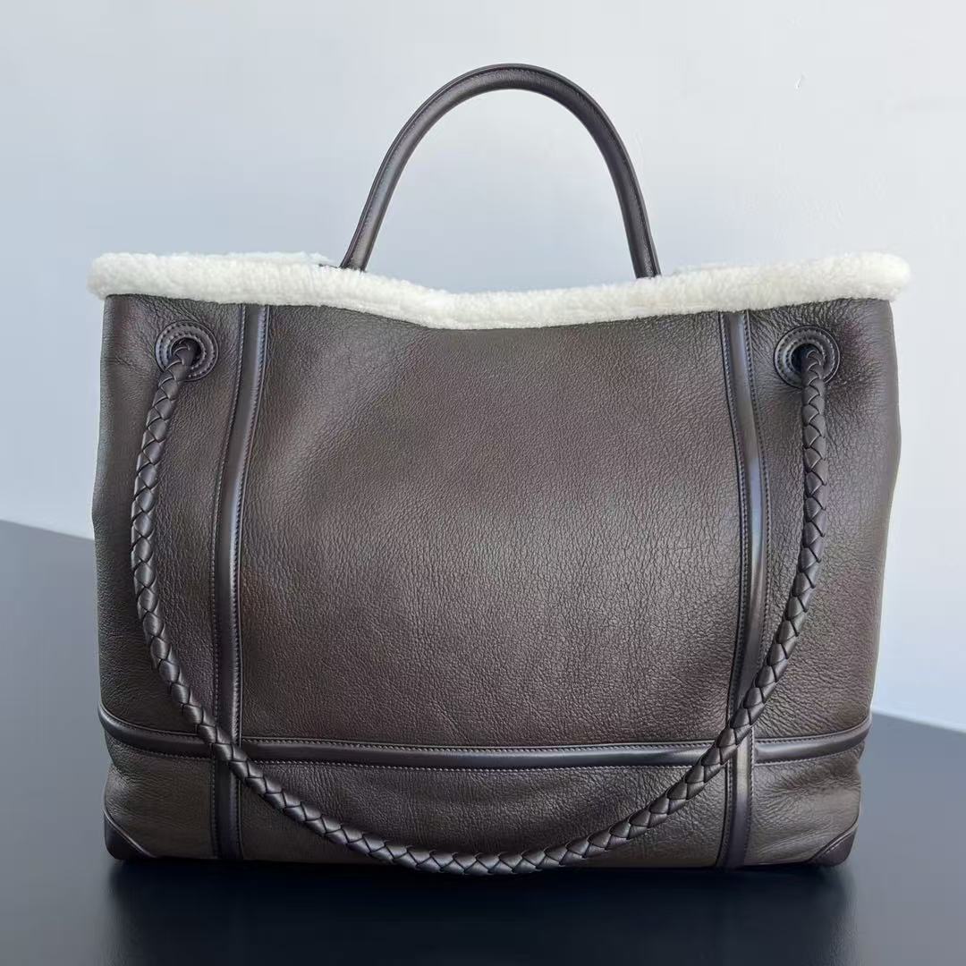 BV Andiamo Large Brown White Fur Leather