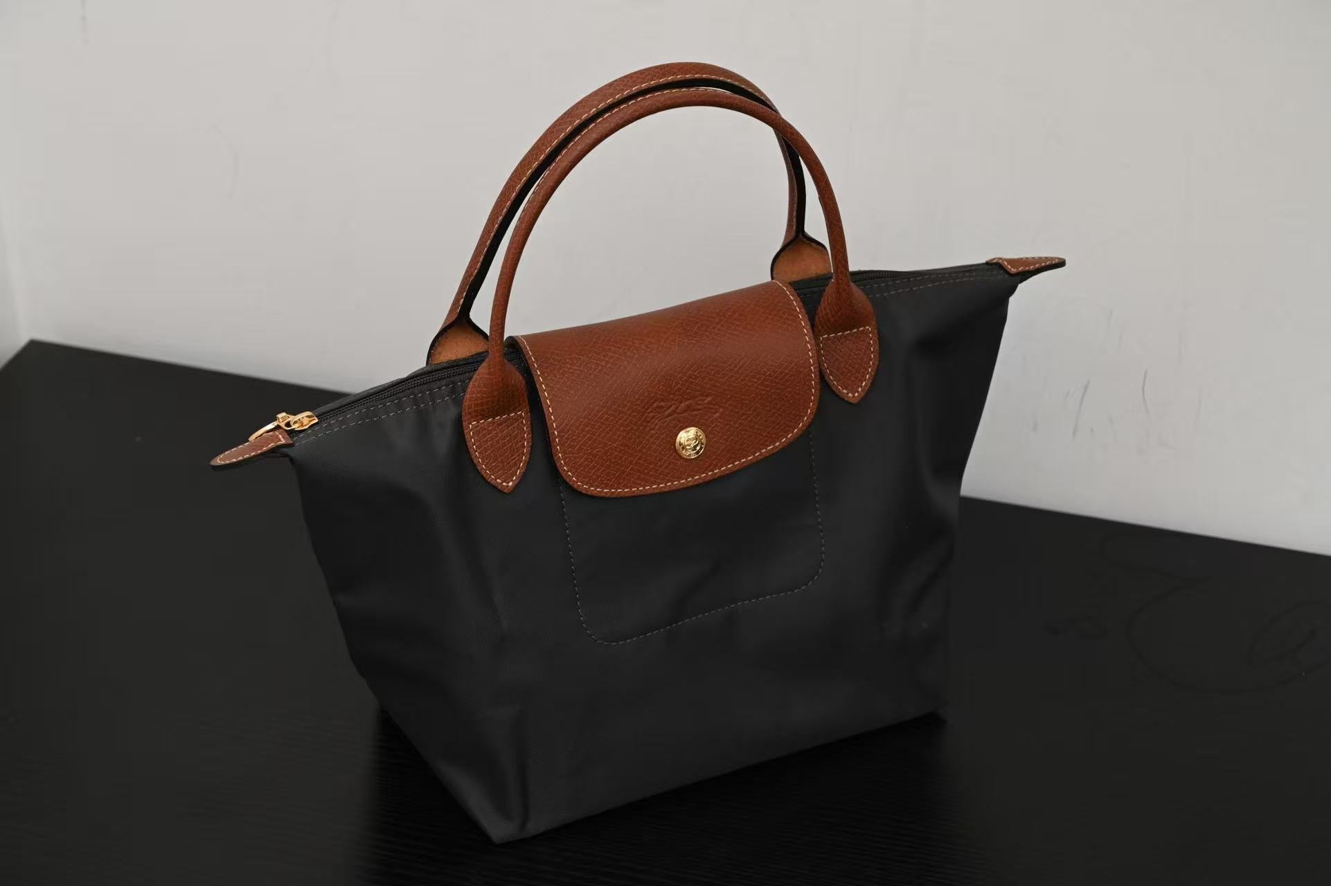 Longchamp Small Le Pliage Tote Bag Brown Black Polyamide Leather