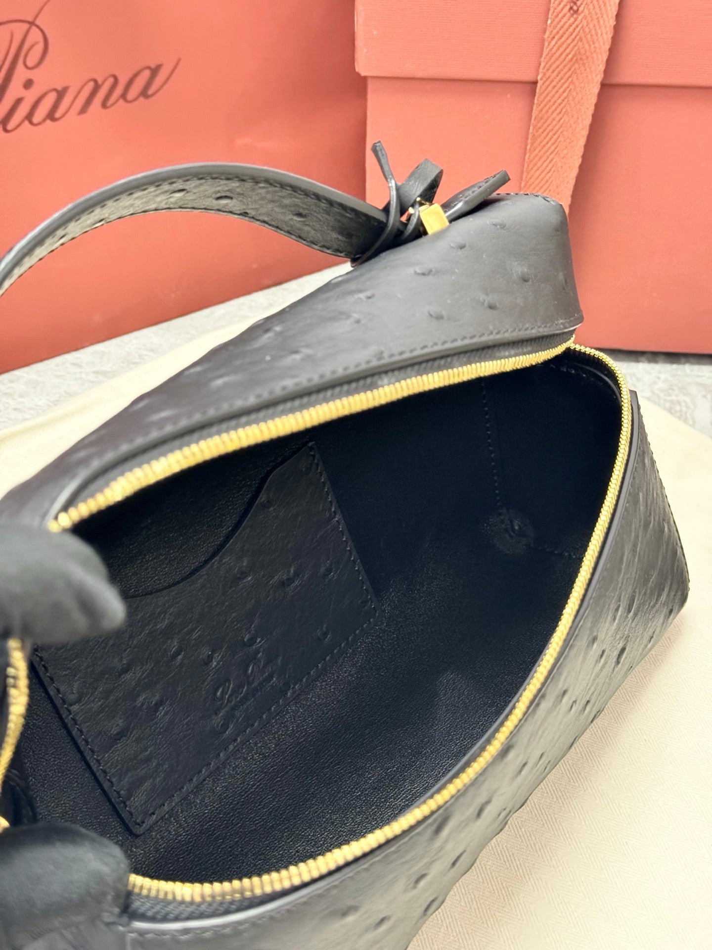 - Material: Ostrich Pattern Leather