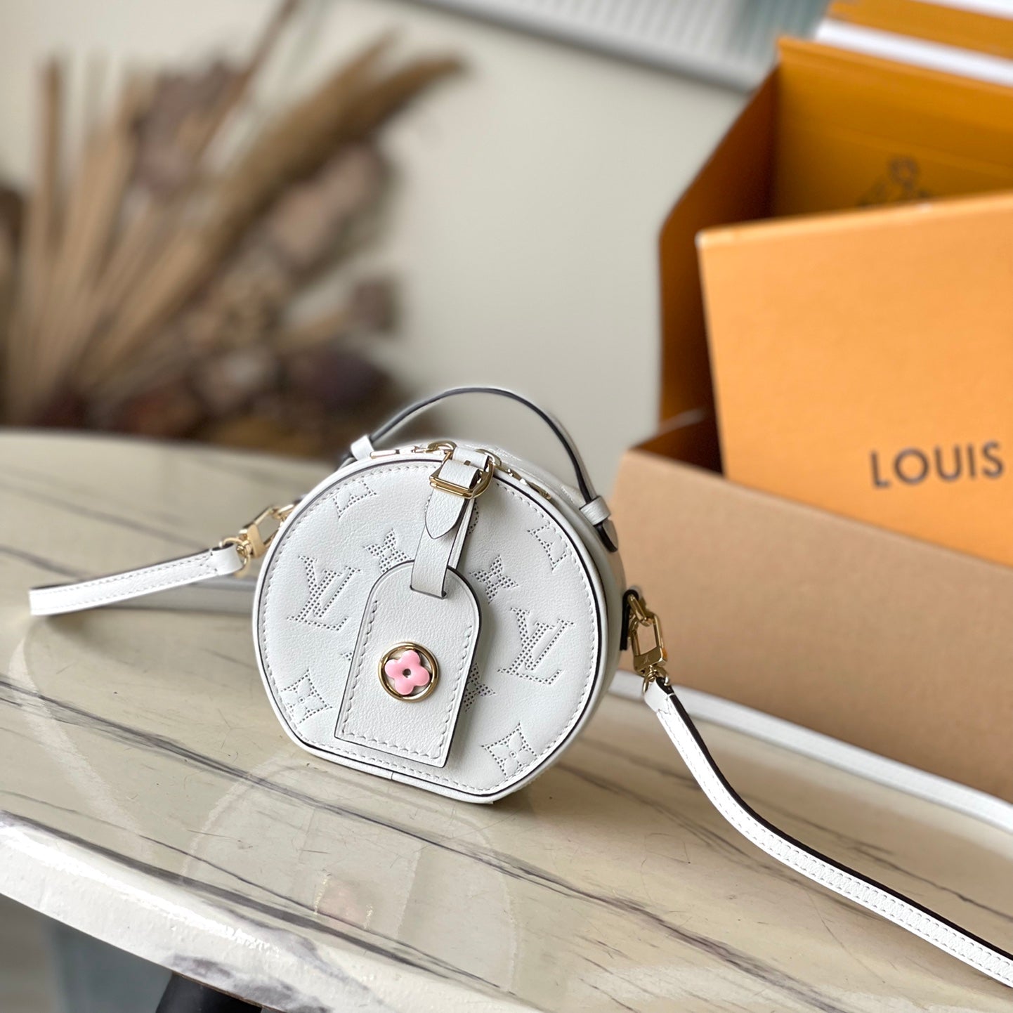 MINI BOITE CHAPEAU 13 IN WHITE MONOGRAM PERFORATED CALFSKIN