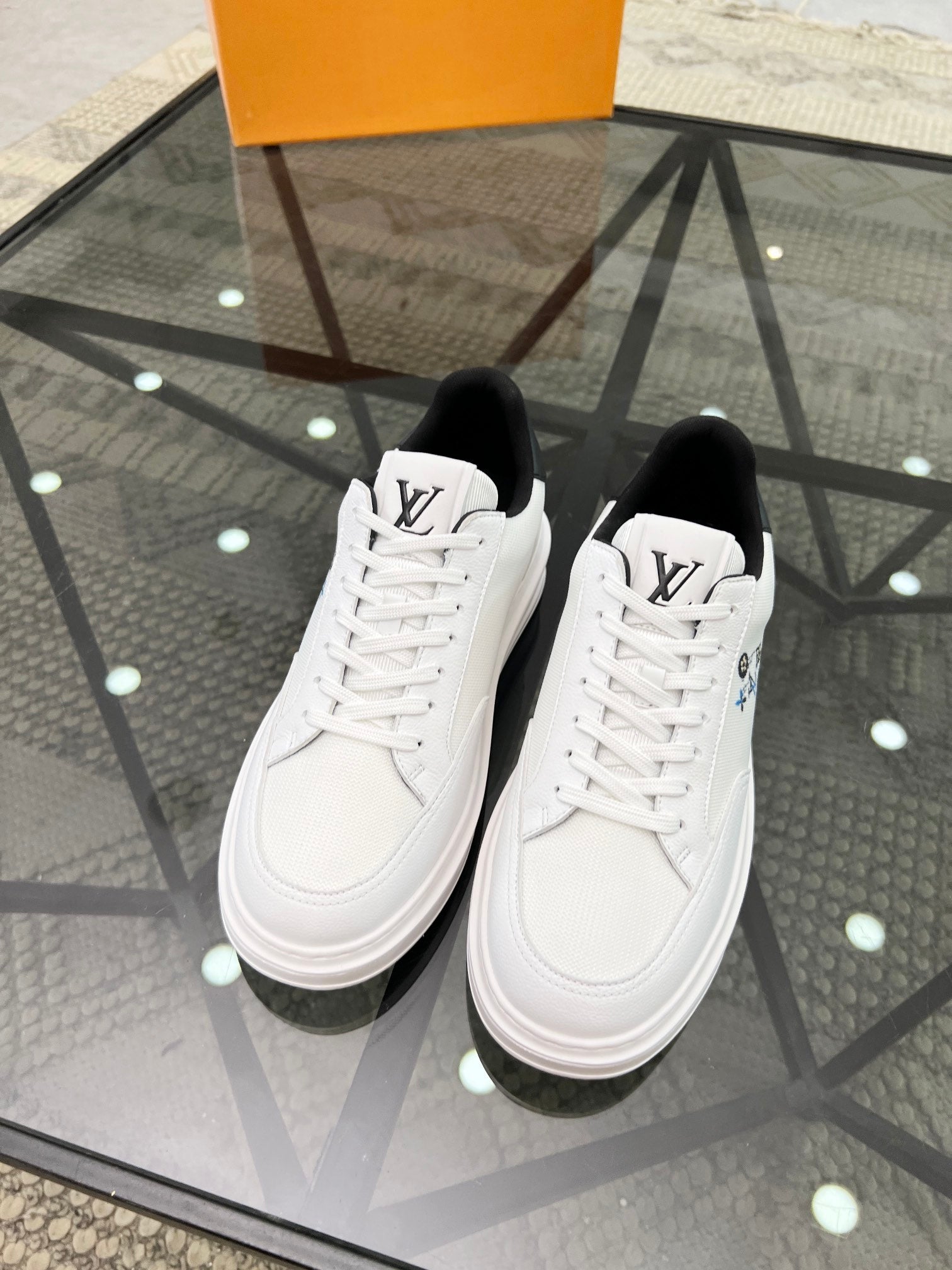 BEVERLY HILLS TRAINERS WHITE MIX BLACK CALFSKIN AND MESH FABRIC