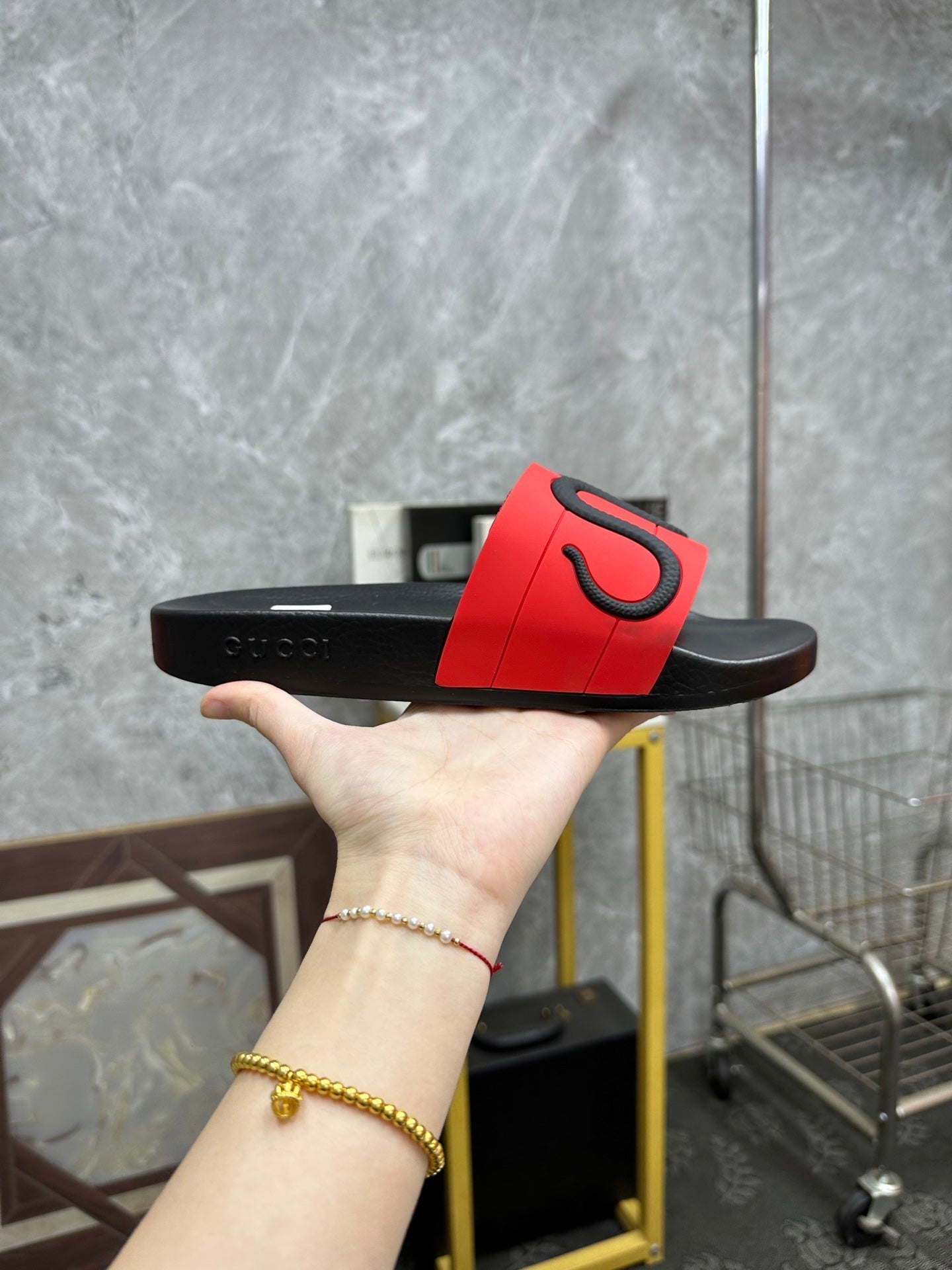 GG Men's Snake Embossed Slide Red Rubber 540114