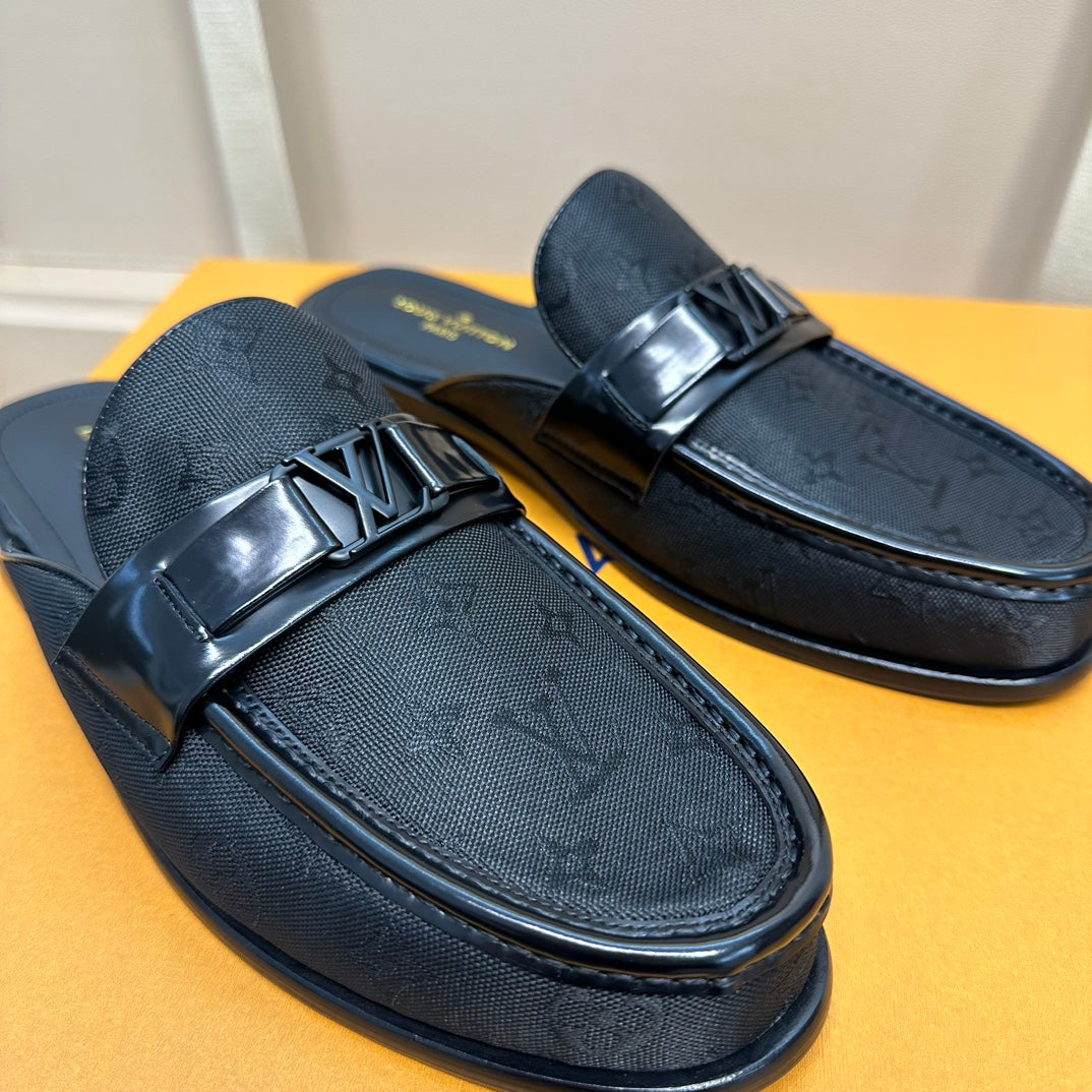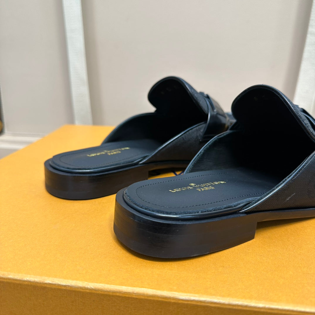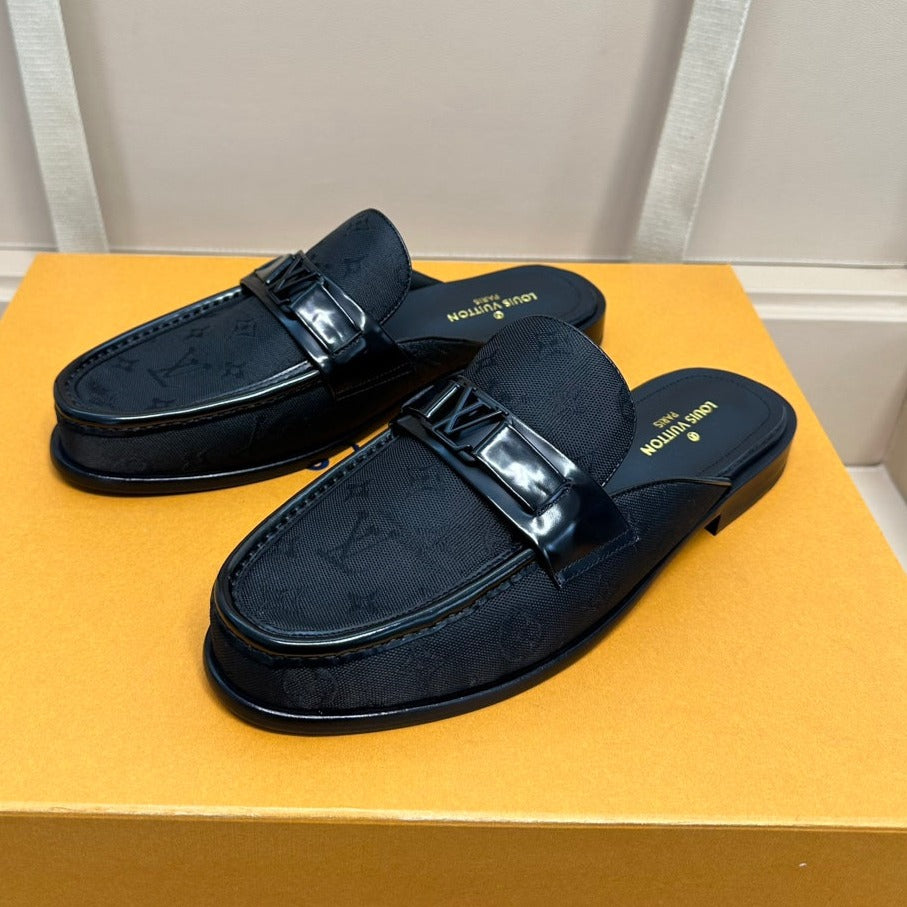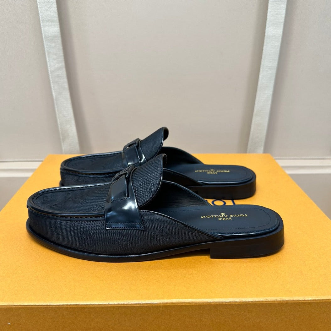 LV EASY MULE IN BLACK MONOGRAM DENIM