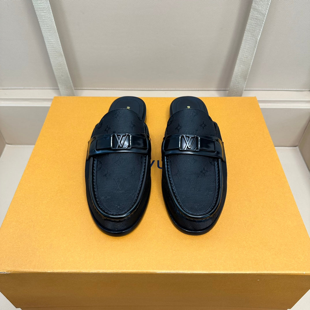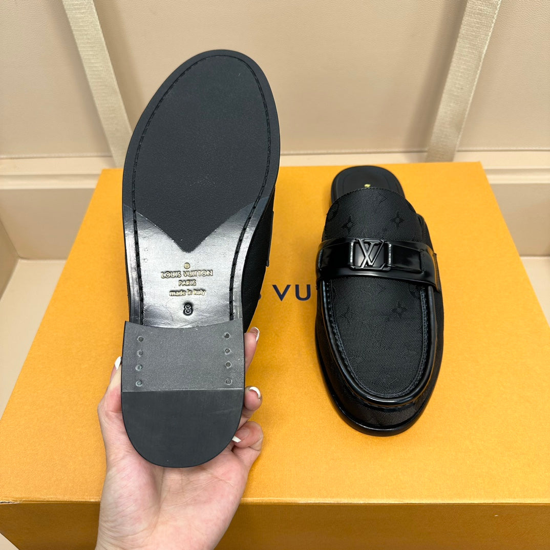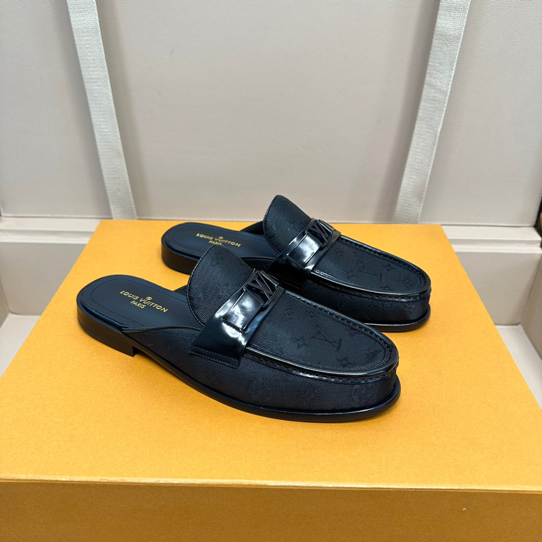 LV EASY MULE IN BLACK MONOGRAM DENIM