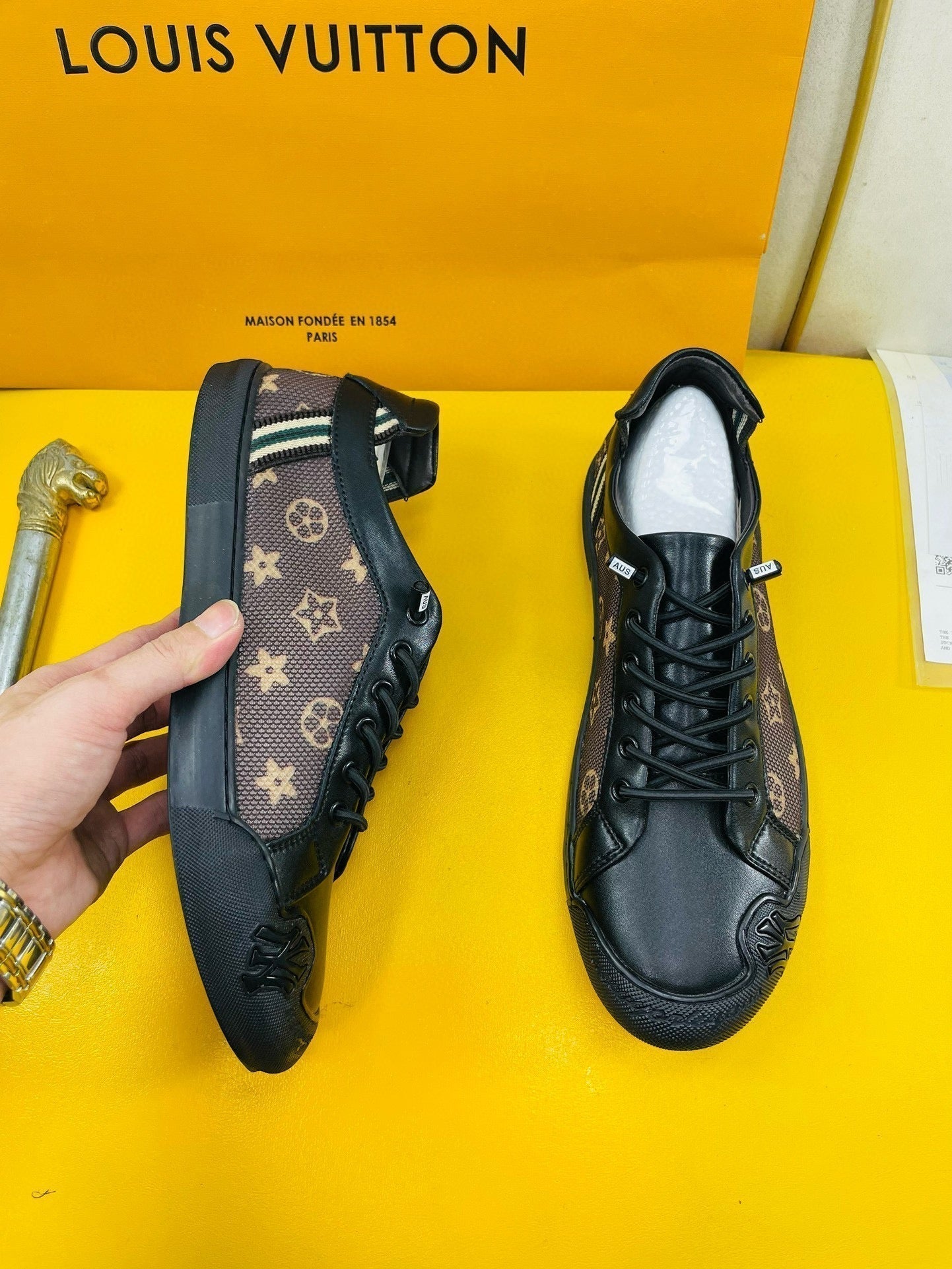 LV SNEAKER BROWN MONOGRAM JACQUARD AND BLACK CALFSKIN