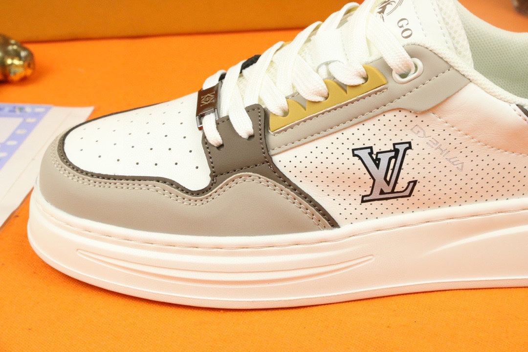 LV TRAINER SNEAKER IN WHITE MIX GREY MESH CALFSKIN