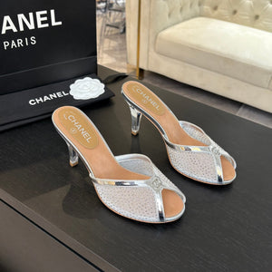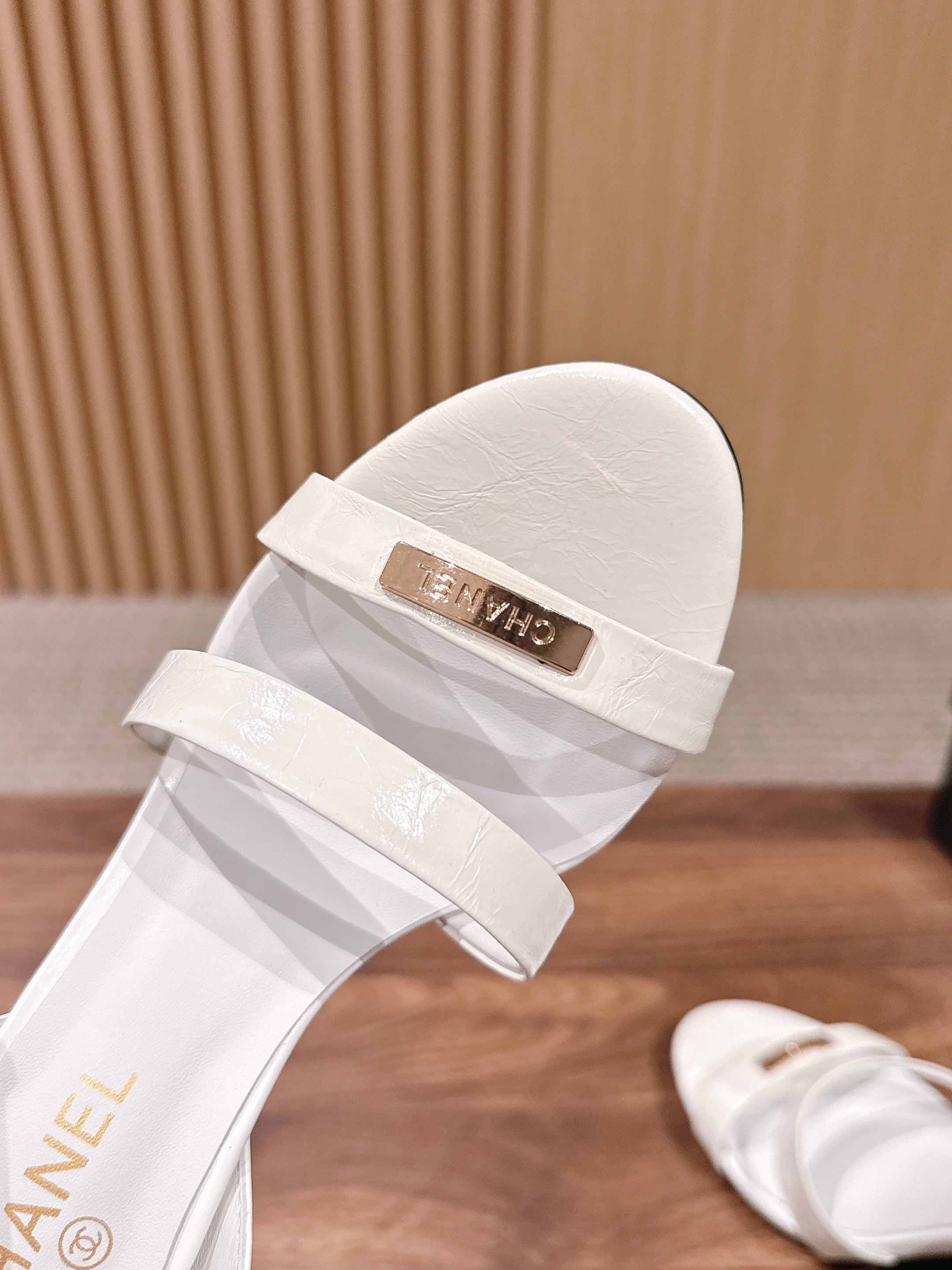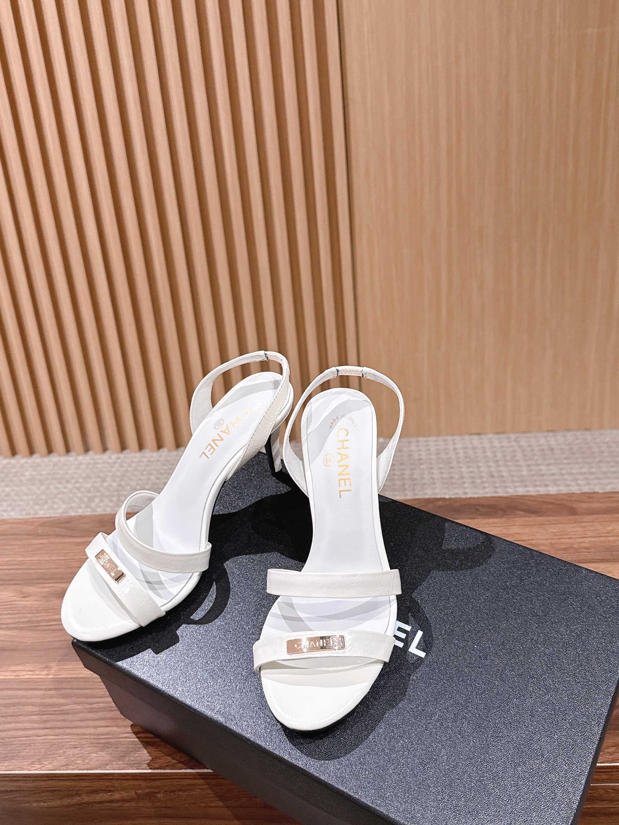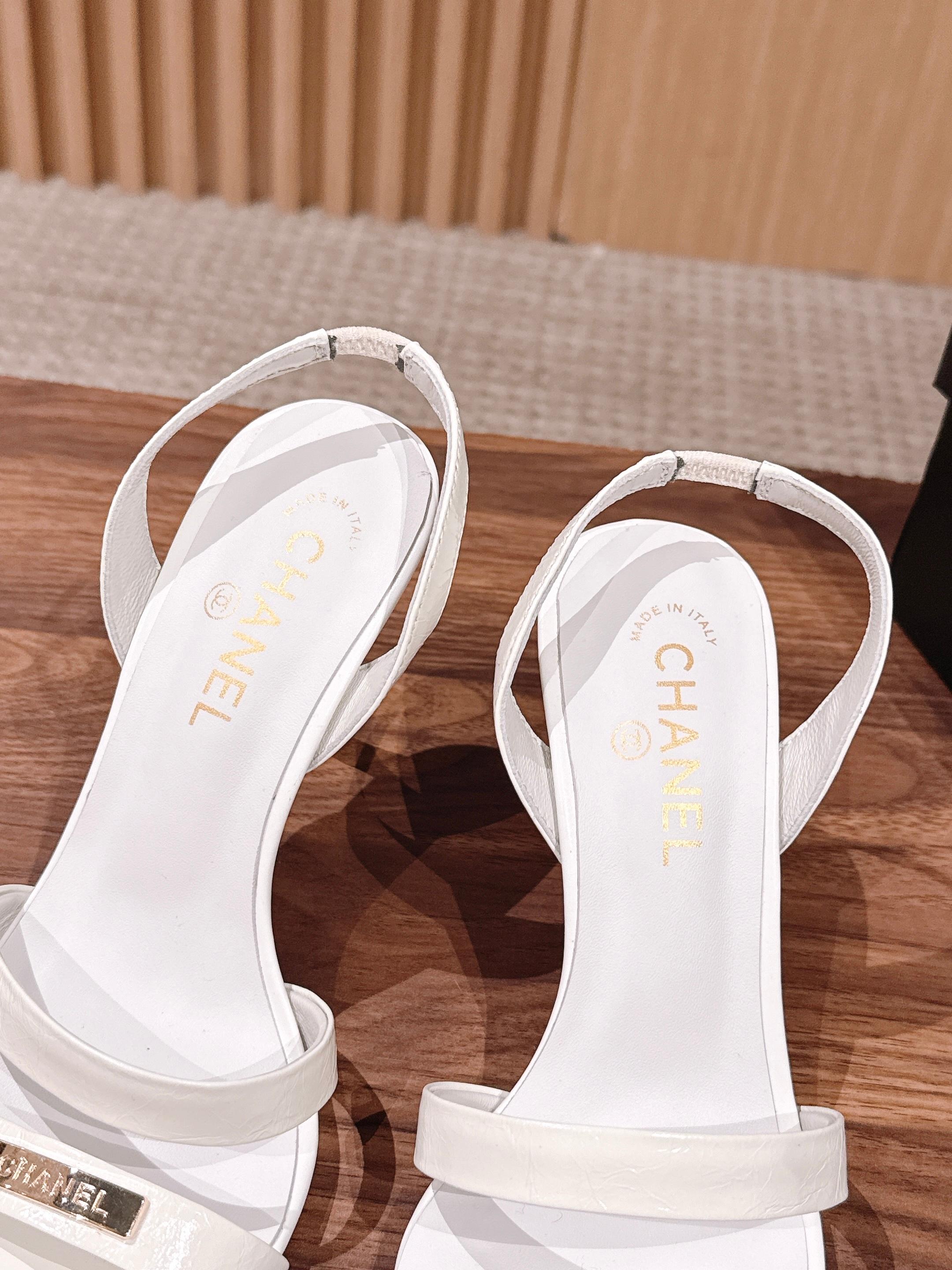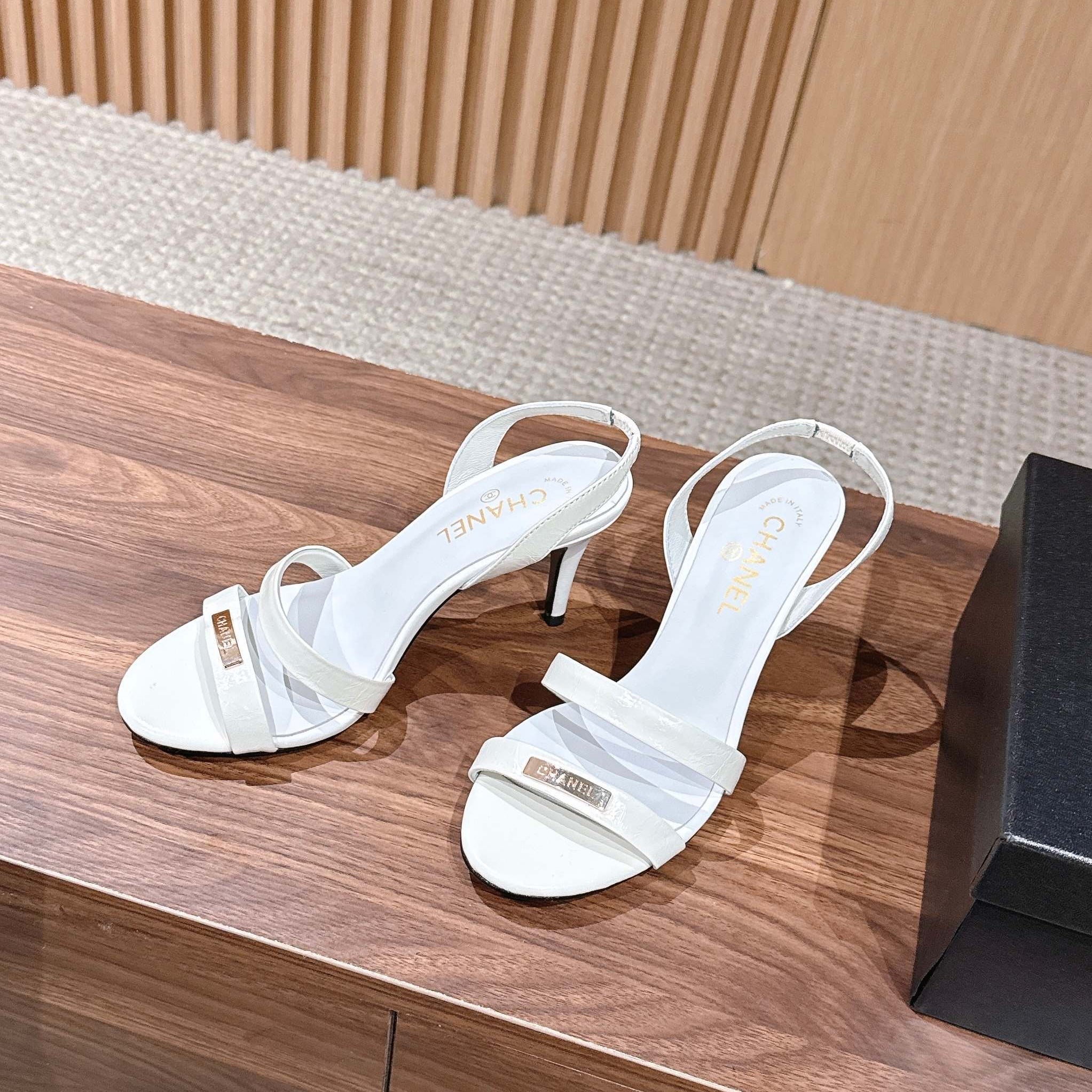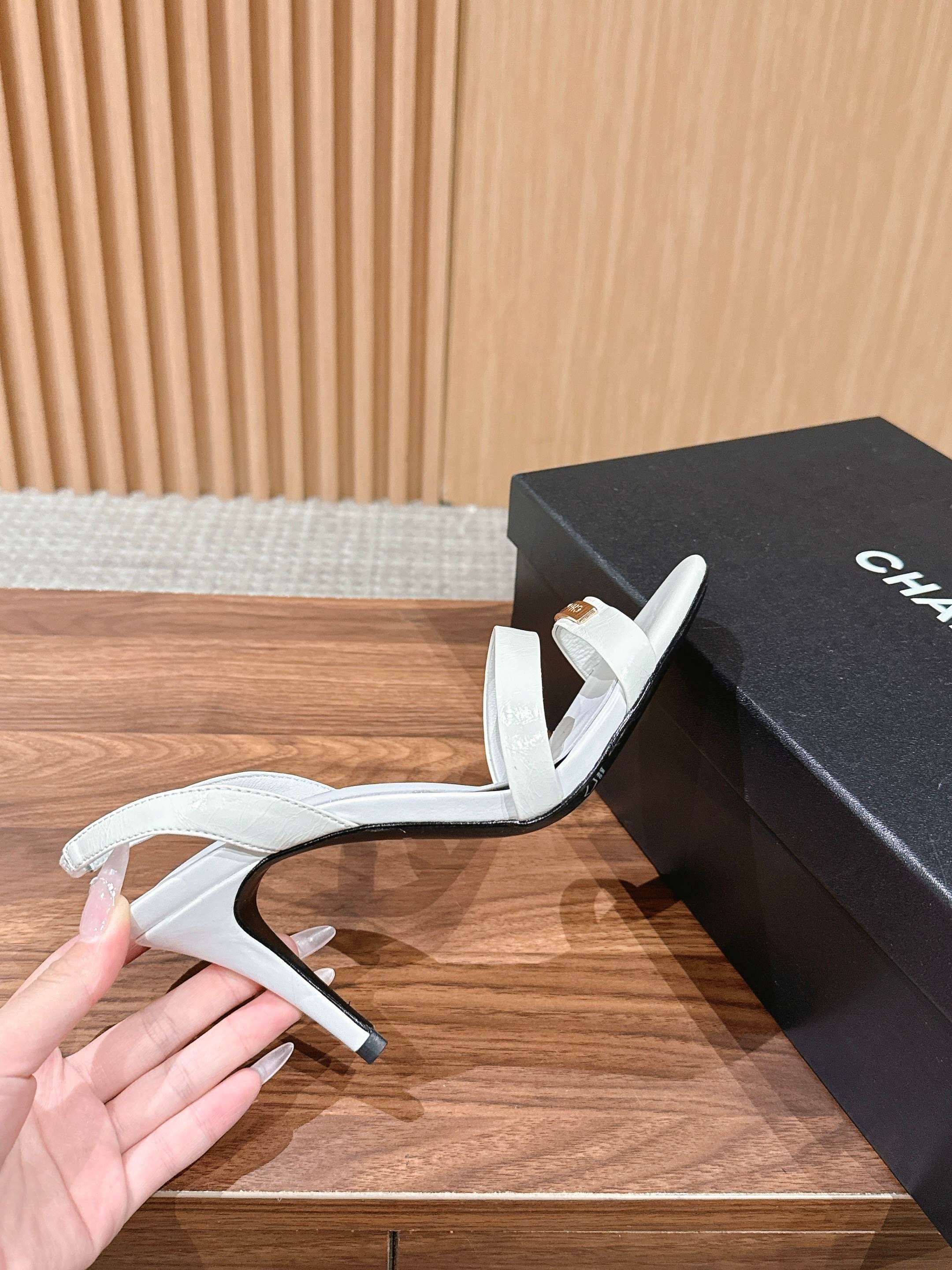 CC 26SS Gold Buckle Strappy High-Heeled 85 Sandals White in Cowhide 692566