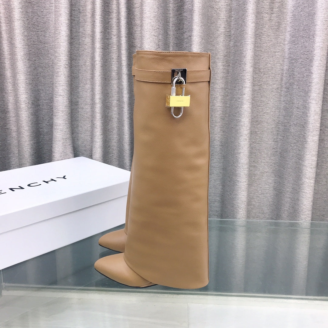 Givenchy Shark-Lock Knee-High Boots Beige Cowhide