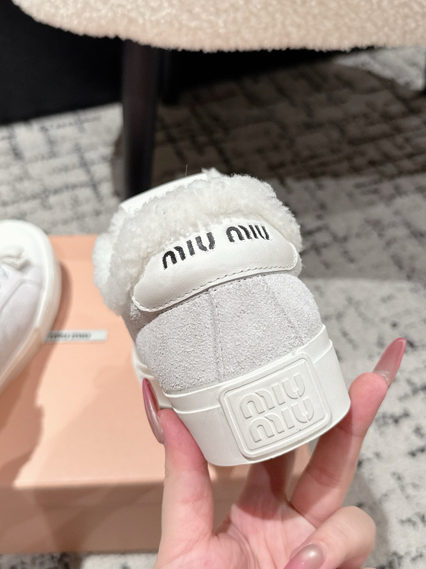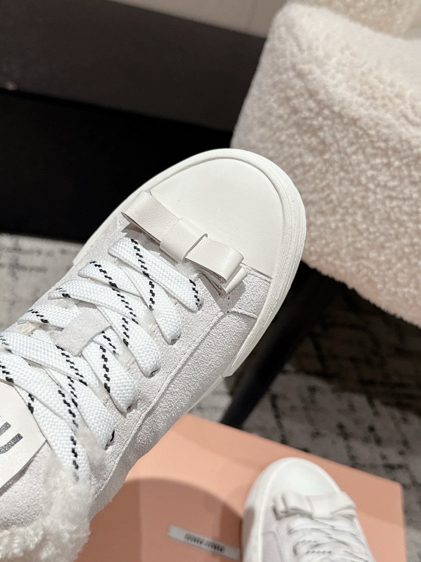 Miu 25 Small Bow Sneaker Gray White Suede Wool 541920