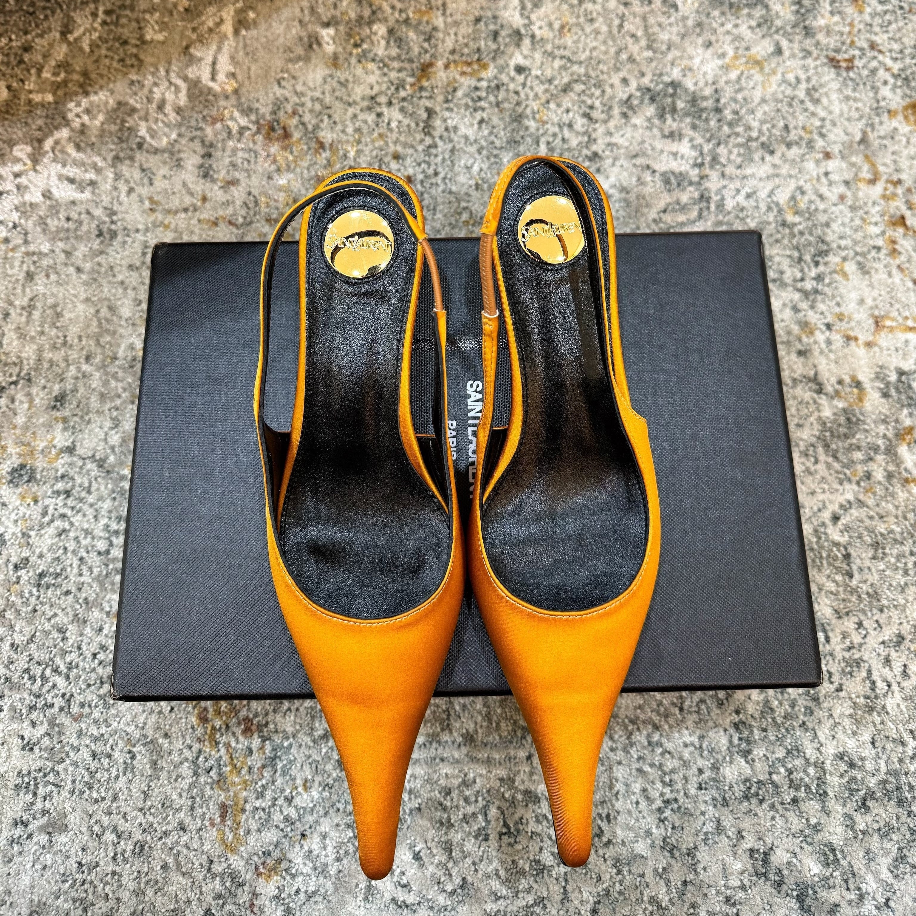 YSL Anne-Marie Slingback 8cm Orange Satin 637213