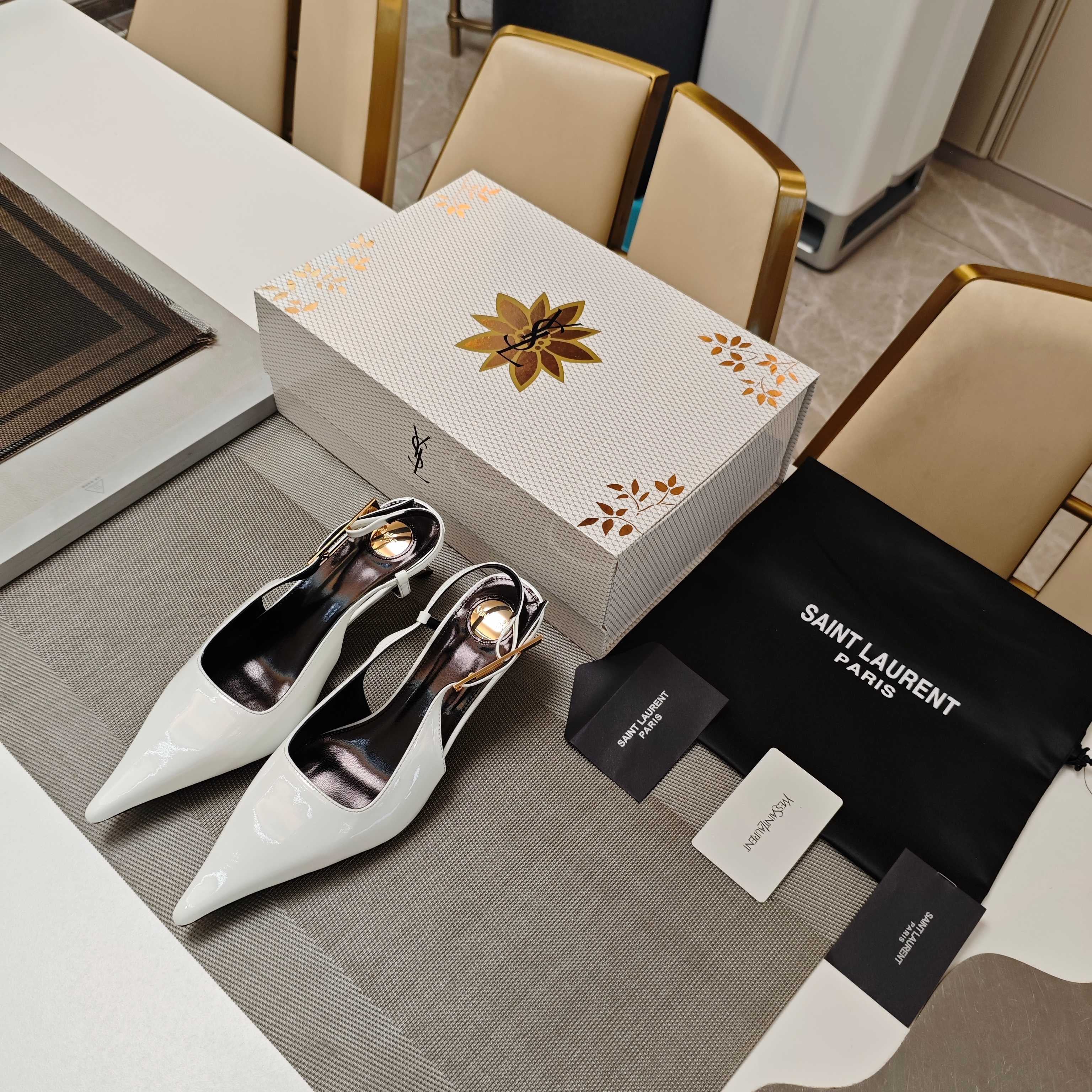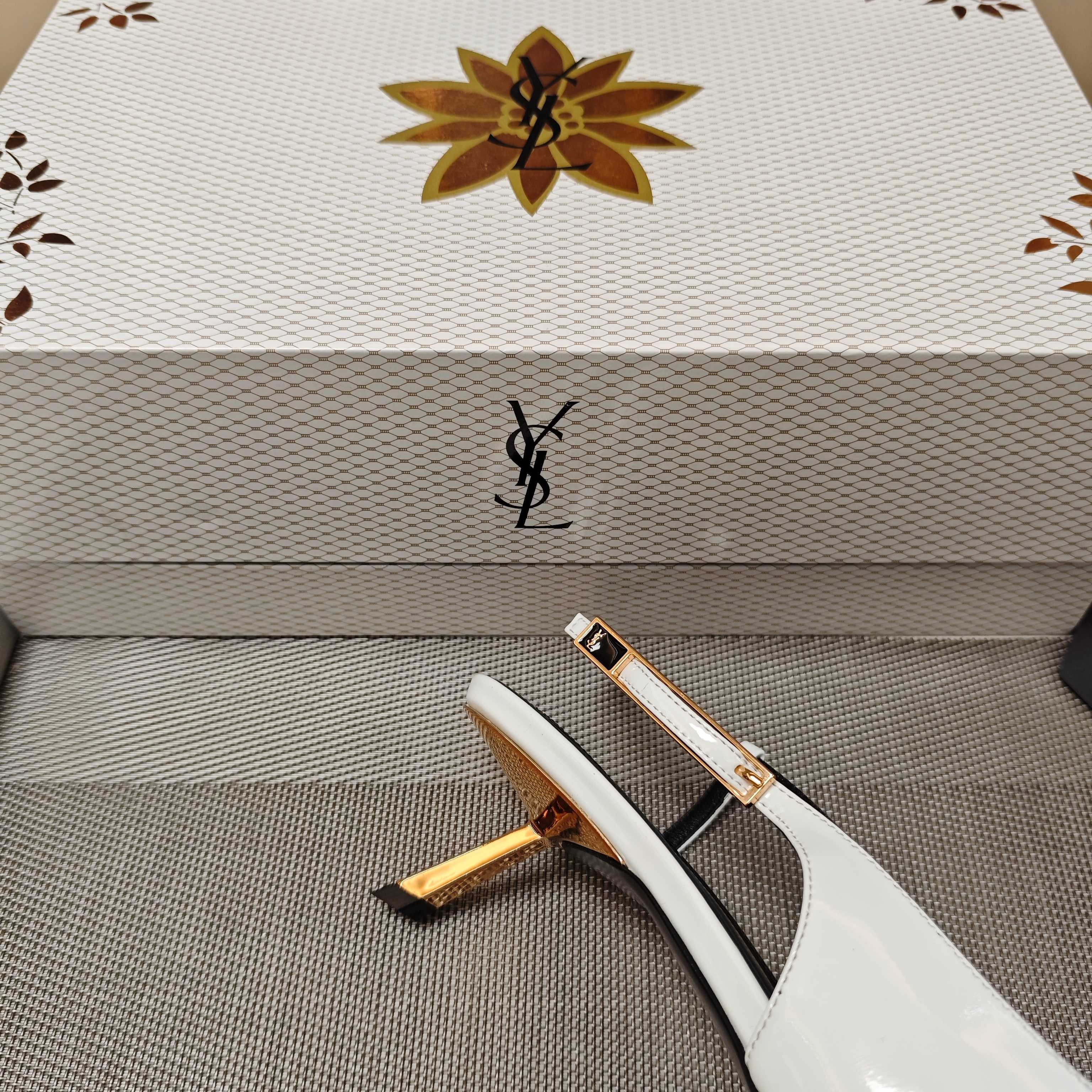 YSL Babylone Slingback 5.5cm White Glossy Leather