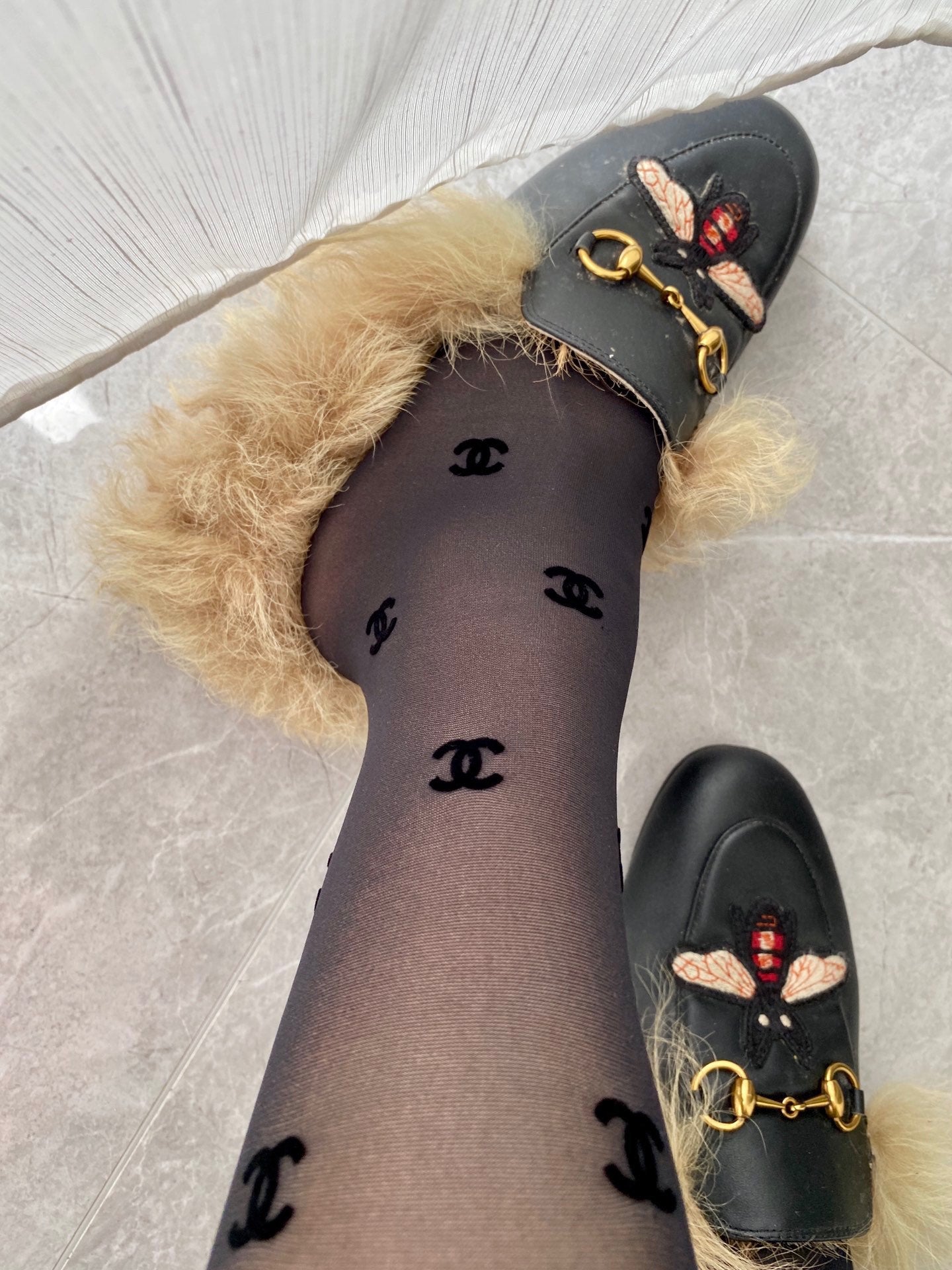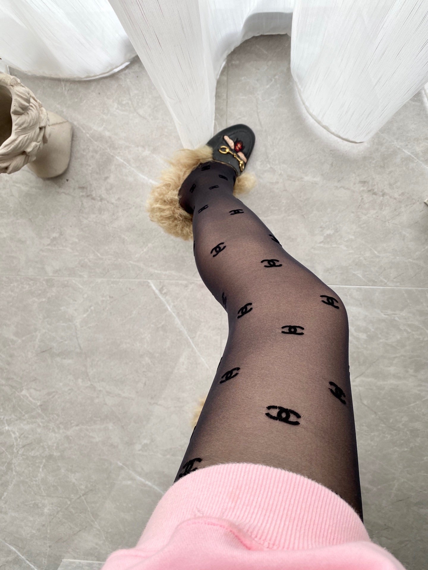 CC high-end flocked logo haute couture pantyhose