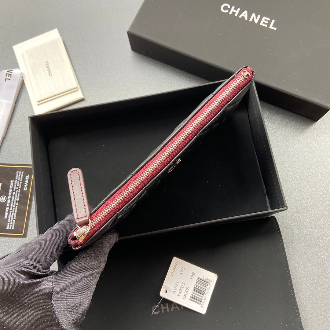 cc zipped wallet 20cm black quilted calfskin silver hardware