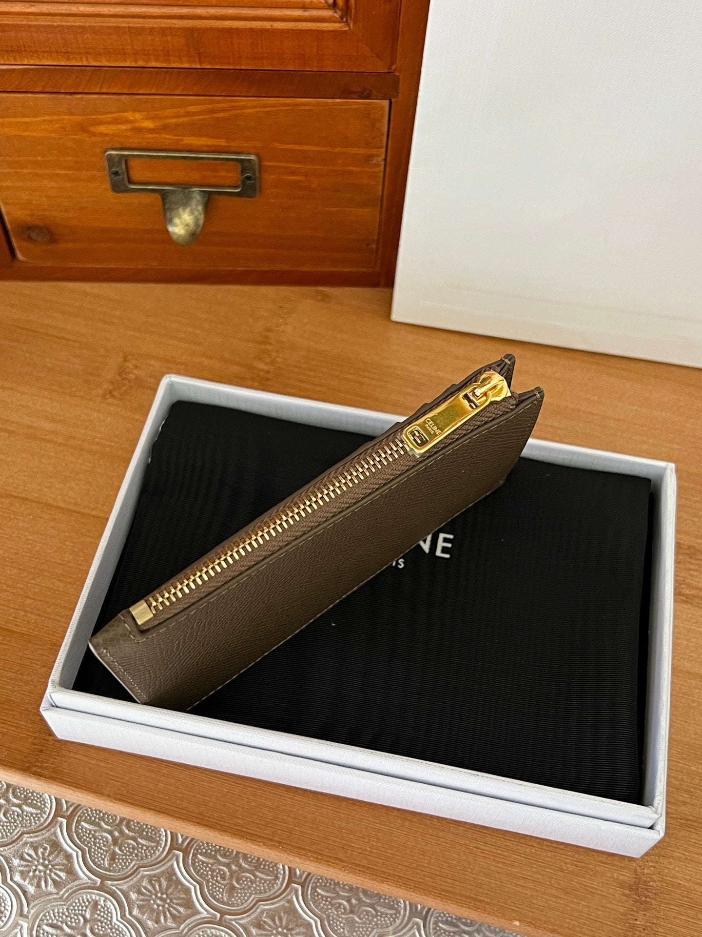 ESSENTIALS Zippered Compact Card Holder Dark Brown Cowhide