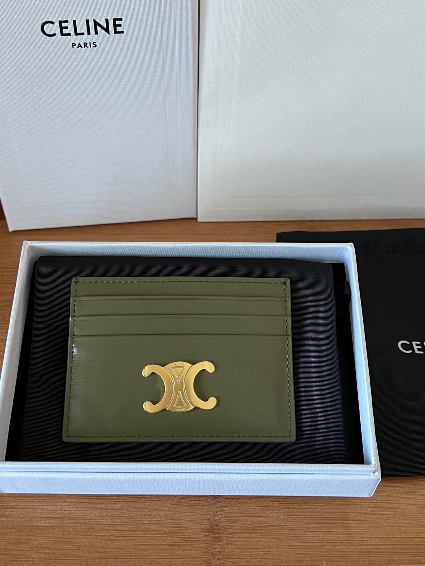 TRIOMPHE Card Holder Olive Green Cowhide& Fabric GHW