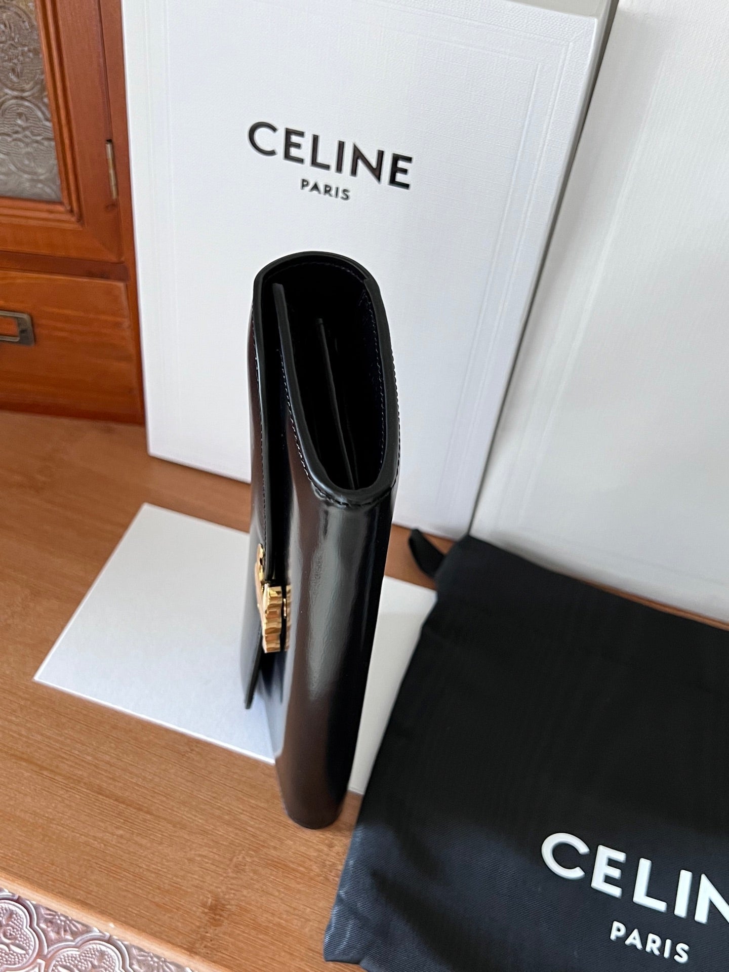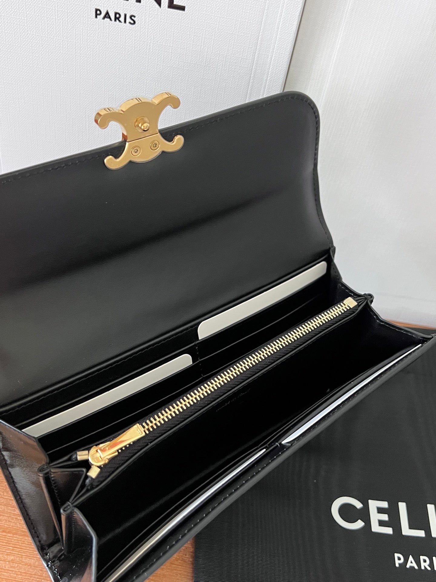TRIOMPHE Flap Wallet Card Holder 19cm Black Shiny Cafskin