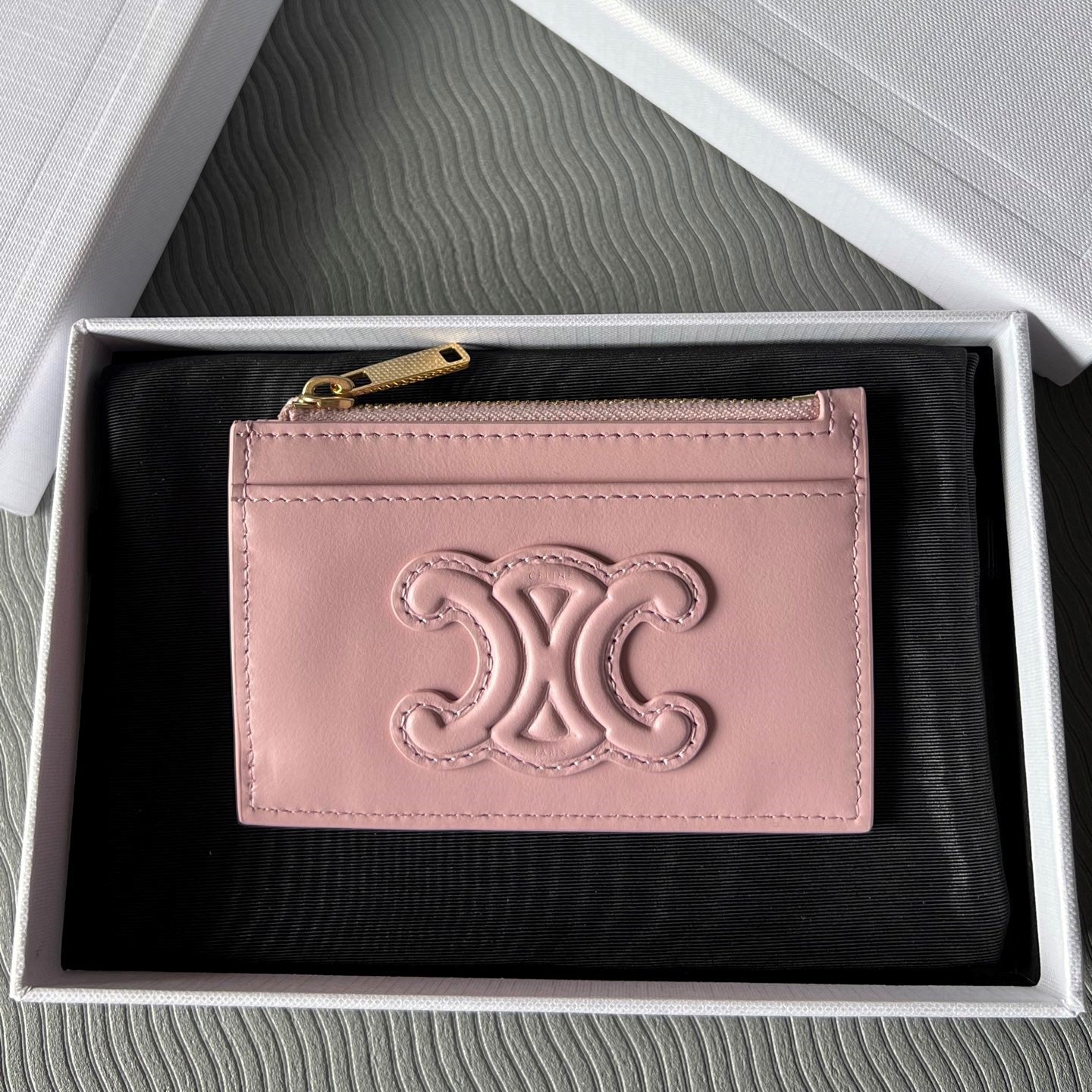 TRIOMPHE Zipped Card Holder Pink Cowhide Leather