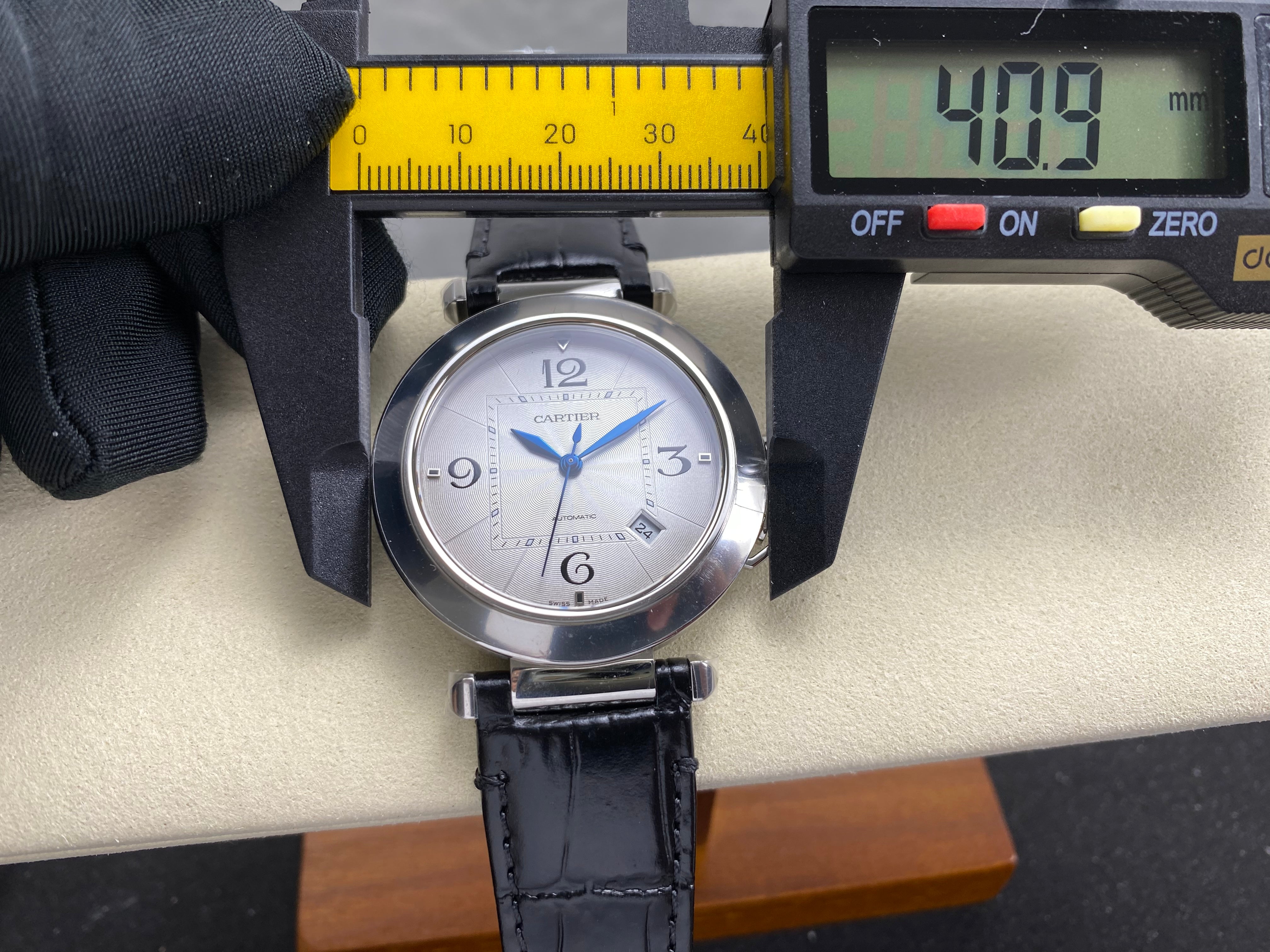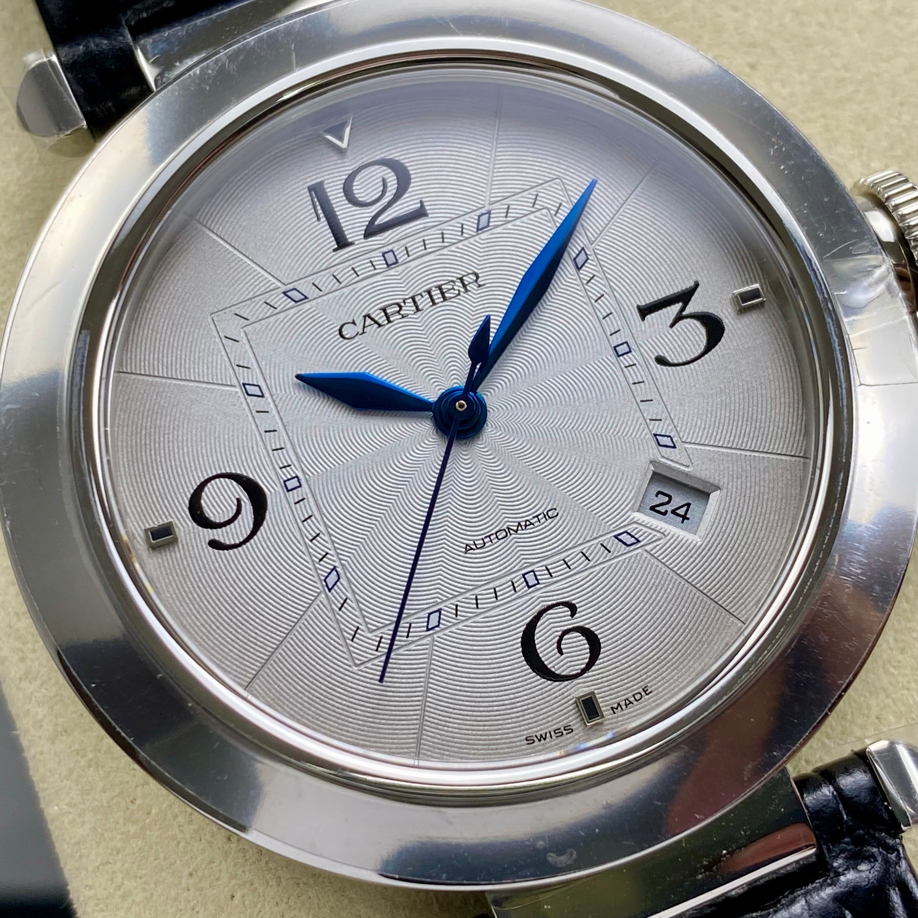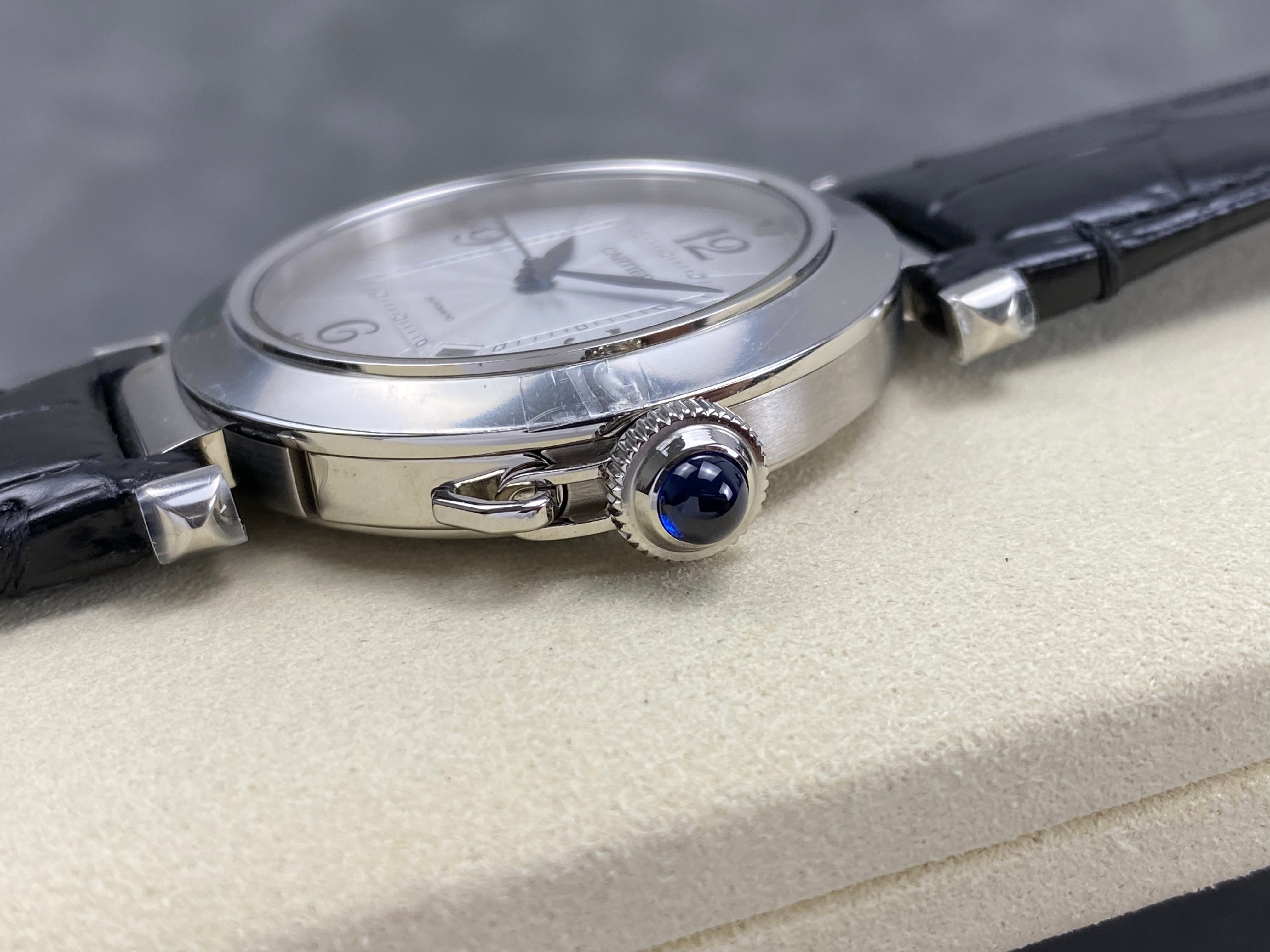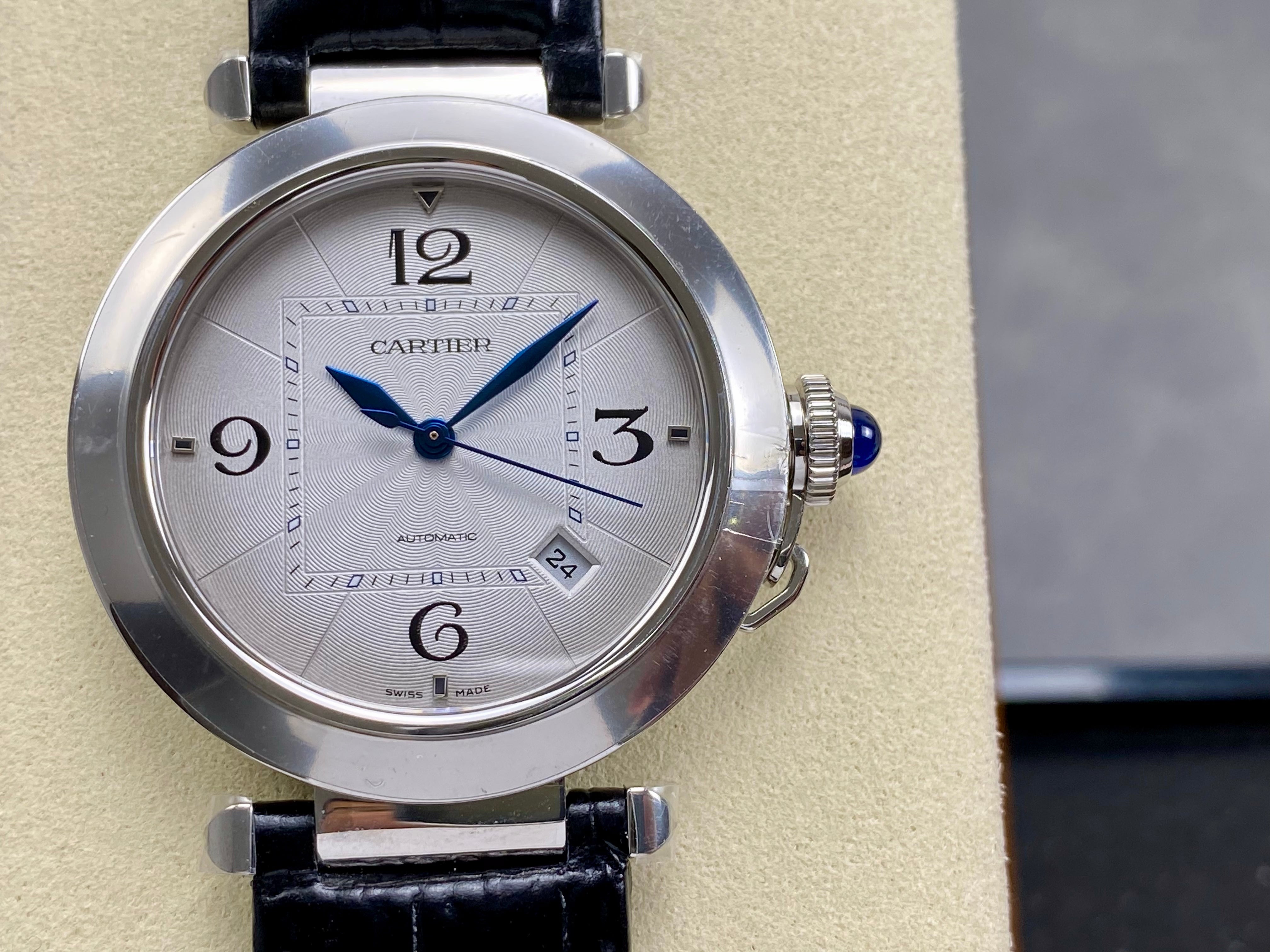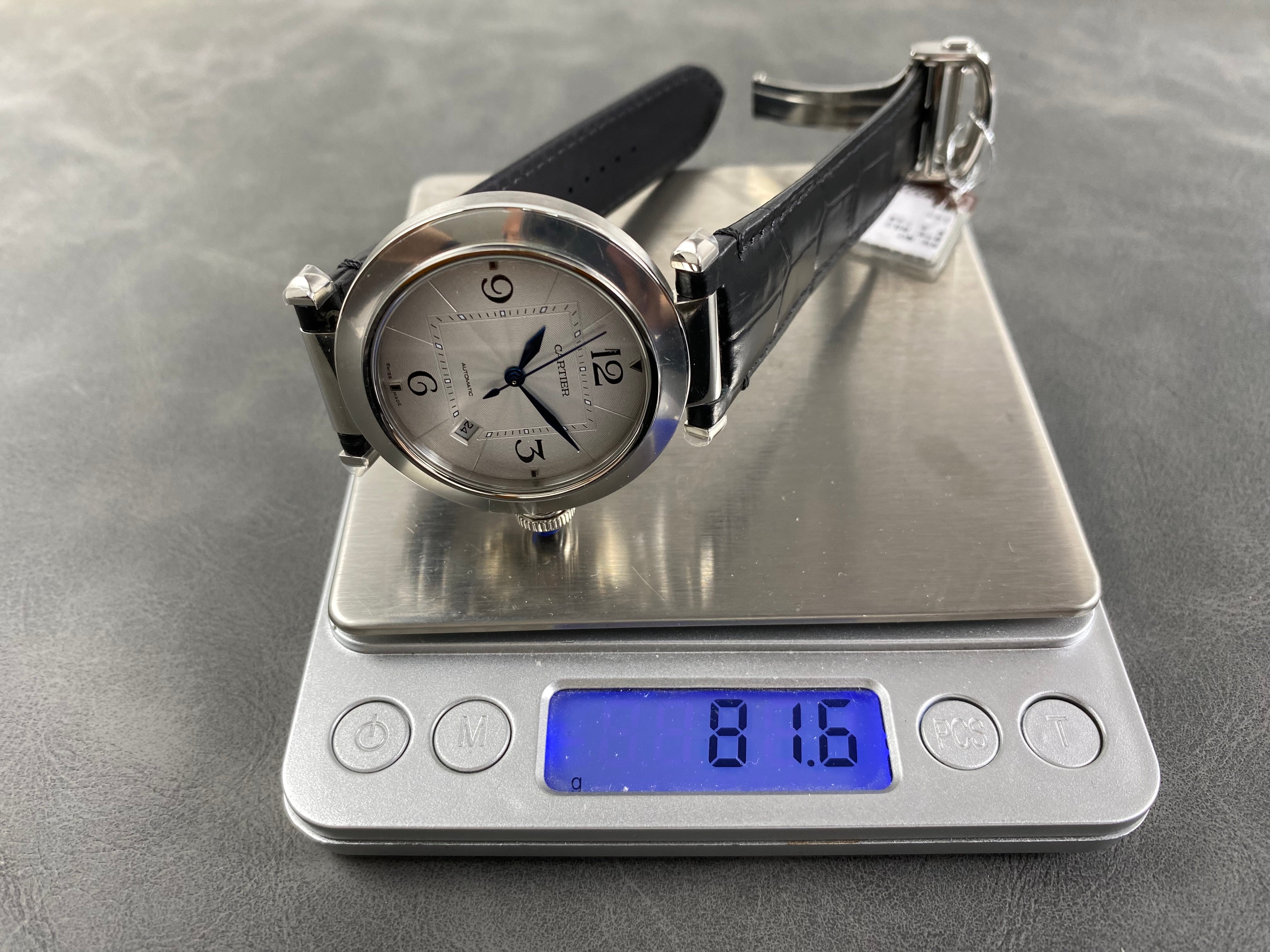 Pasha 41 mm mechanical silver white dial black leather