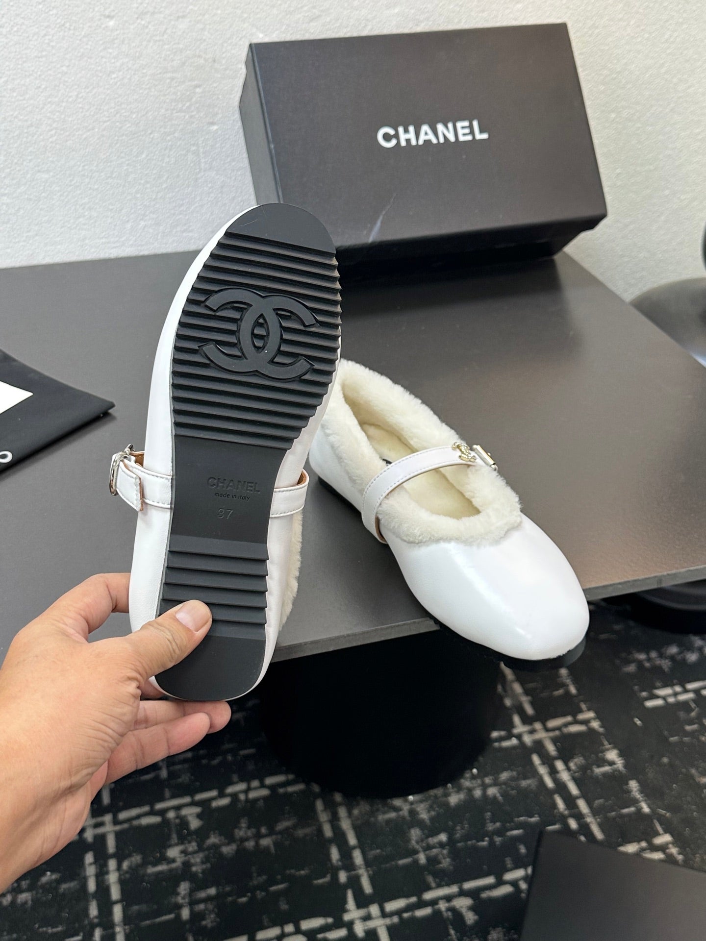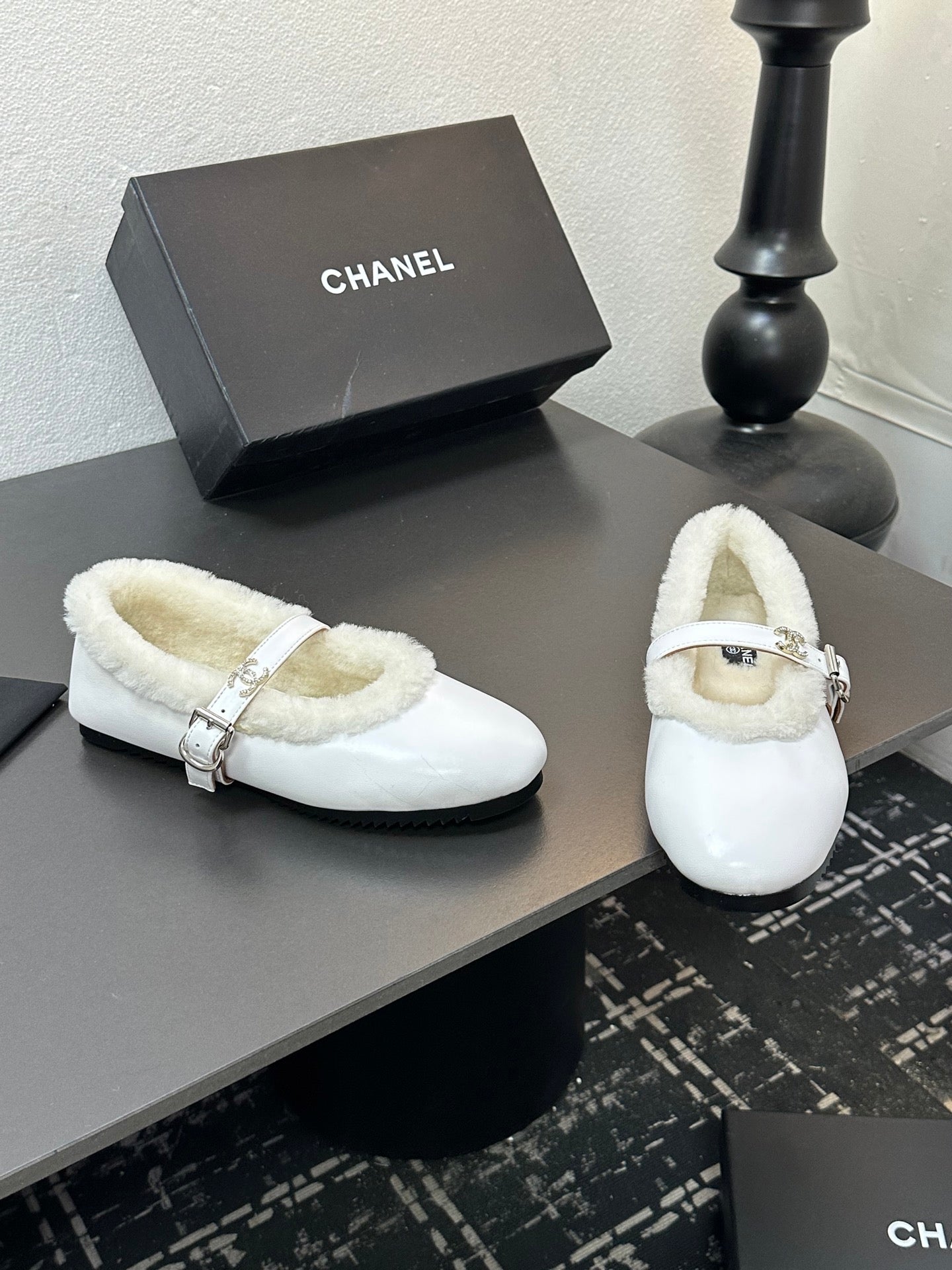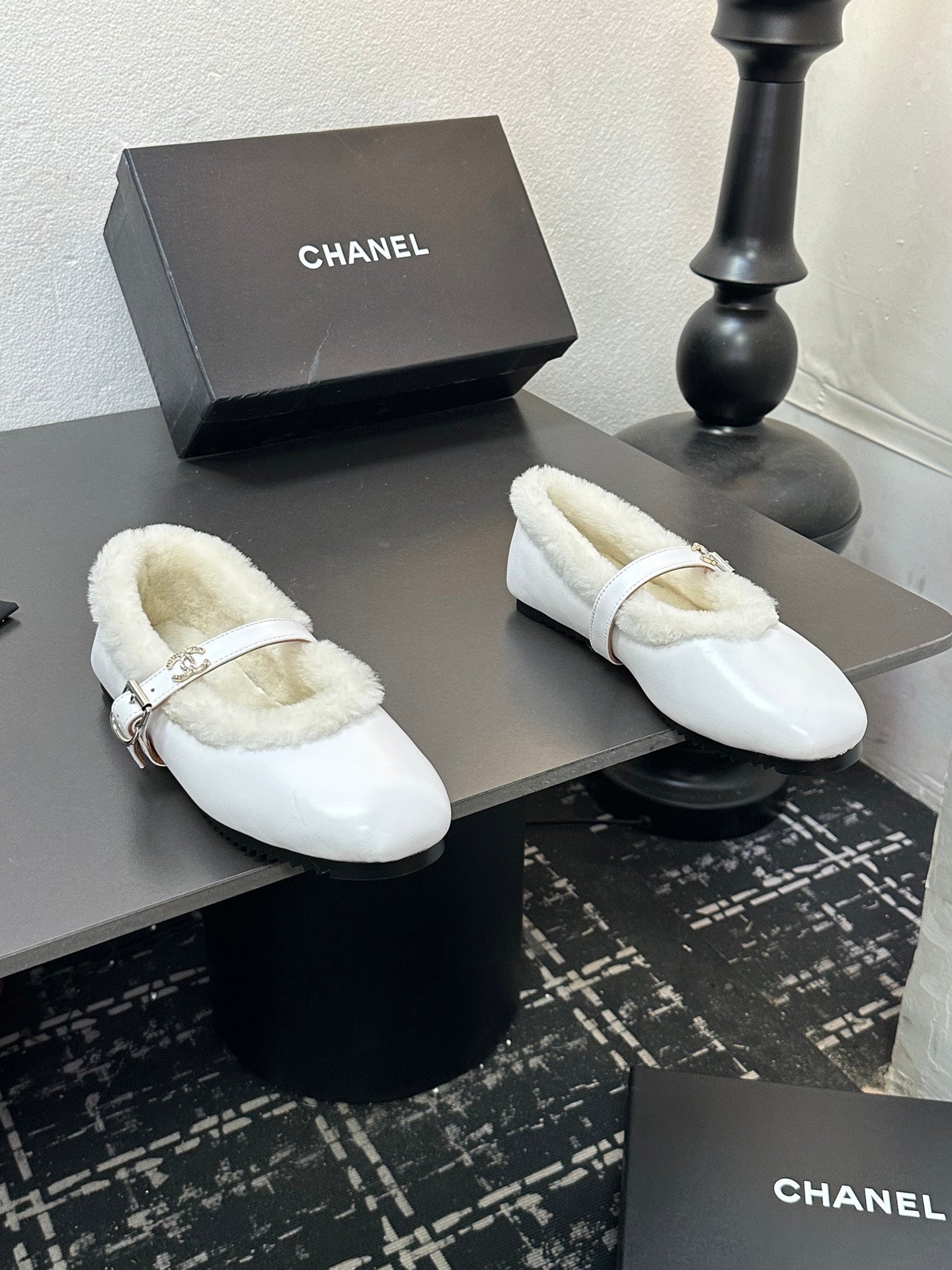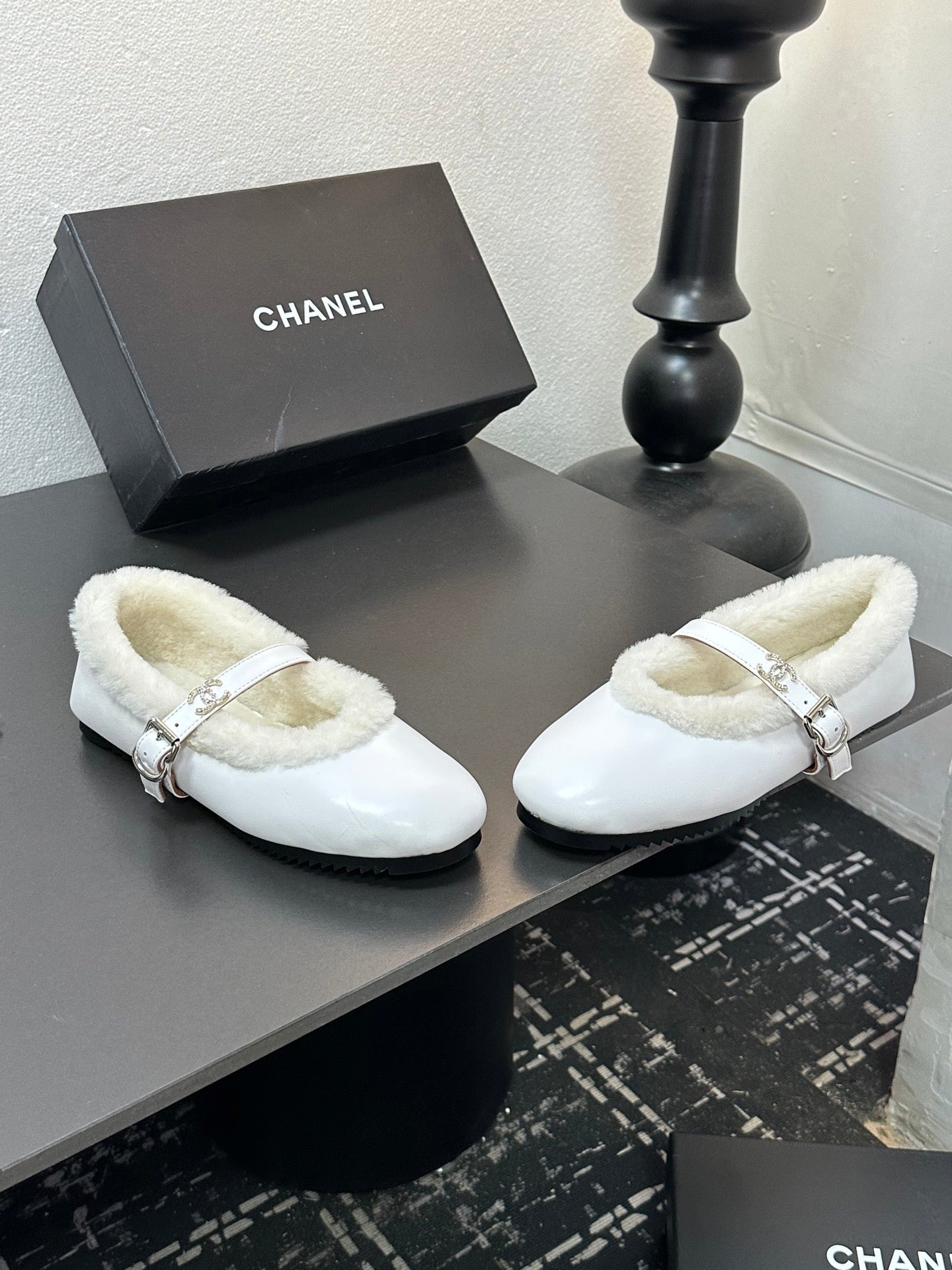 CC 2025 Puffer Ballet Flat With Strap White Sheepskin Fur 529347