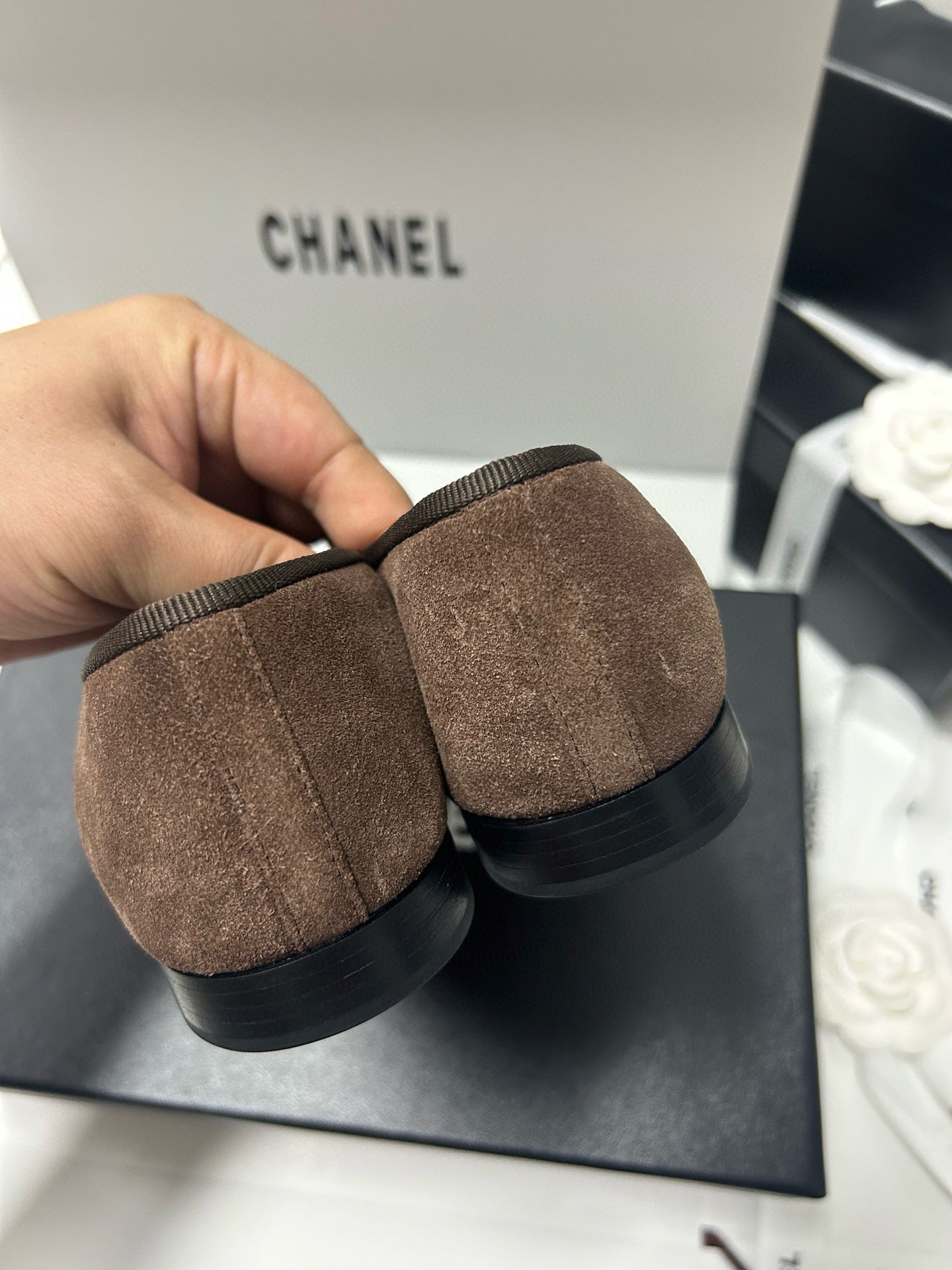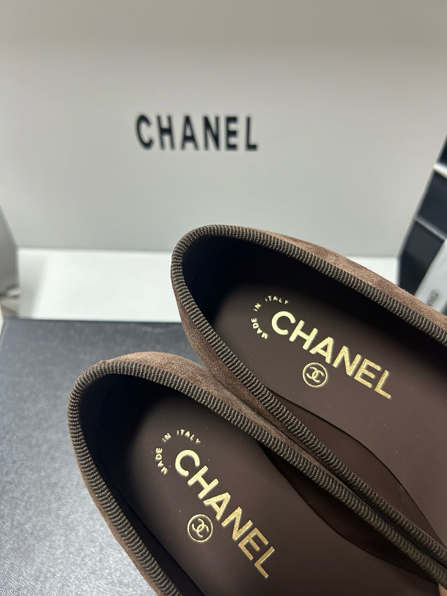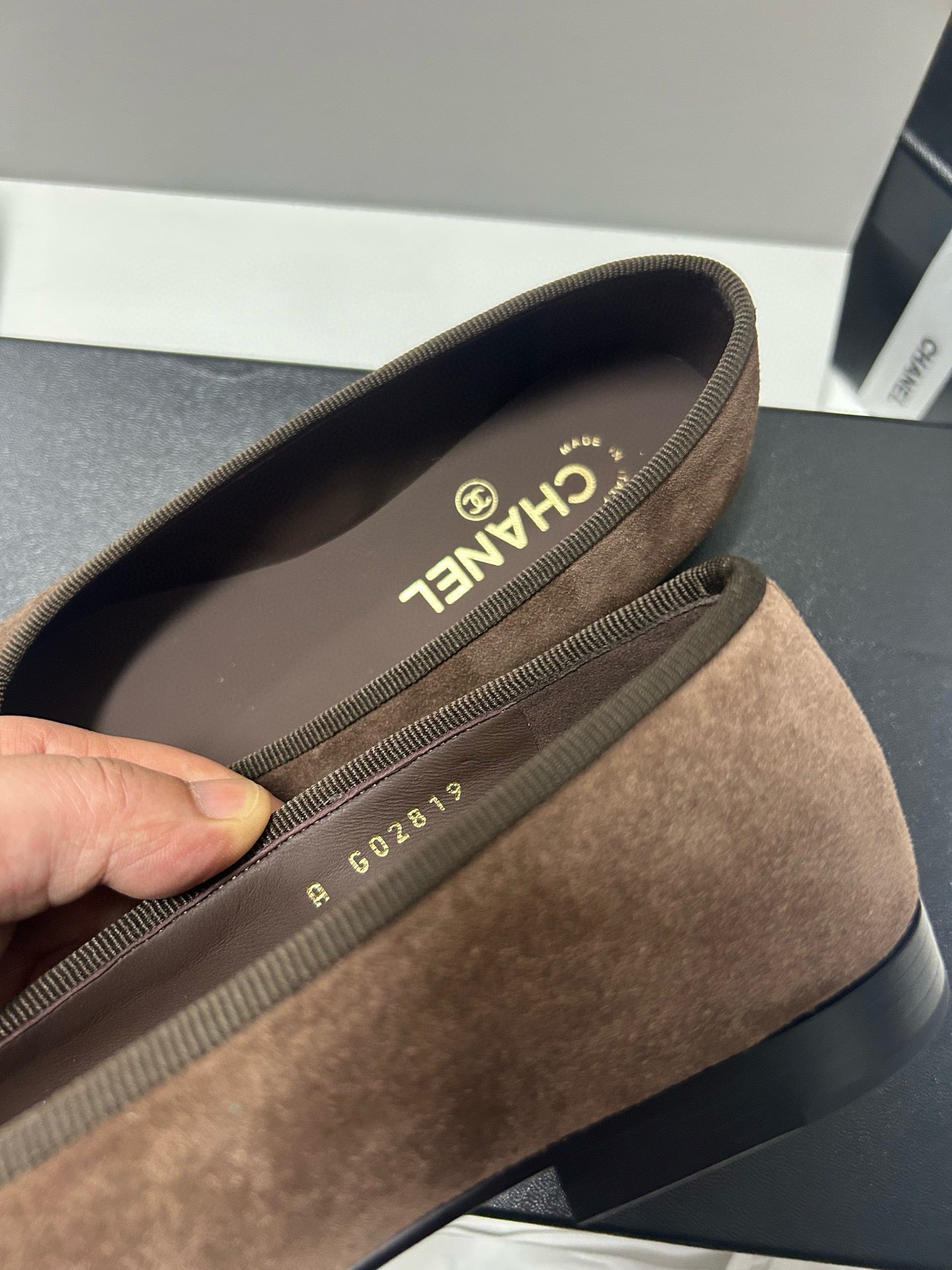 Chanel 25 Ballet Flat Black mix Brown Suede 490045