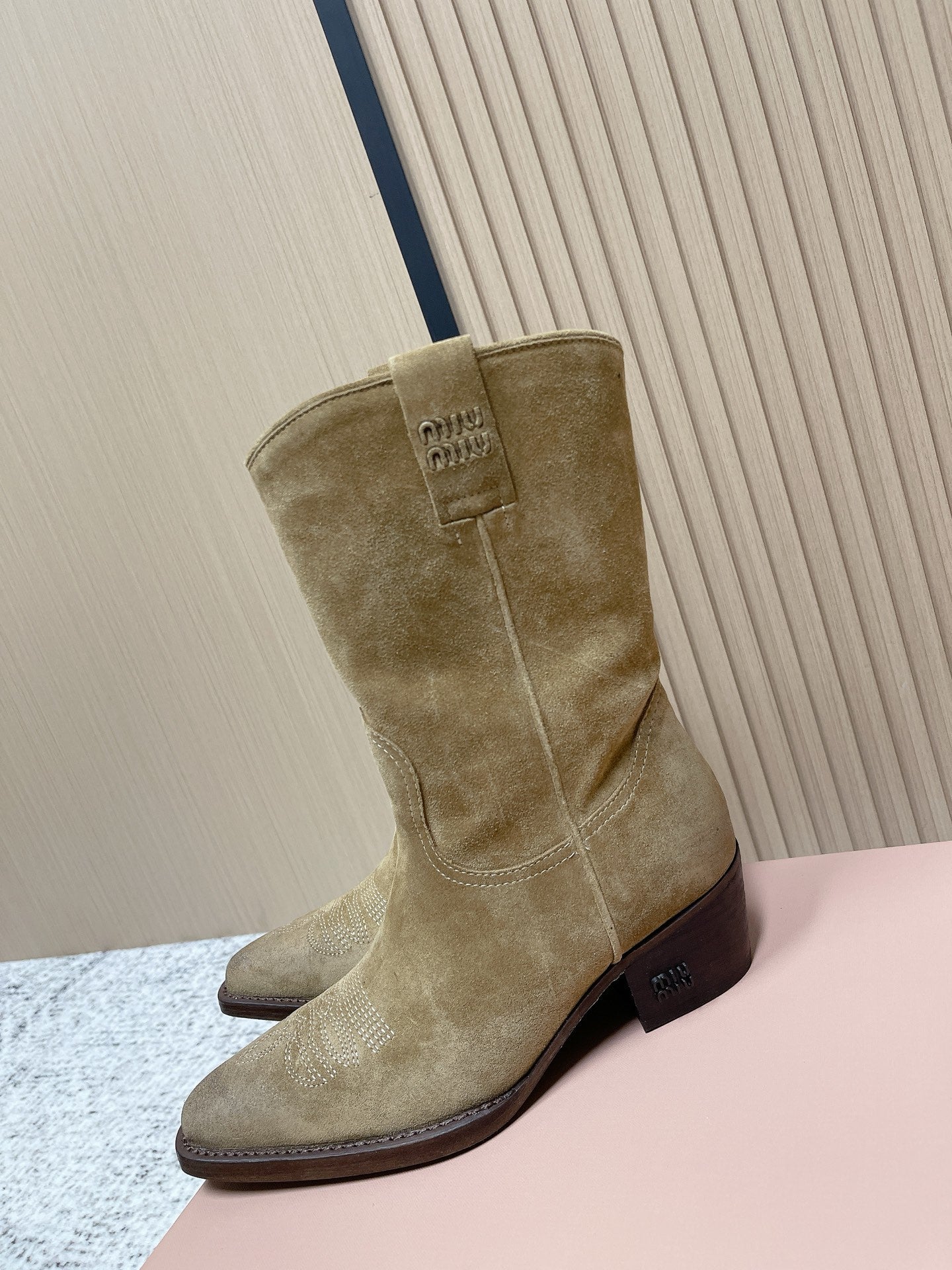 Miumiu Latest FW Western Cowboy Boots Beige Suede 533968