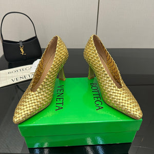 BV Sofia Pump 90mm Gold Intreccio leather 427649