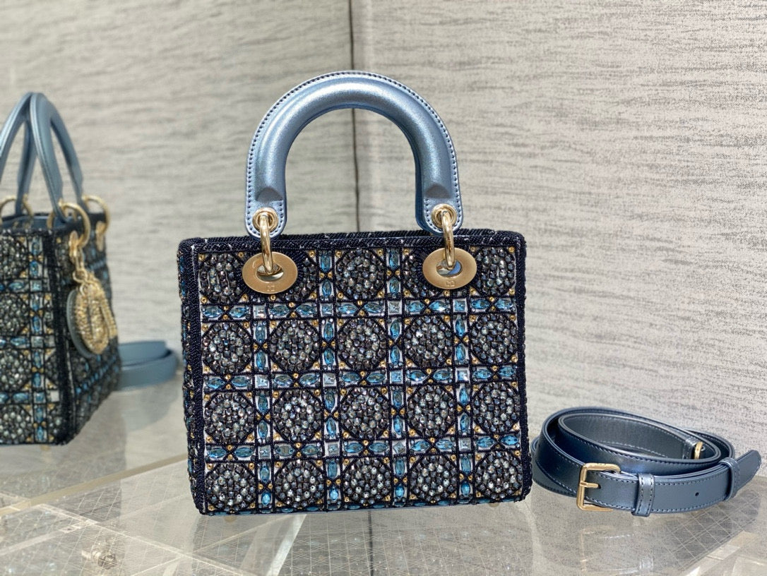 CD Lady 20 Navy blue Canvas attached diamonds
