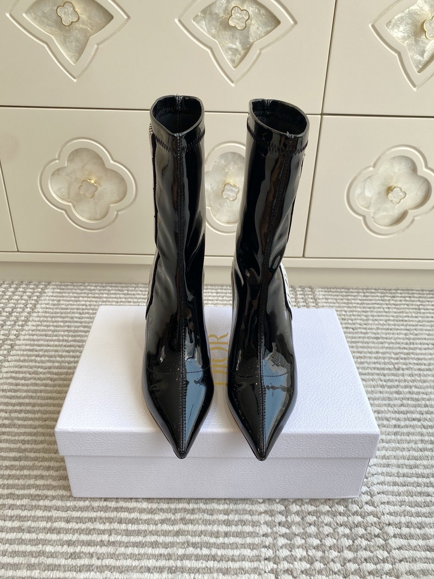 Dior 2025 Tribales Heeled Ankle Boot 80mm Black White Patent Leather 501197