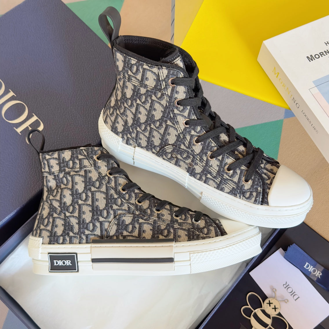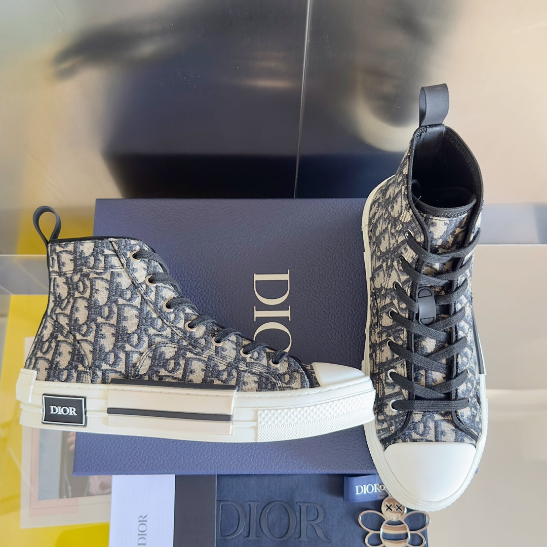 CD B23 High-Top Sneaker 35mm Black White Oblique Jacquard Fabric