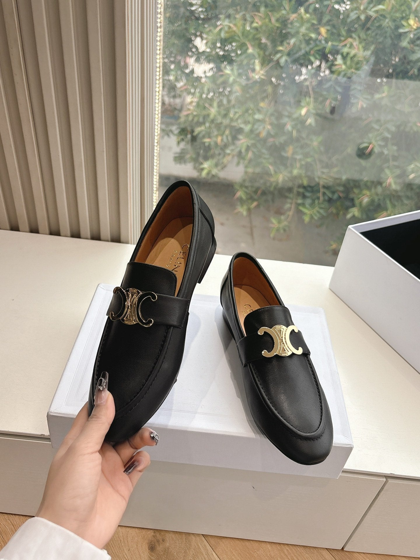 CELINE Buckle Triomphe Loafers Black Leather 285958