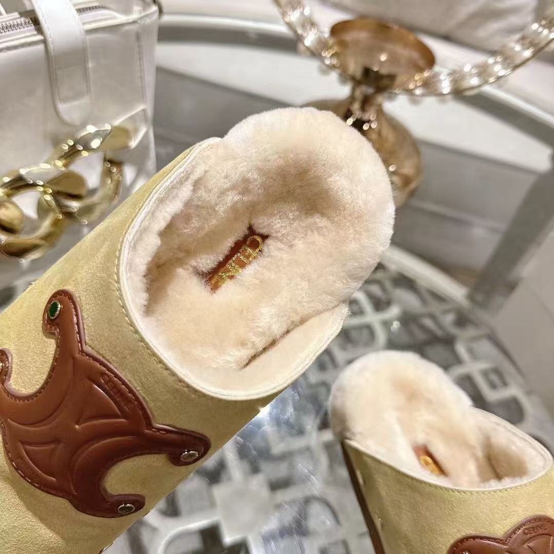 Celine 25 Rivet Birkenstock Slippers Beige Suede Shearling