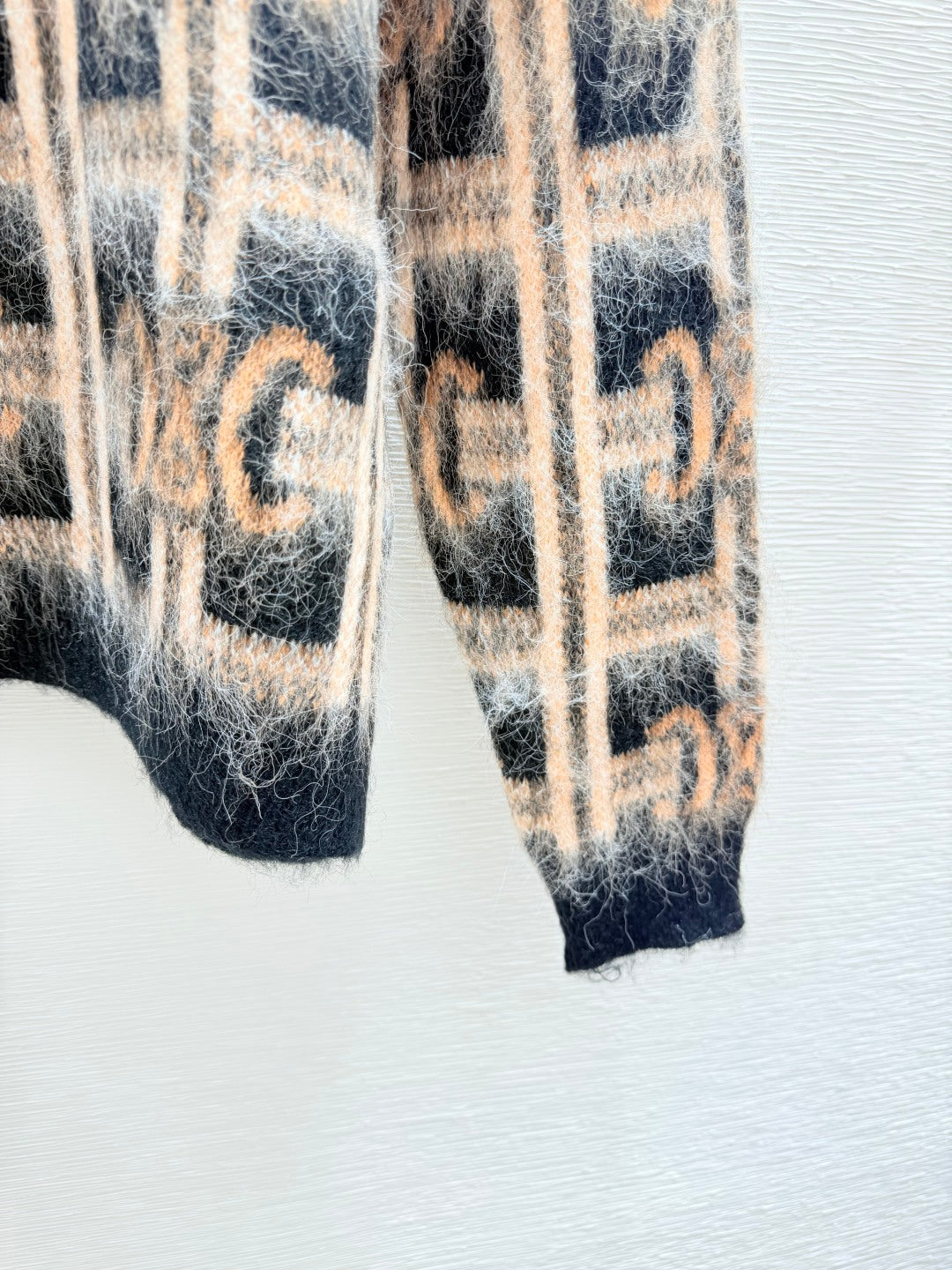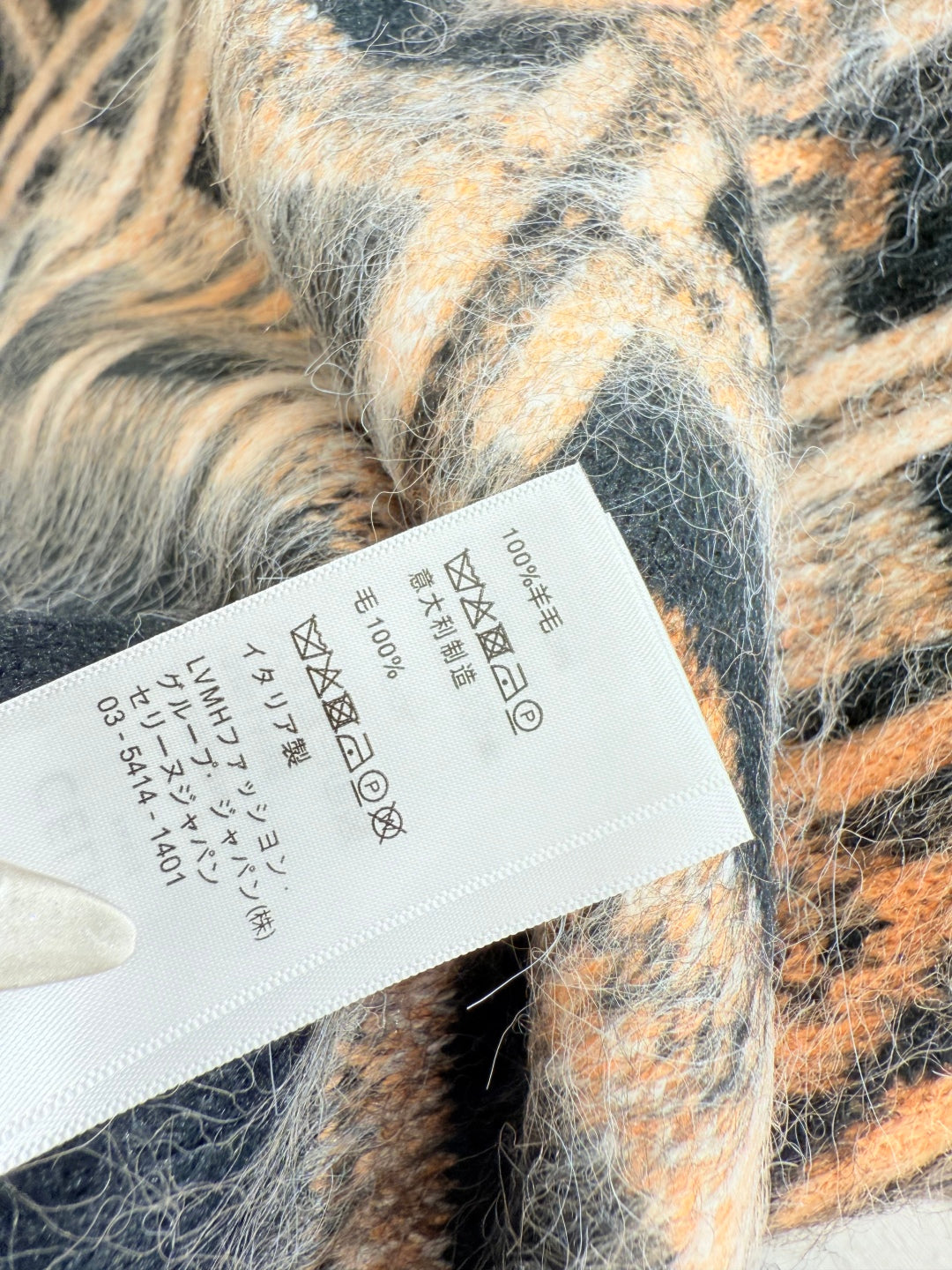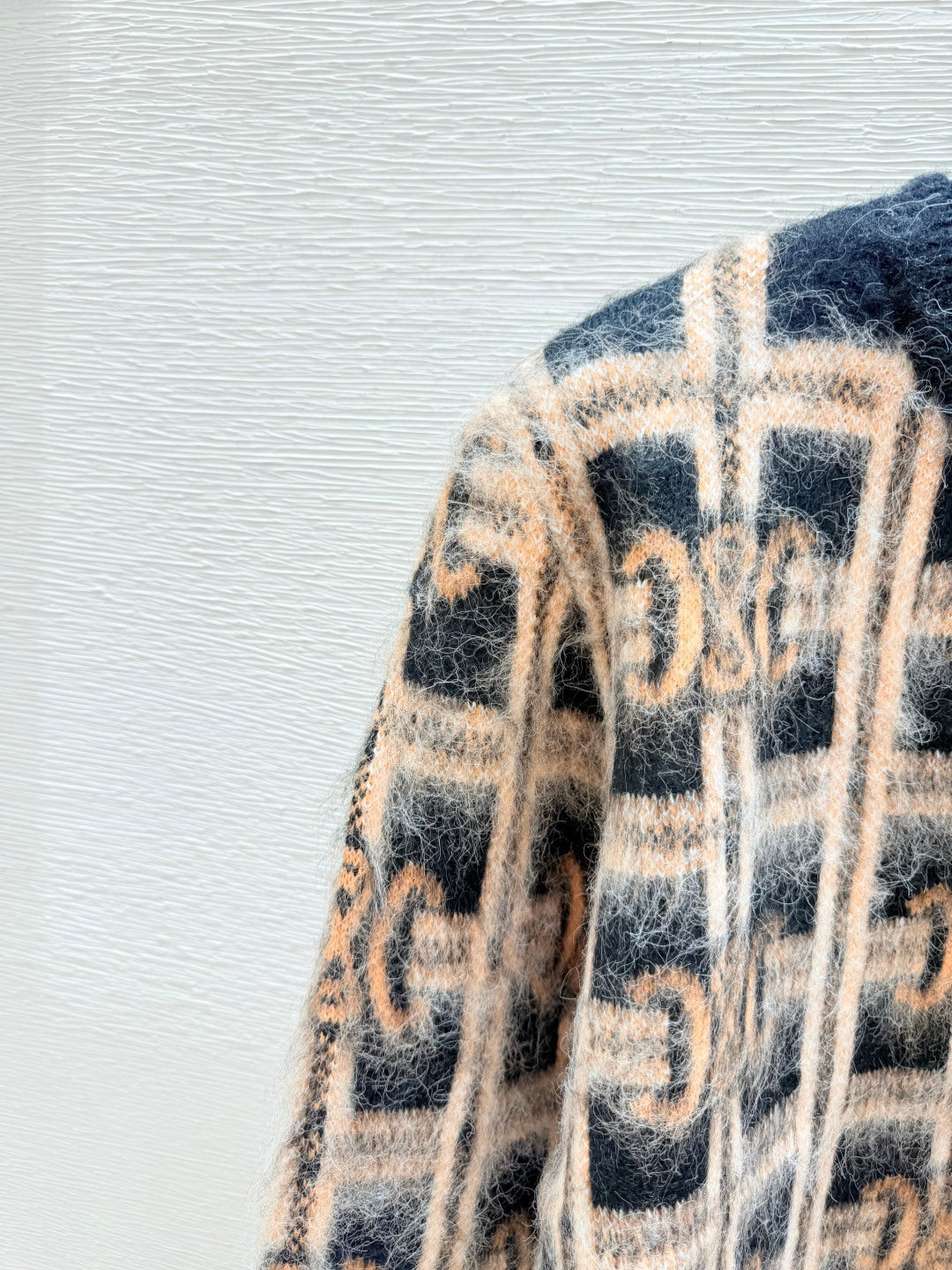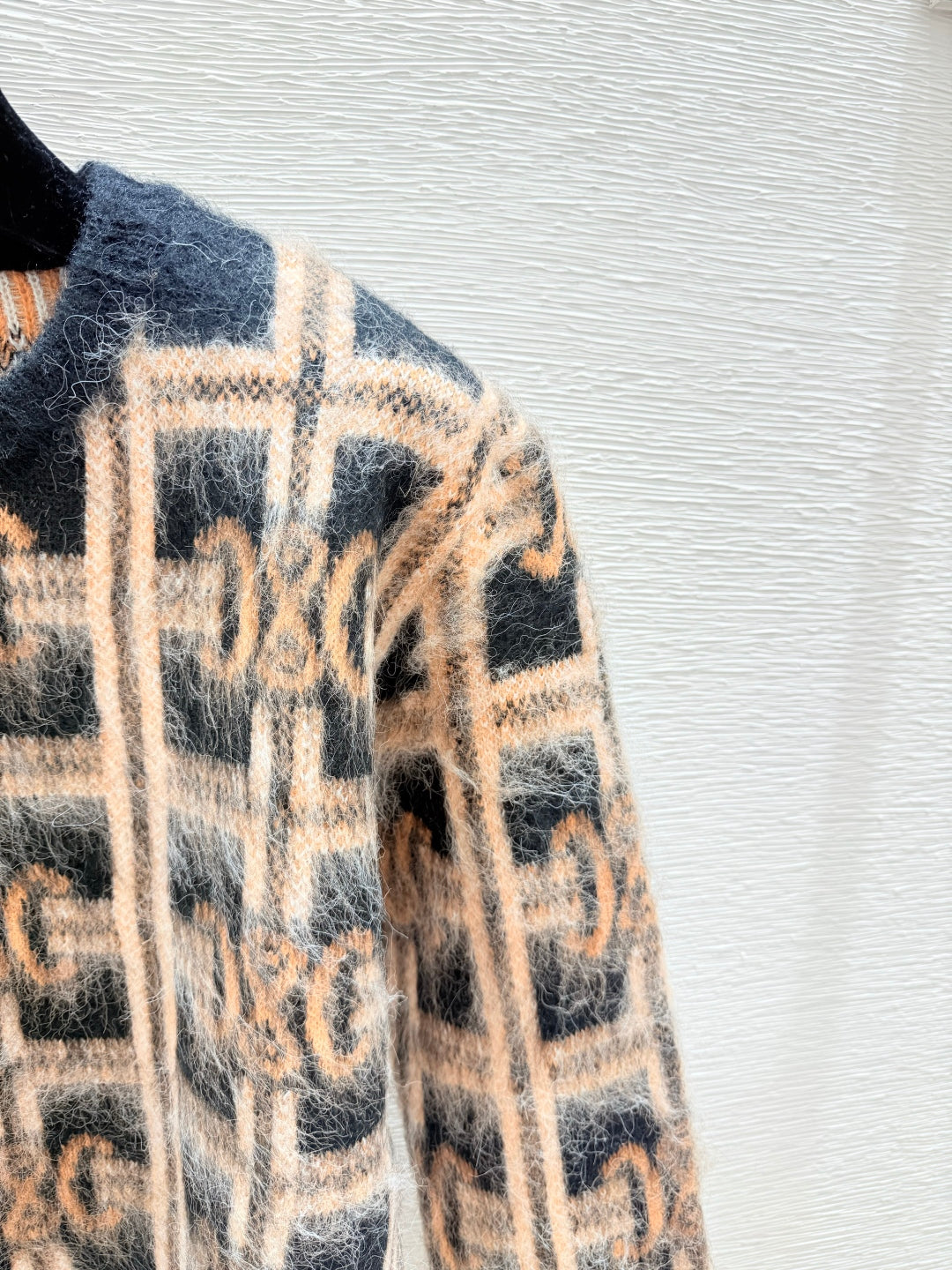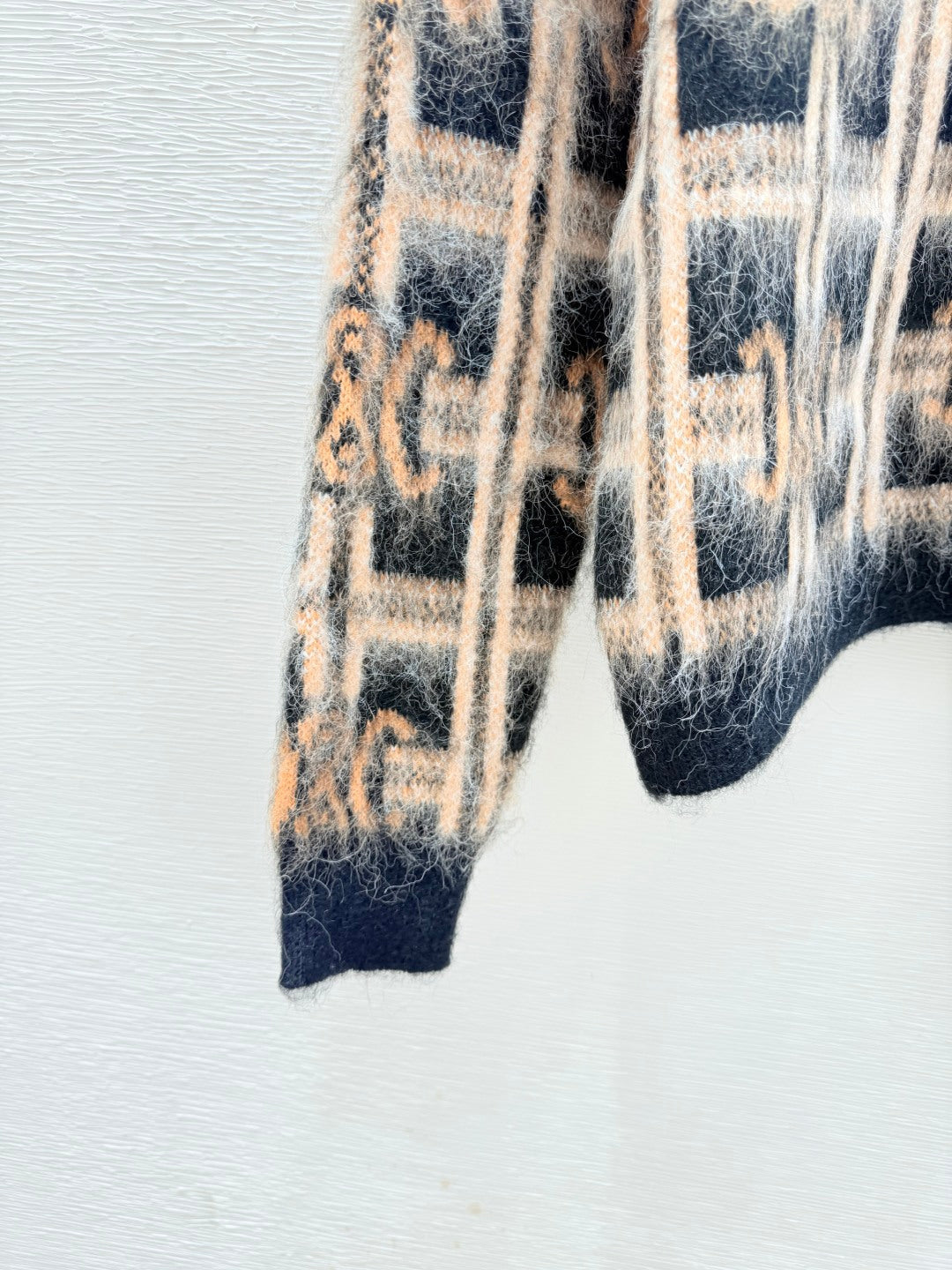 CE Contrast Color Monochrome Plaid Striped Crewneck Long Sleeve Knit Top Khaki Wool
