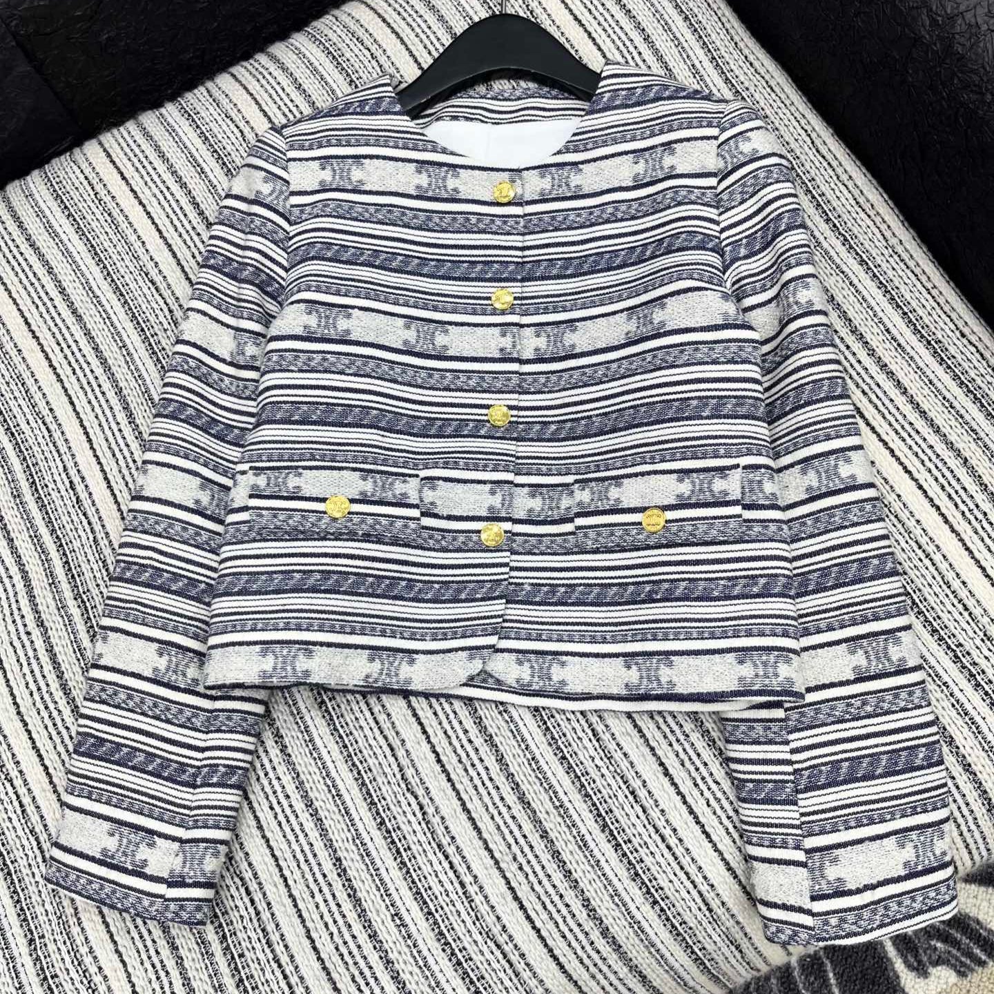 Celine 25 Jacket Blazer White With Black Stripes 301223