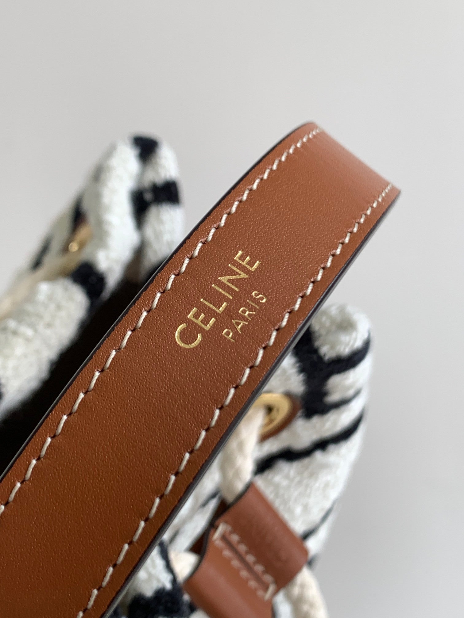 Material: fabric lining, hand carry, drawstring closure, leather handle length 13 cm