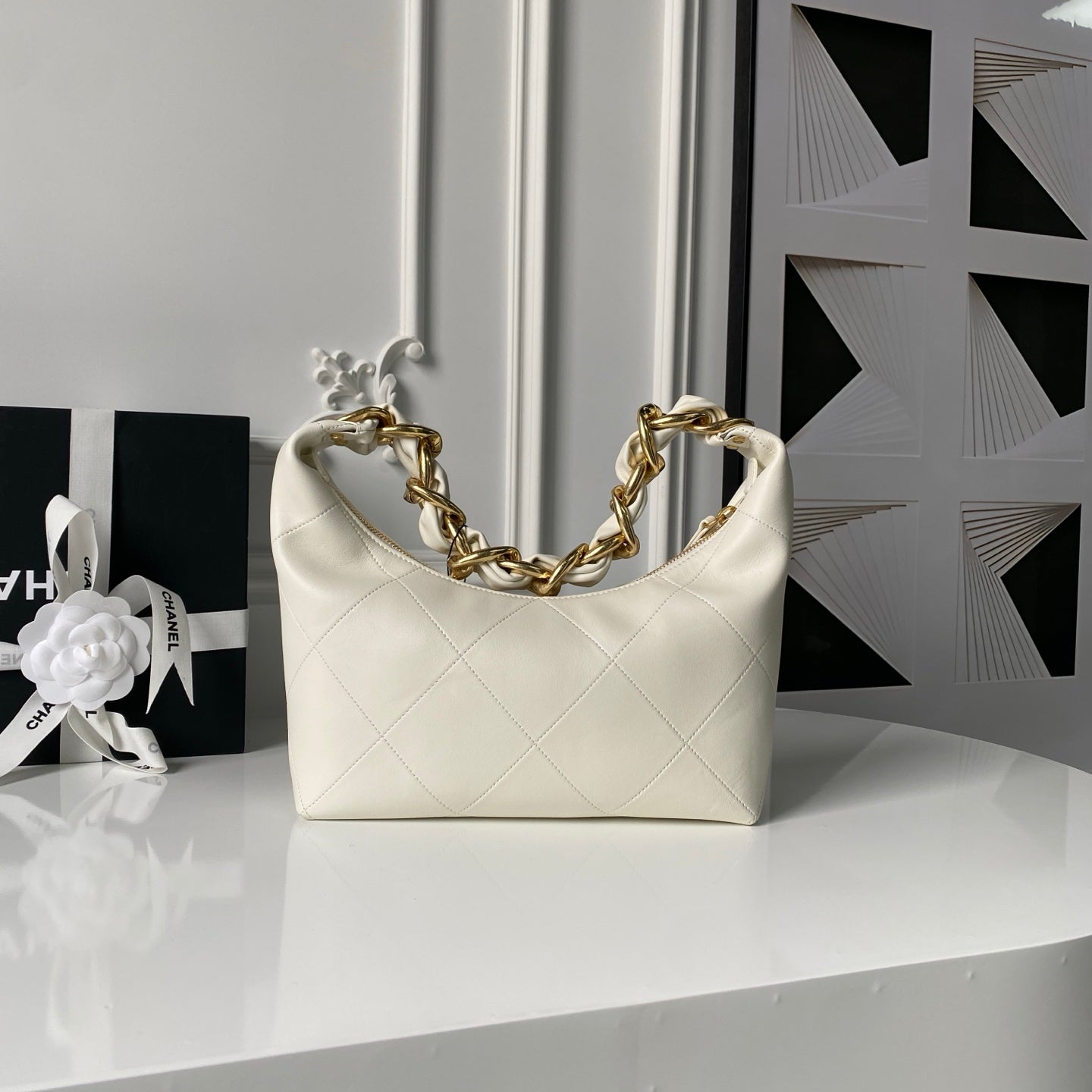 CC 2025 Hobo Bag White Calfskin Gold Hardware 298486