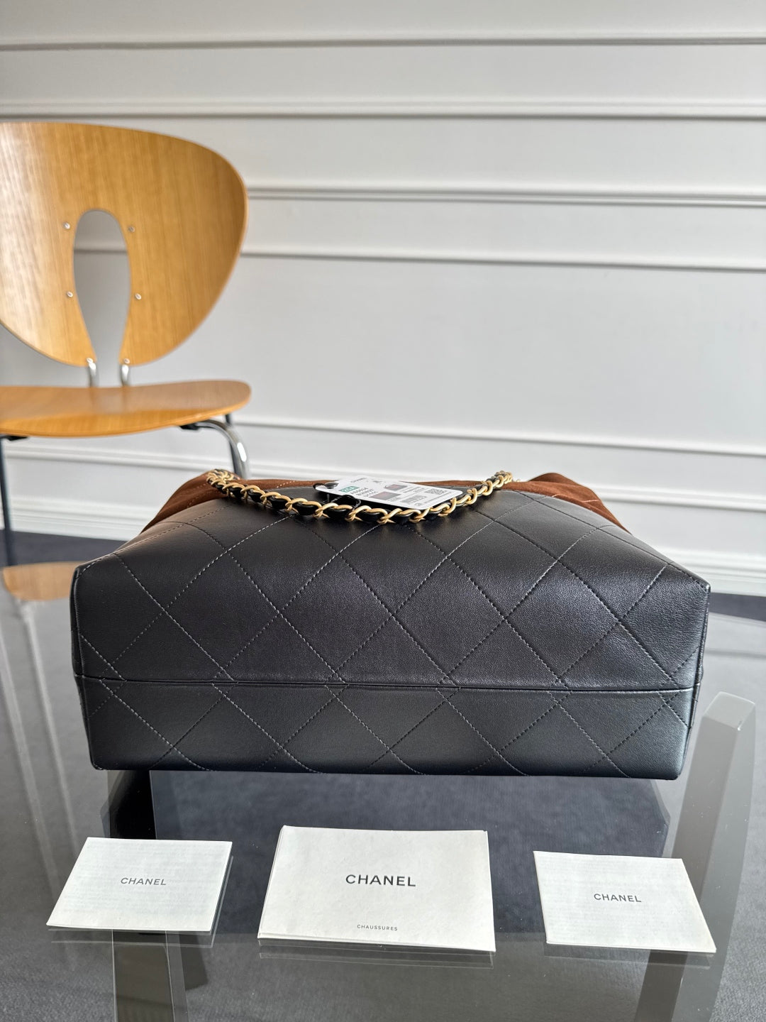 CC 25A Small Tote 36cm Chocolate Brown Suede Black Calfskin