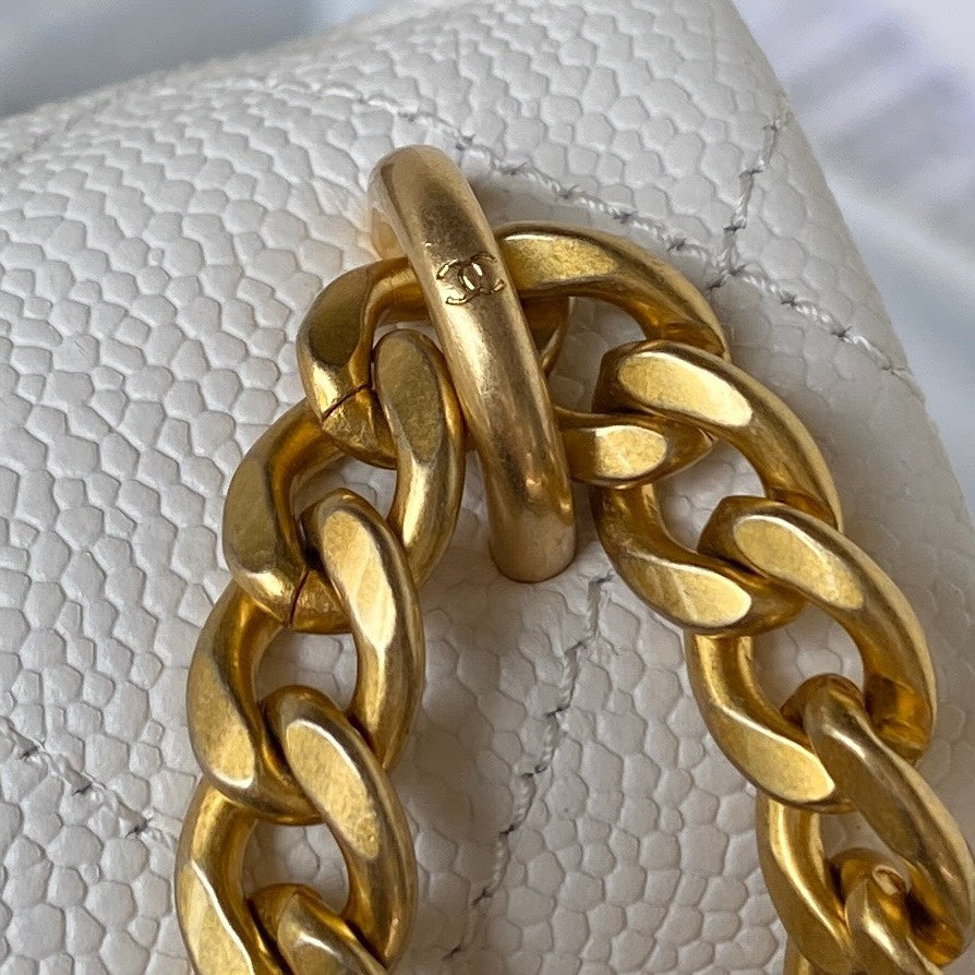 Flap Bag 19cm White Caviar Gold Hardware