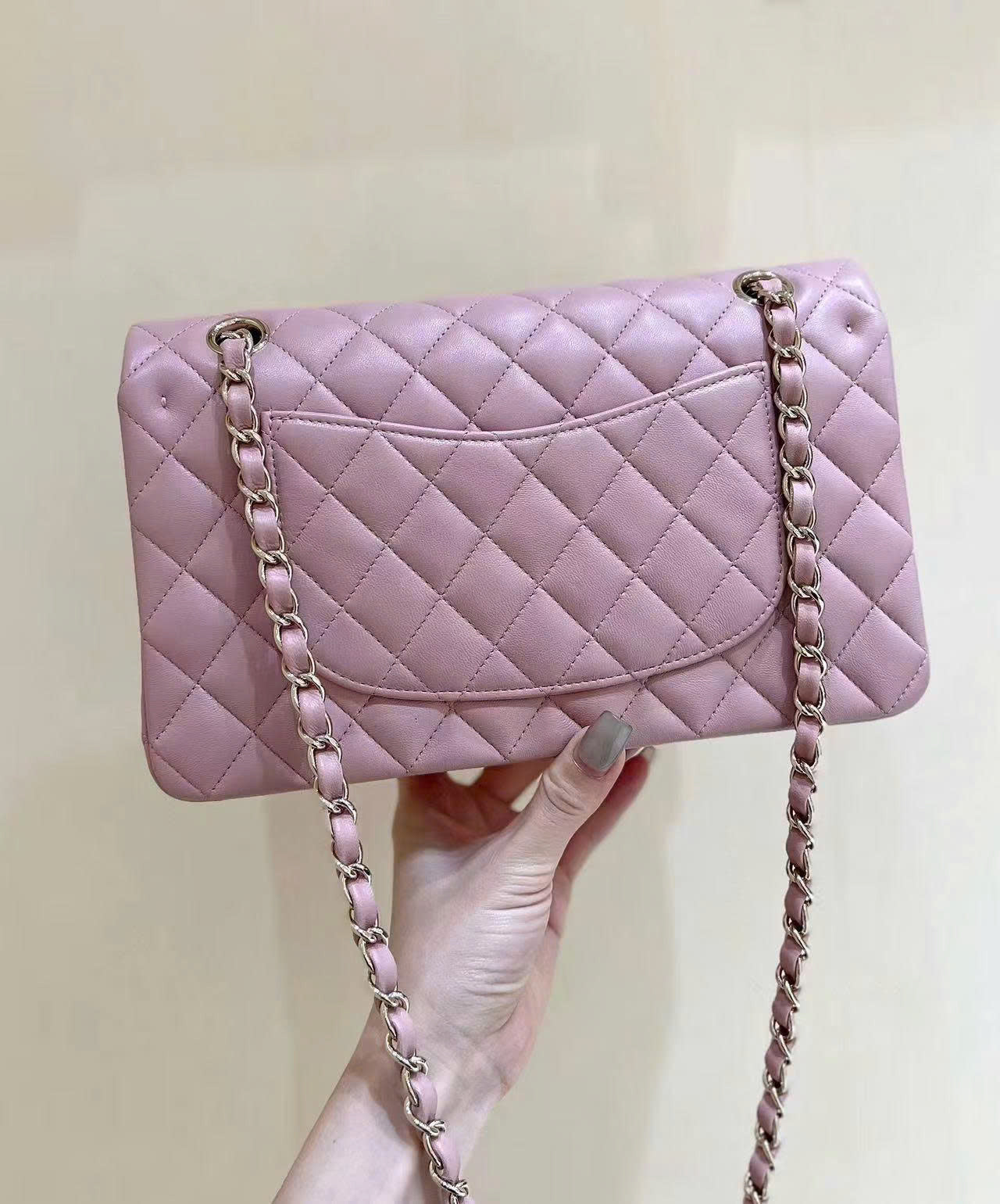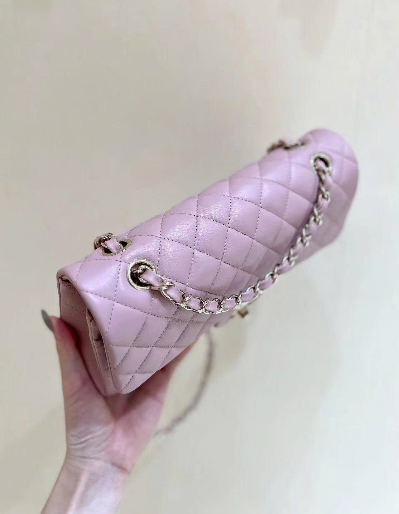 FLAP BAG 23CM PINK LAMBSKIN LIGHT GOLD HARDWARE
