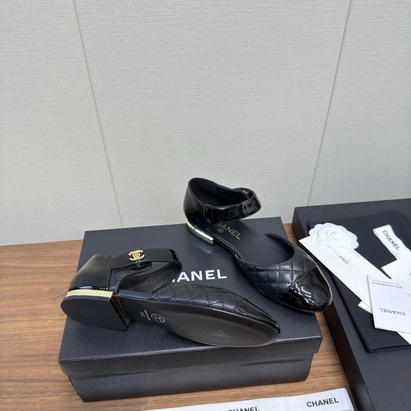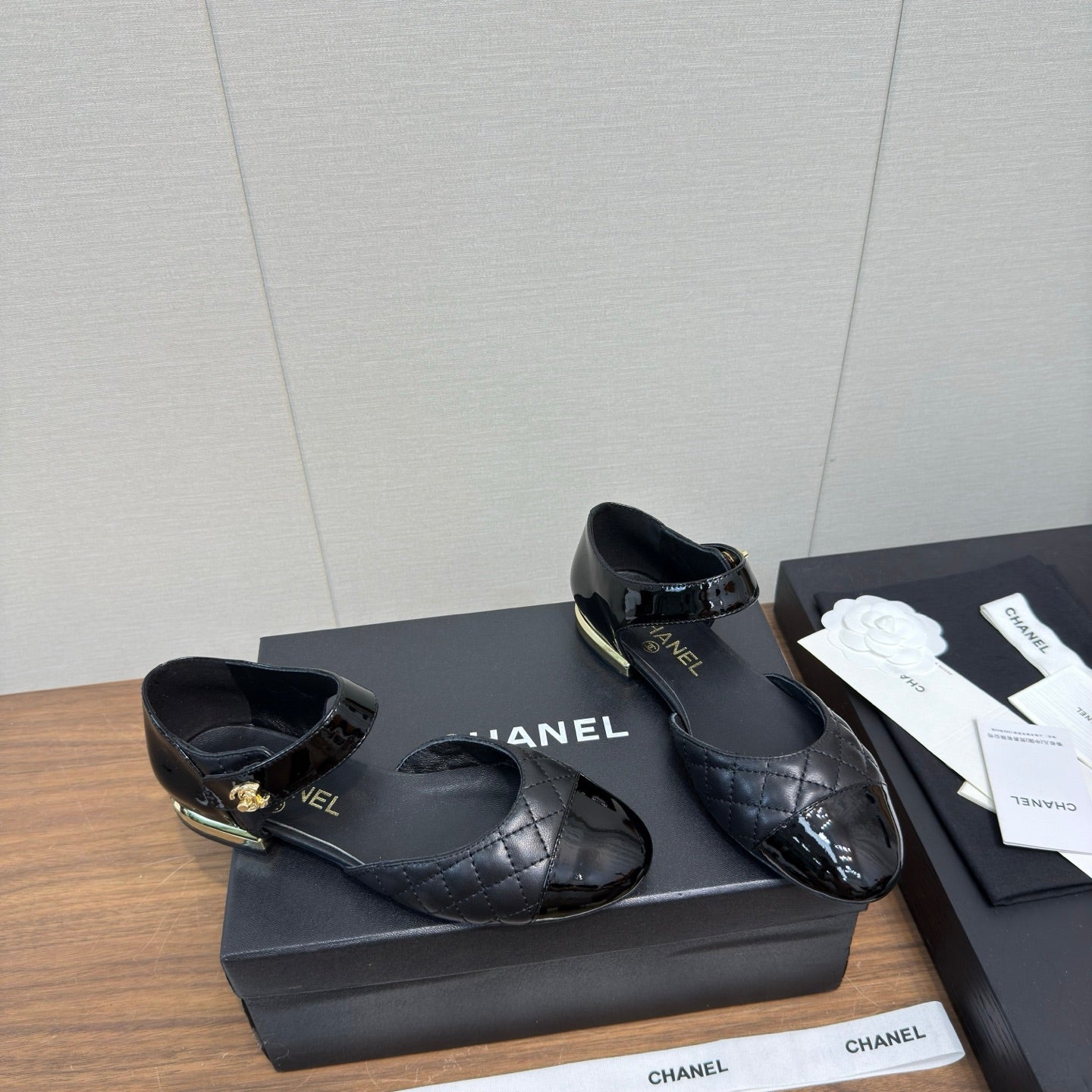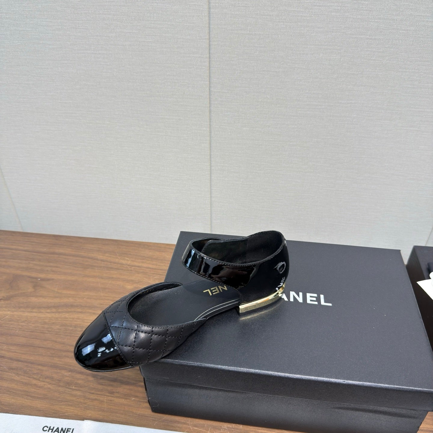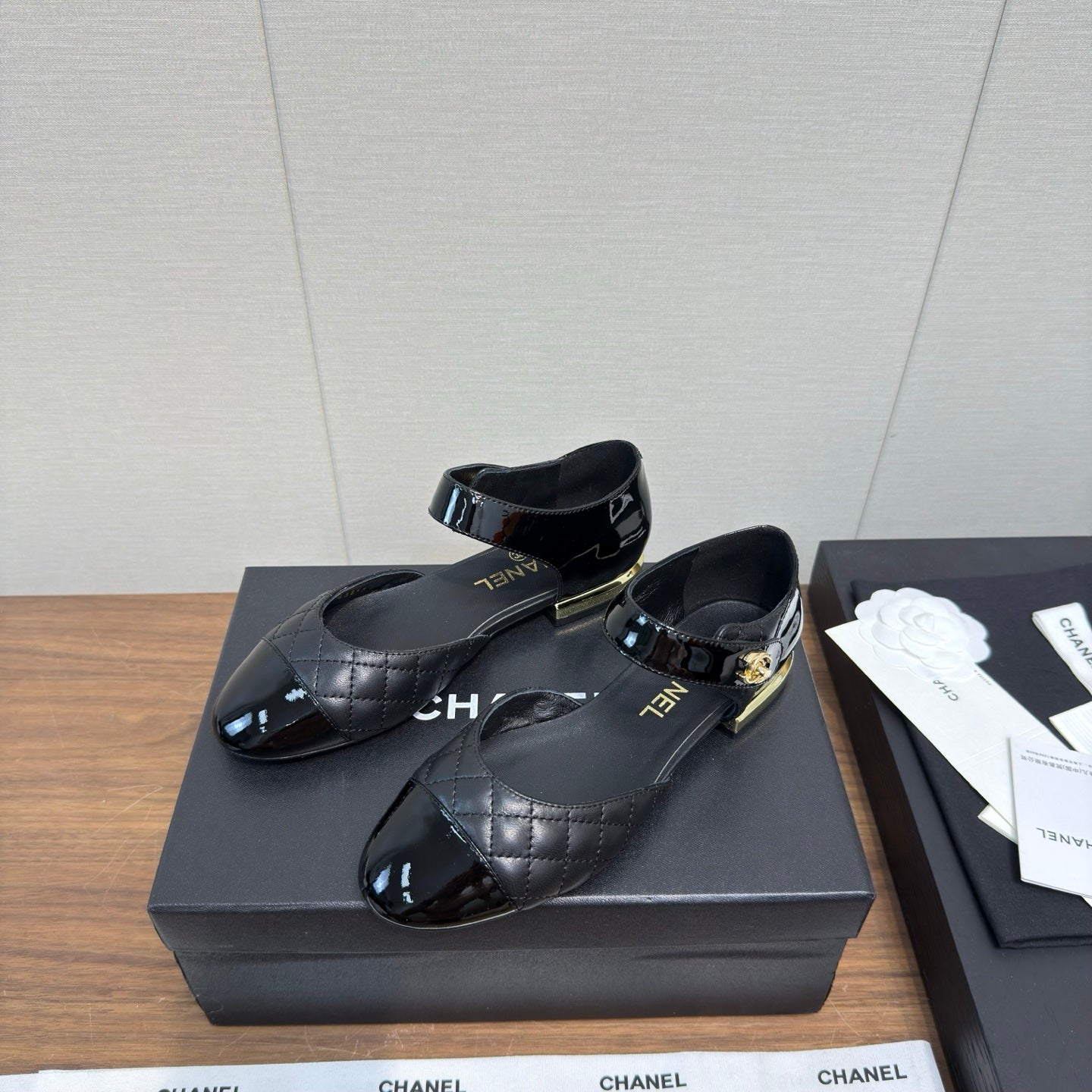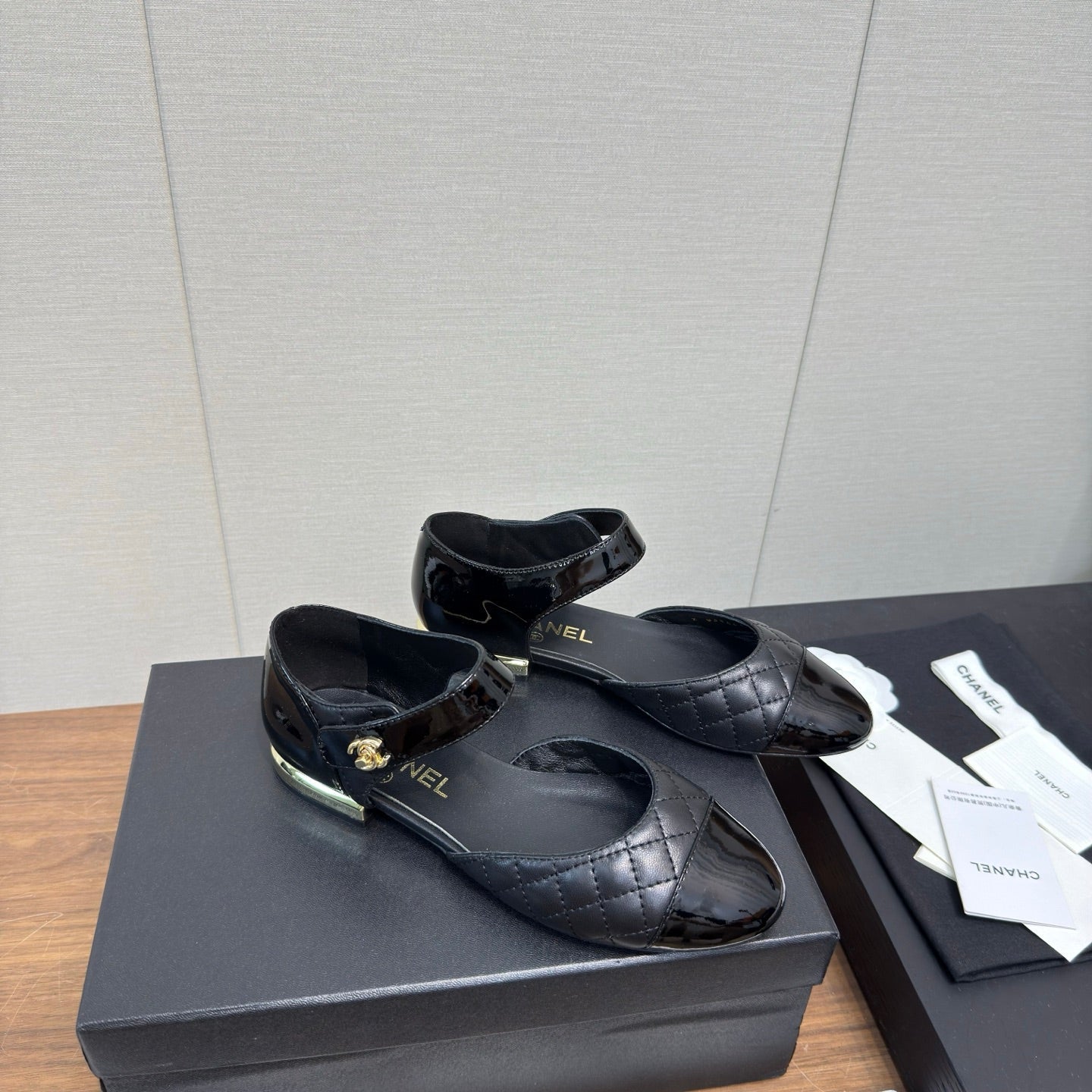 CC Quilted Cap Toe Ballerina Flats Black Lamskin & Calfskin 429729